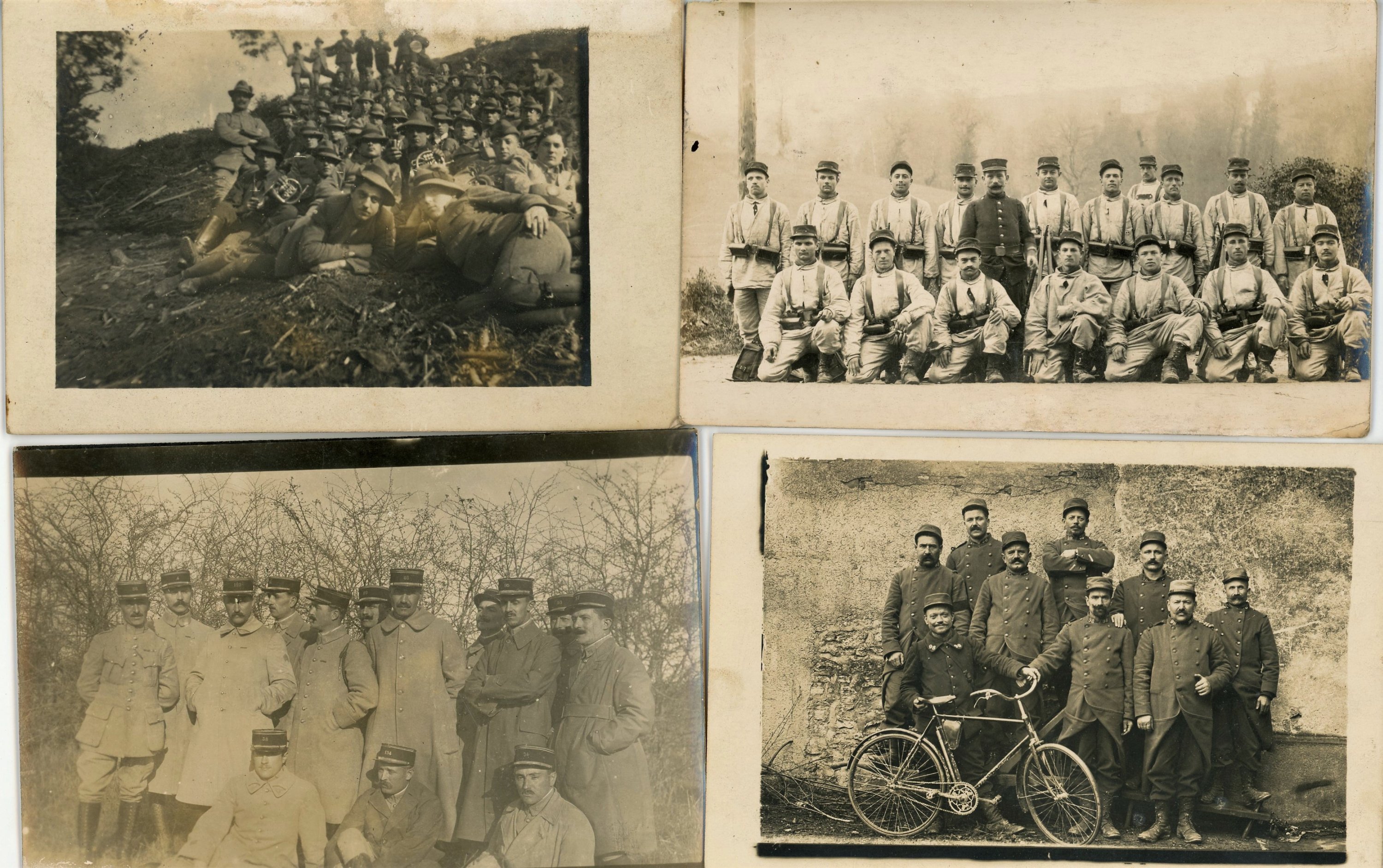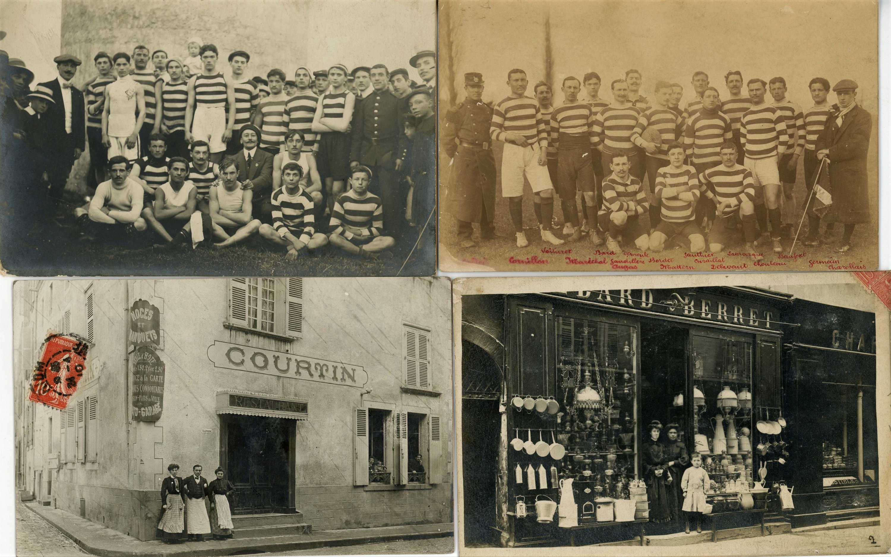 Lot de 35 cartes photos anciennes dont militaria, équipes de foot de Mâcon, restaurant Courtin à Riom, Boulangerie de la Mairie à Villemomble, etc.