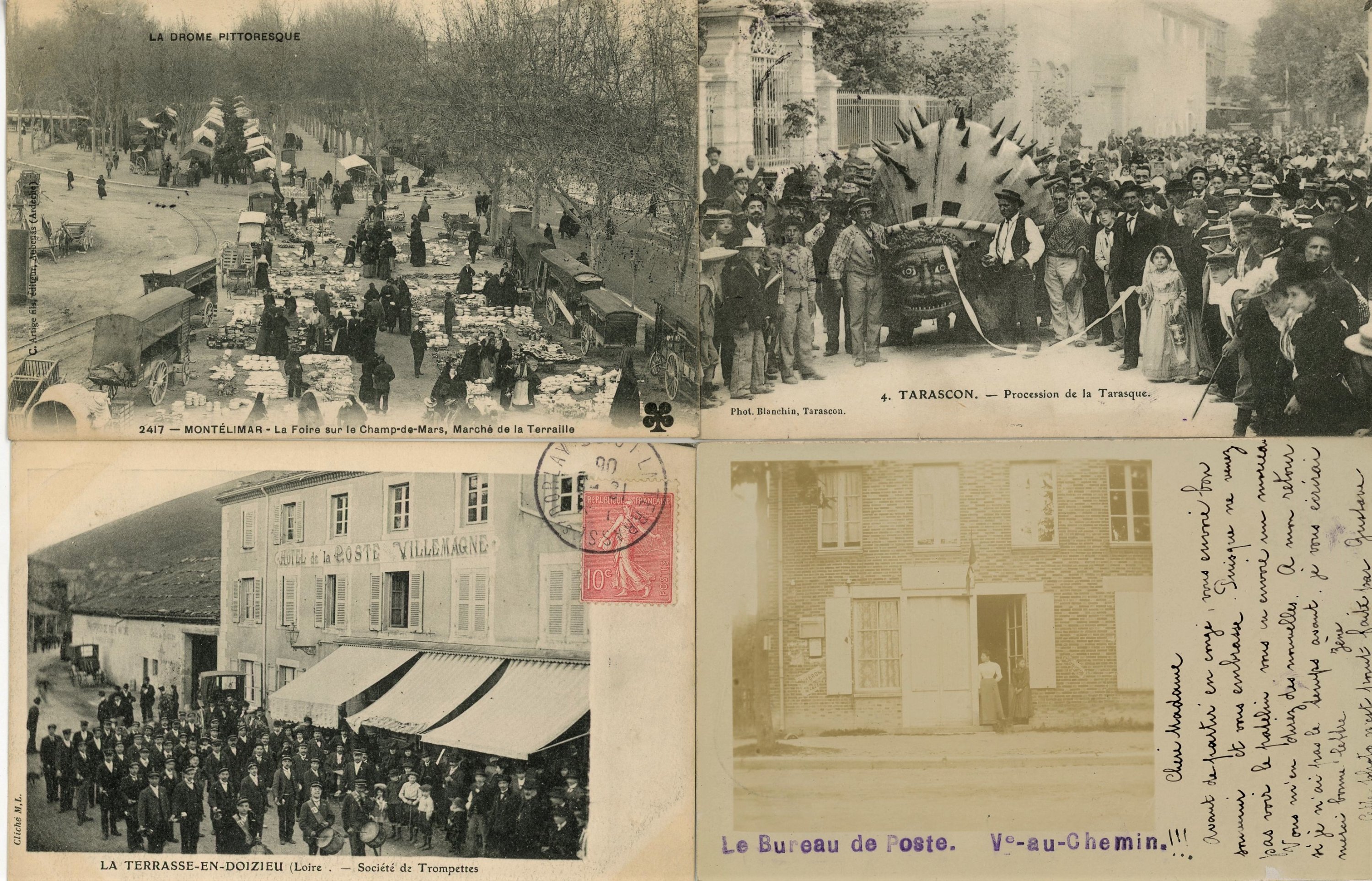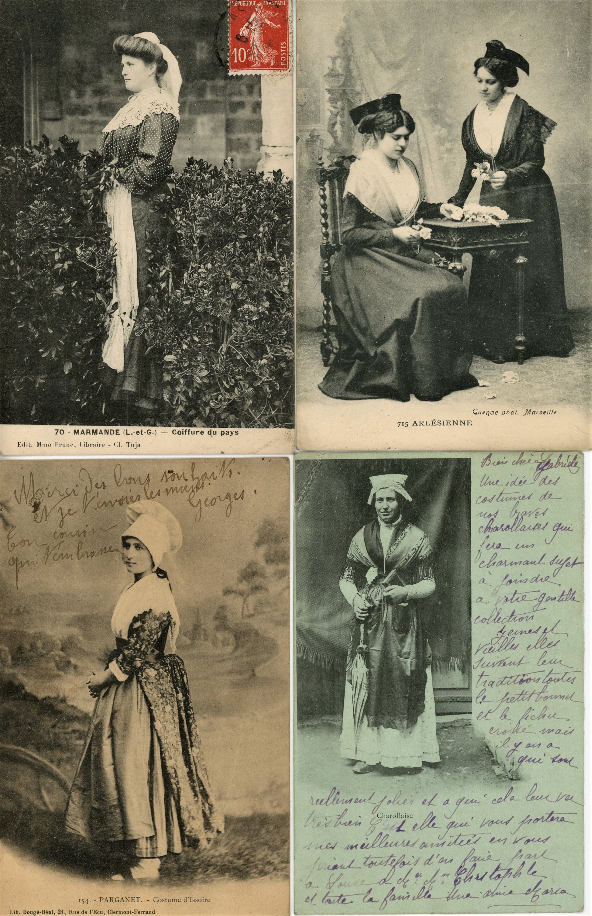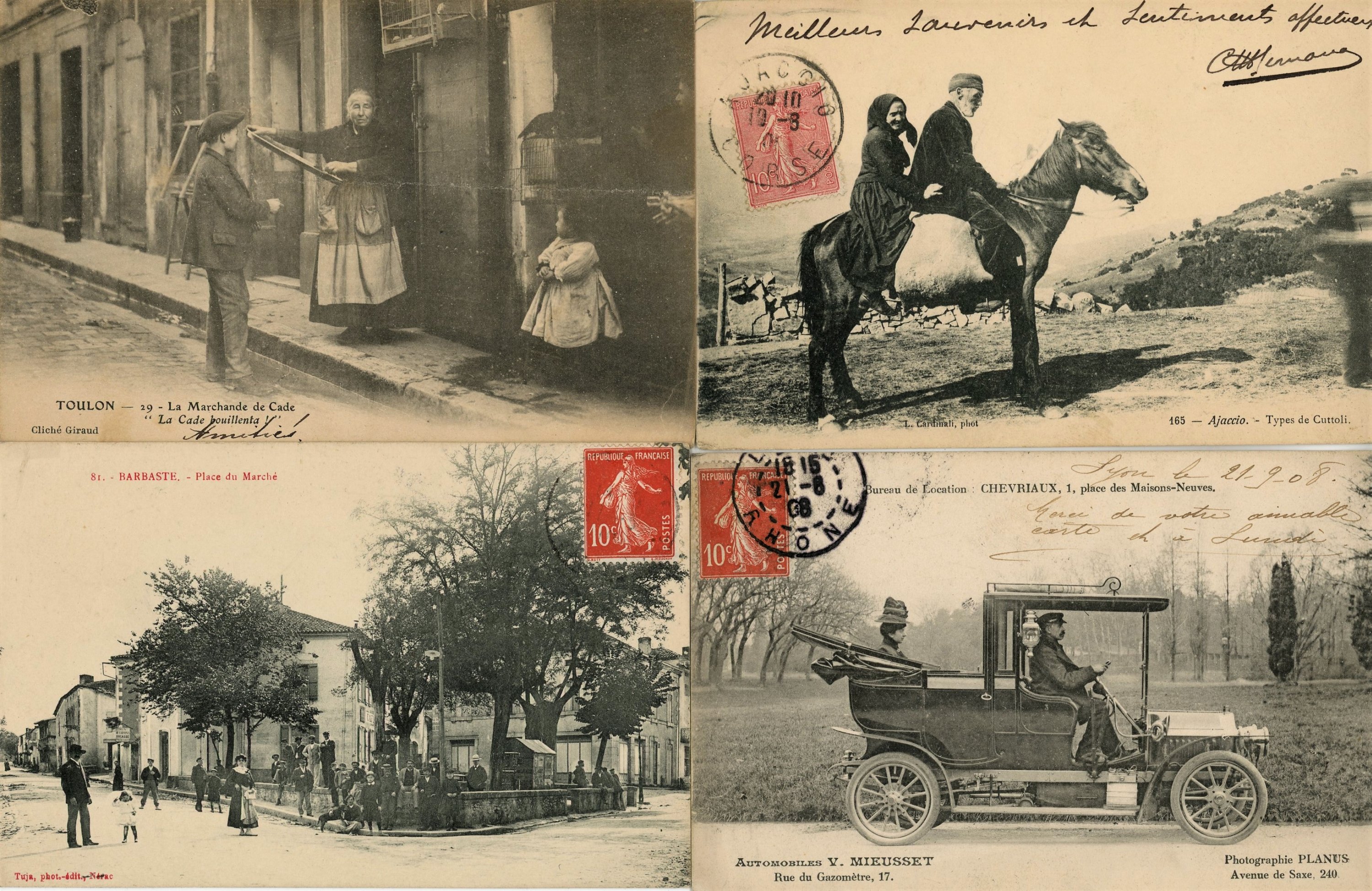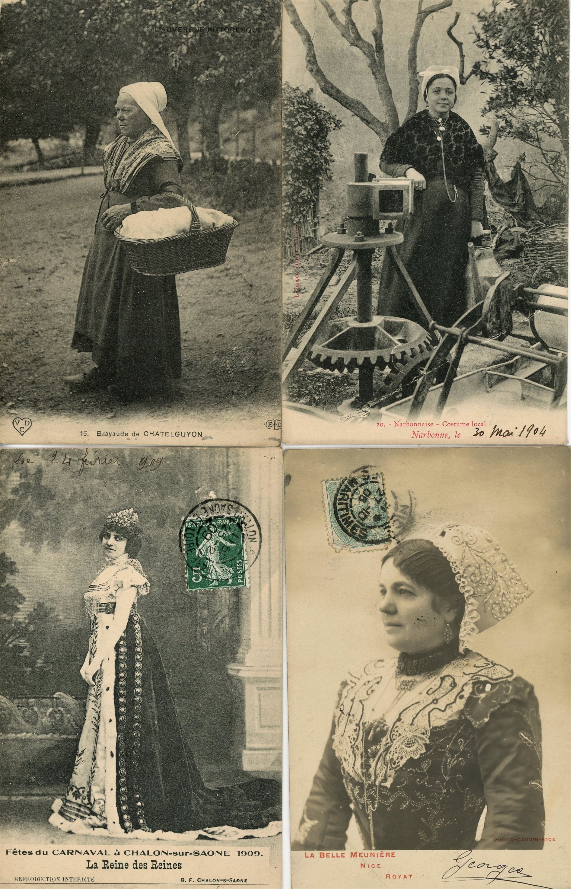 [France] env. 2210 cartes postales anciennes et cpsm, tous départements : villes, villages, animations, sites et châteaux, scènes et types folkloriques. Dont Auvergne, Rhône-Alpes, Limousin, Bouches du Rhône, etc.