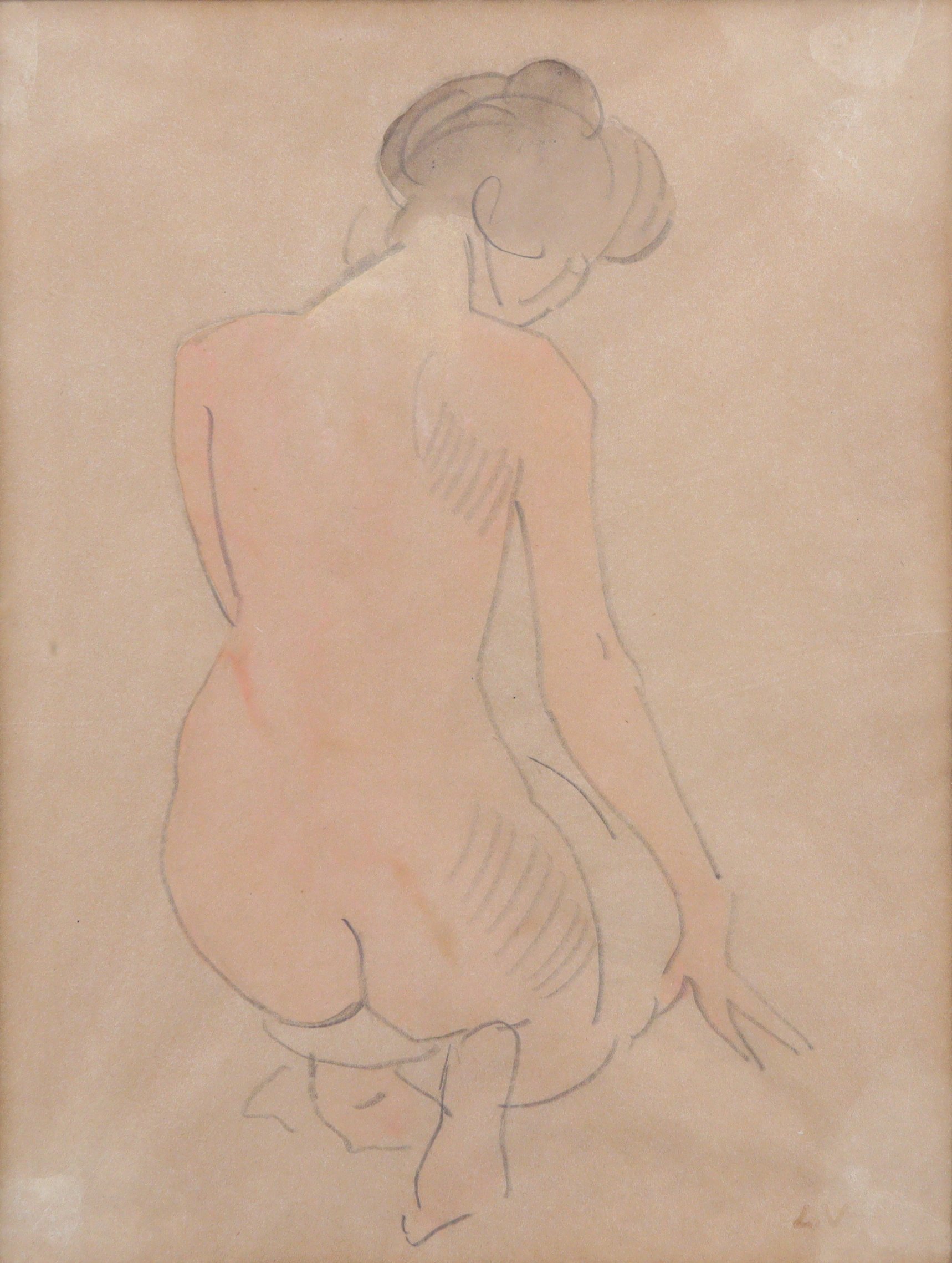 LOUIS VALTAT (Dieppe 1869-Paris, 1952)Nu de dosPapier, monogrammé L.V en...