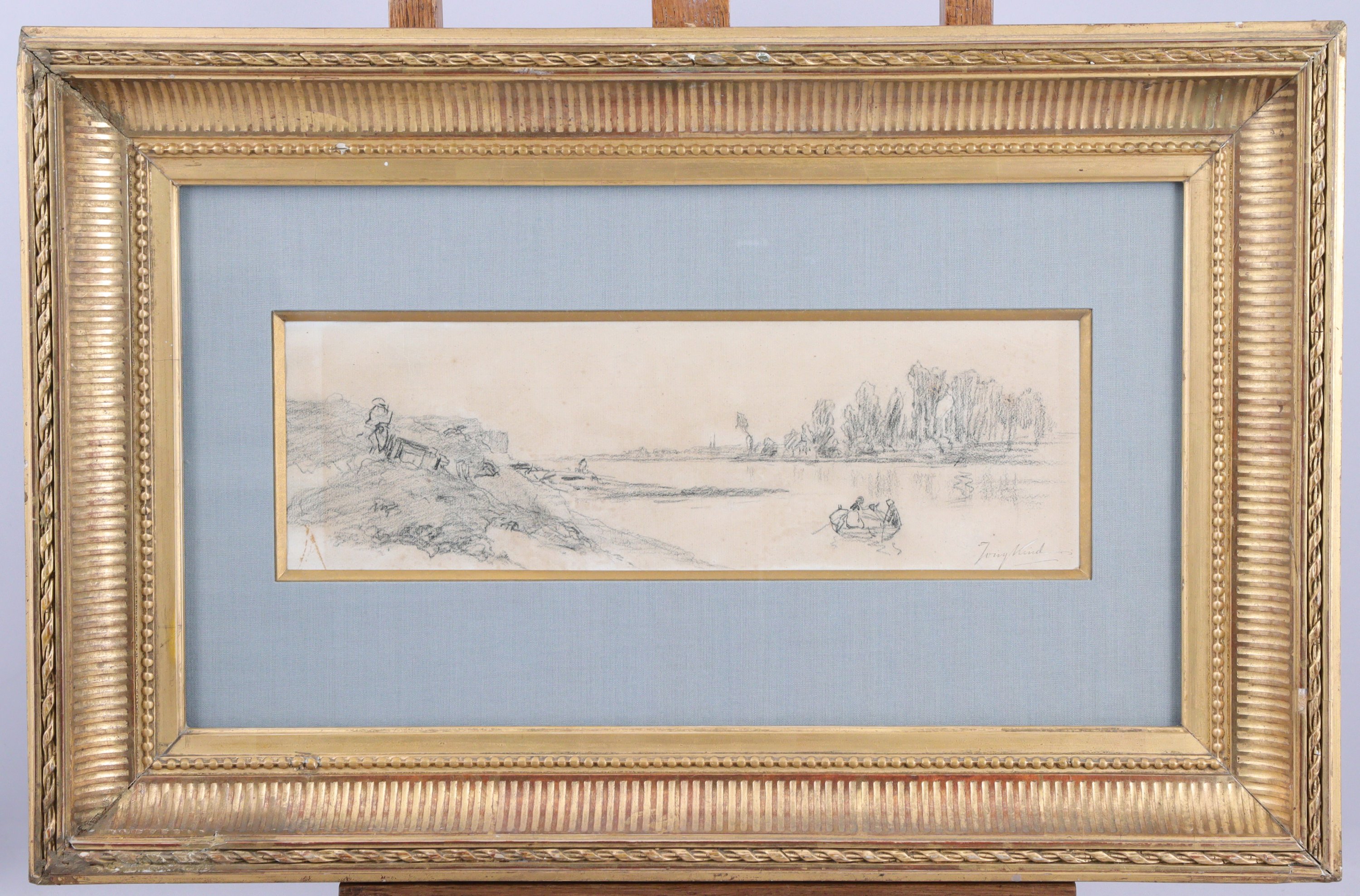 JOHAN-BARTHOLD JONGKIND (1819-1891)La RivièrePapier, signé en bas à droite.Haut. 10,5,...