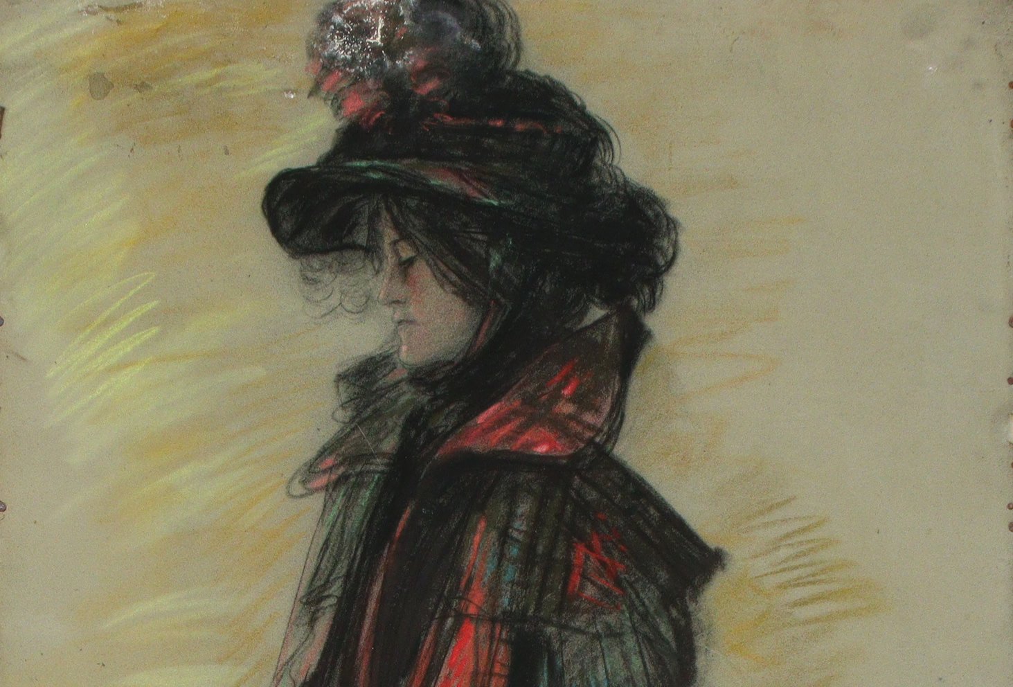 HENRY JULES CHARLES DE GROUX (1866-1930)Portrait de femme au chapeau...
