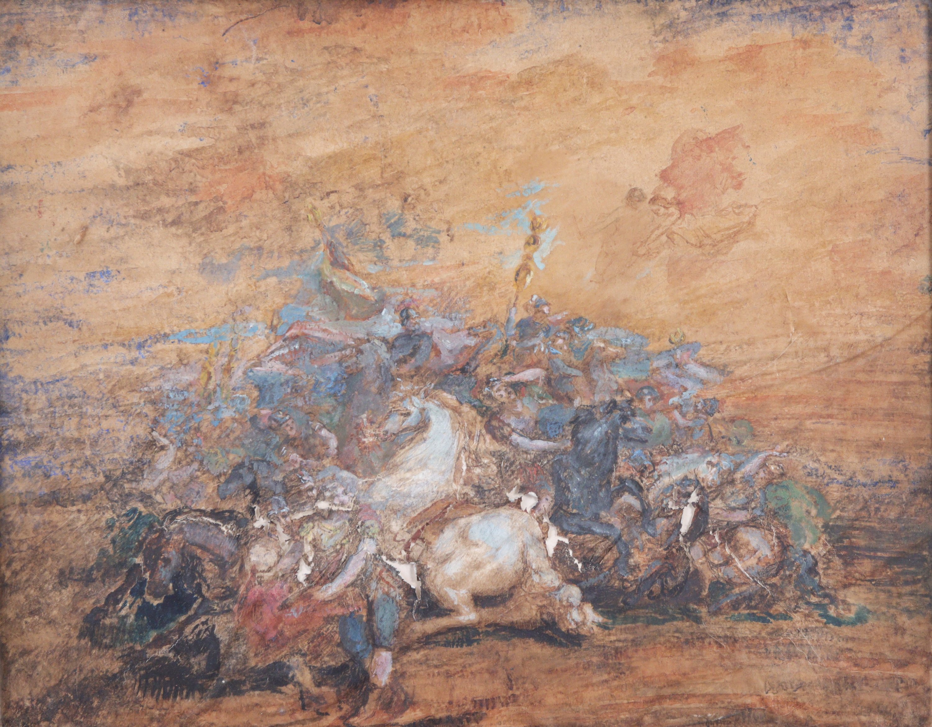 Aquarelle sur papier. Étiquette du marchand Durand-Ruel, portant le numéro "3430", le titre "Allégorie" et le médium "aq."; et de l'encadreur Dosbourg, rue Houdon".