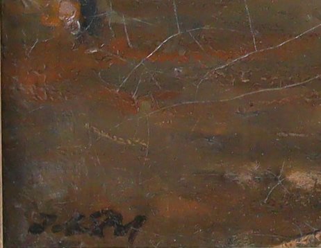 Toile, monogrammée en bas à gauche. Porte une étiquette au dos.