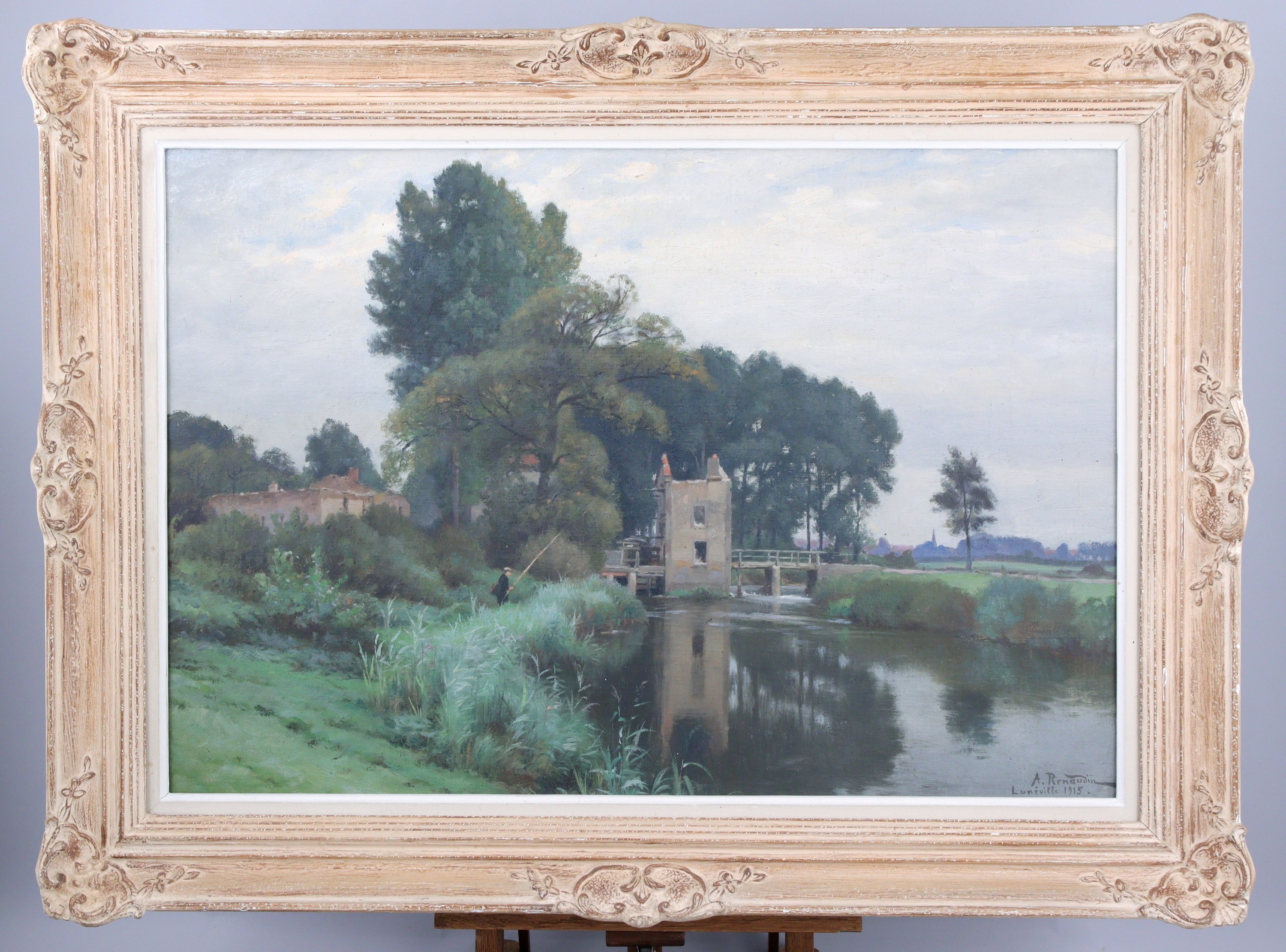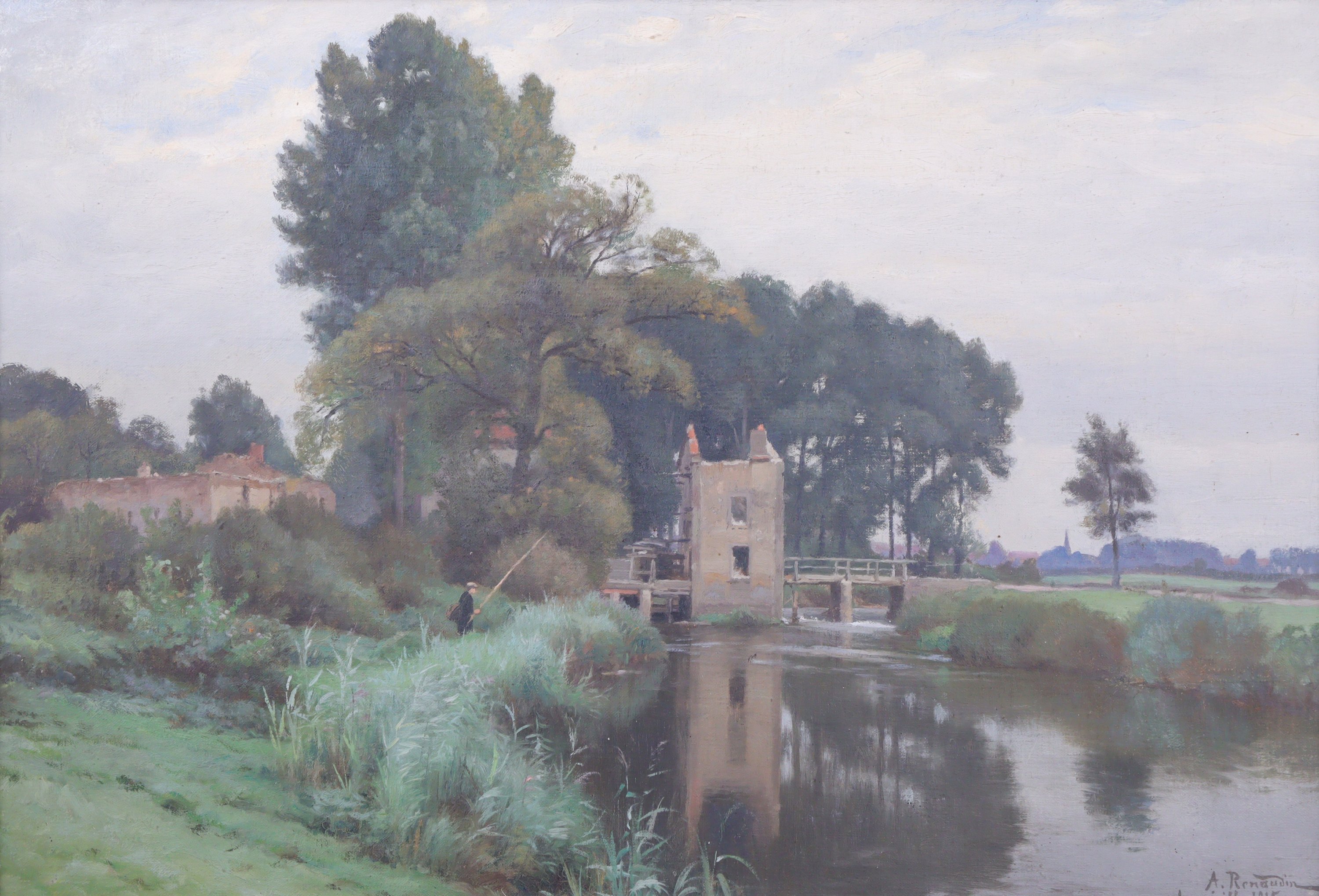ALFRED RENAUDIN (1866-1944) Pêcheur à la ligne auprès d'un moulin,...