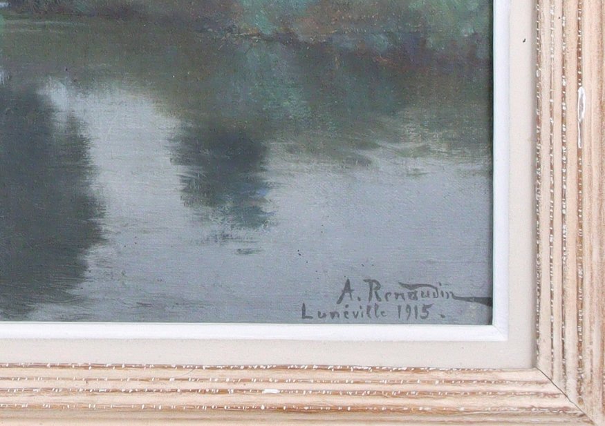 Toile, signée en bas à droite, située "Lunéville" et datée 1915.