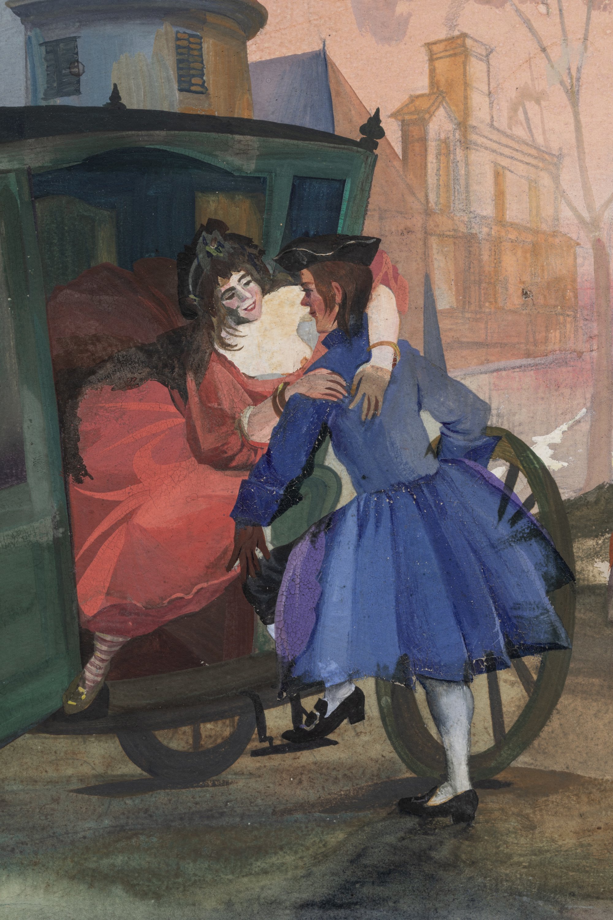 Nos cinq gouaches illustrent avec talent différents passage du roman. Si leur composition peut paraitre désordonnée, emmêlant les plans et les points de vue, ces lacunes apportent in fine dynamisme, sens de la comédie et une originalité ressourçante à ce grand roman français. La sauvagerie effrénée du mouvement, voire la turbulence des couleurs mêlées d'humour, manifestée dans les expressions des visage et des gestes, aux délicates nuances de gouache et d’aquarelle, signe définitivement le style de l’une des artistes les plus anticonformistes de son temps.