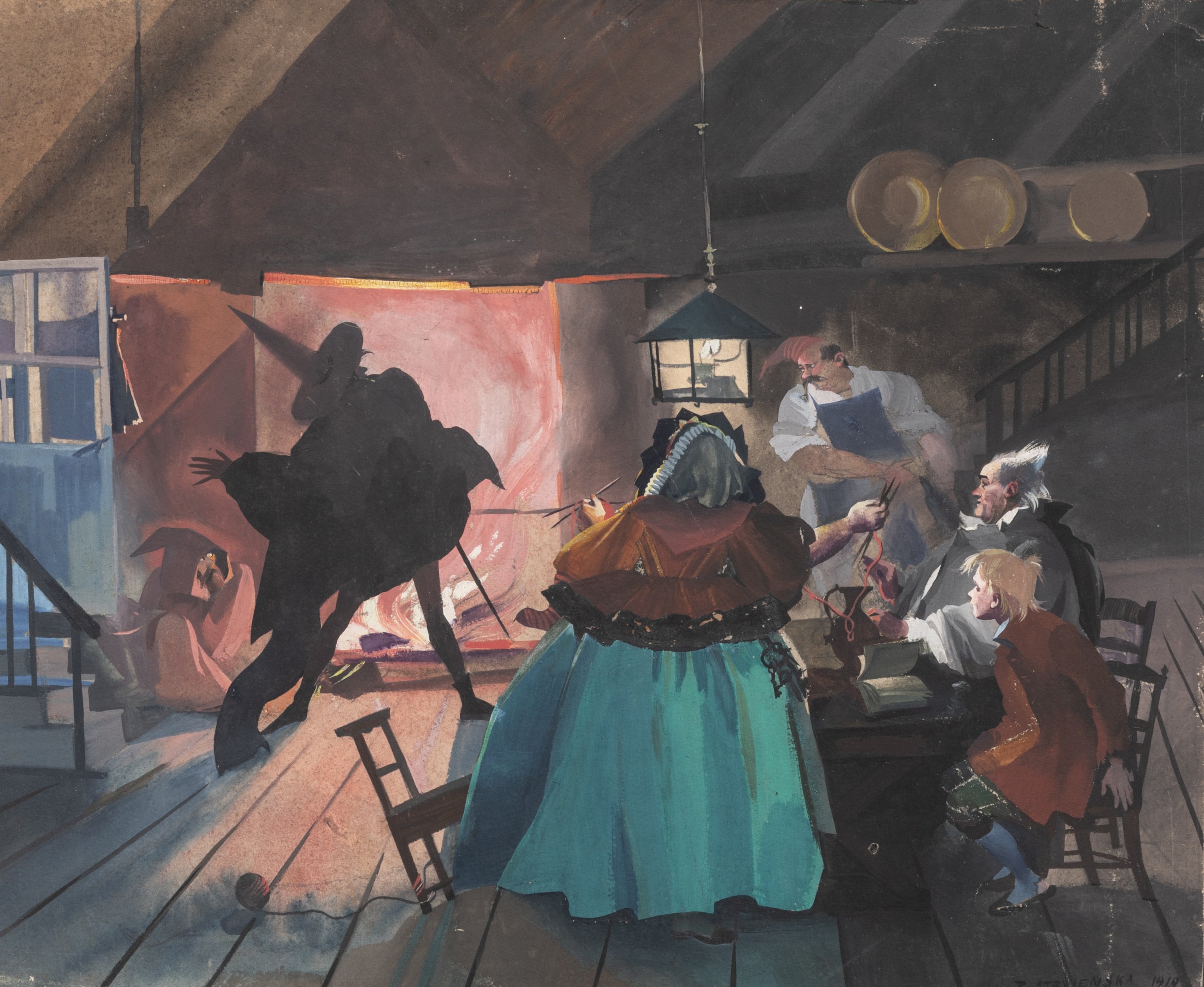 Cinq gouaches signées, trois datées 1919 et 1920, d’après le roman éponyme d’Anatole France.