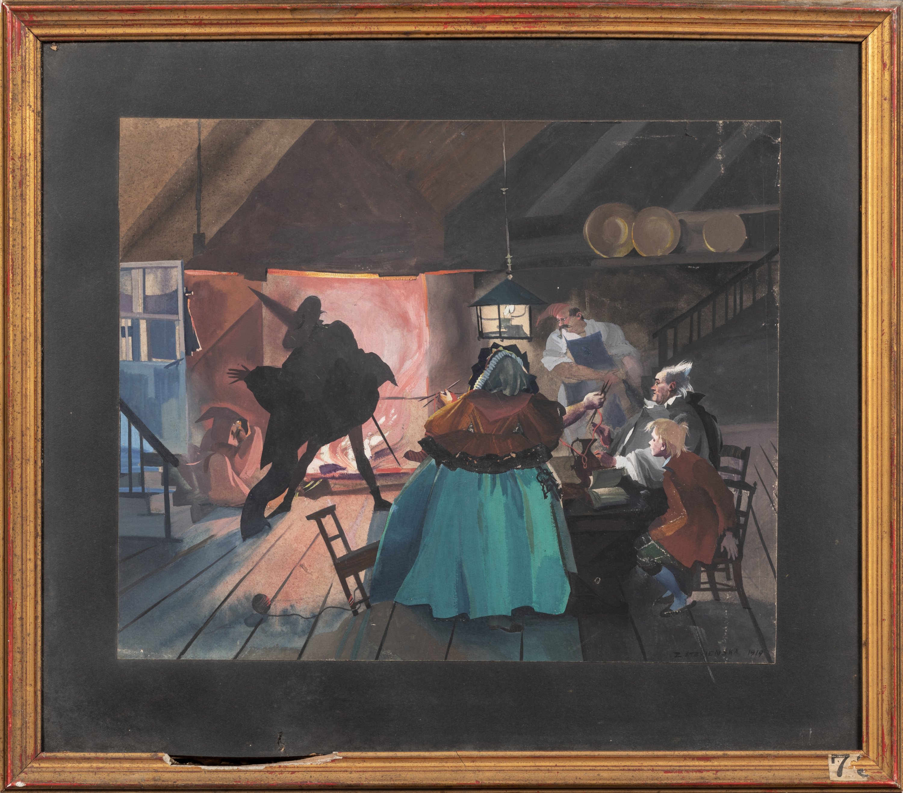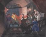 Irruption de l’Abbé Coignard dans la rôtisserie. Haut. 30, Larg. 36,8 cm.