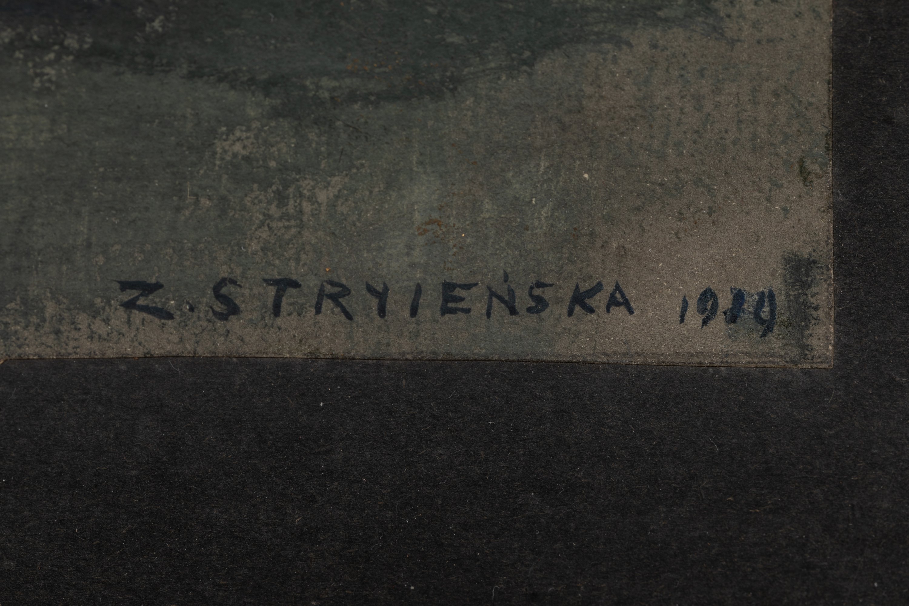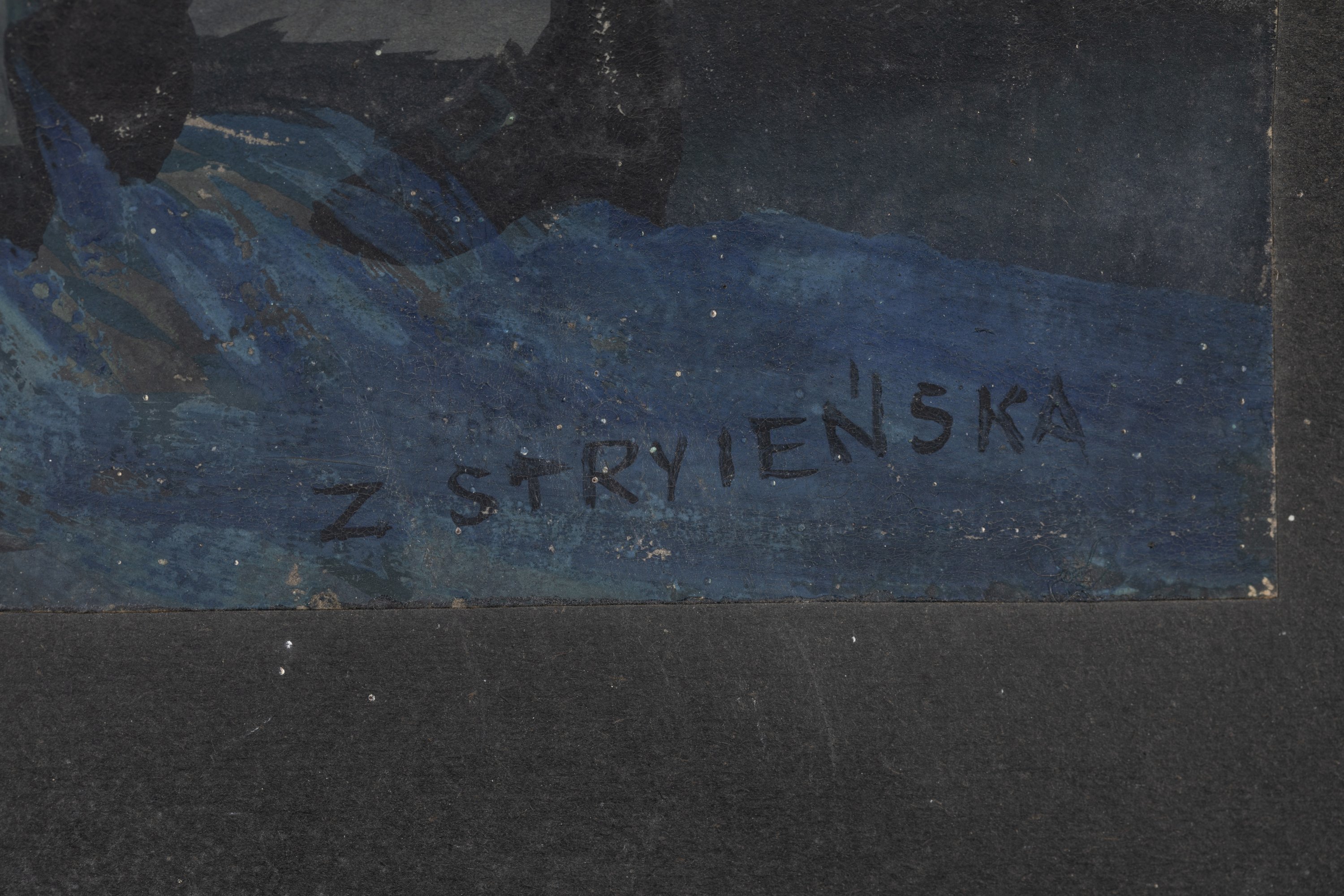 Probablement l’une des plus grandes artistes polonaises, Zofia Ztryjenska, née Lubańska, étudie dans sa ville natale de Cracovie, d’abord à l'école de Leonard Stroynowski (1908), puis celle de peinture pour femmes tenue par Maria Niedzielska (1909-1911). Talentueuse, elle poursuit sa formation à l’académie de Munich, sous le nom et l’identité de son frère Tadeusz Grzymała, d'octobre 1911 à 1912. Elle y est grimée en homme, à qui le système d'enseignement supérieur des arts était alors exclusivement réservé. En 1916, elle épouse l’architecte Karol Stryjeński (1887-1932), qu’elle vient tout juste de rencontrer. Ils divorceront douze ans et trois enfants plus tard, au terme d’une relation tumultueuse faite de ruptures et d’internements psychiatriques. Elle est alors la designer des ateliers de Varsovie, créant de spectaculaires jouets en bois, avant de se consacrer à la peinture.