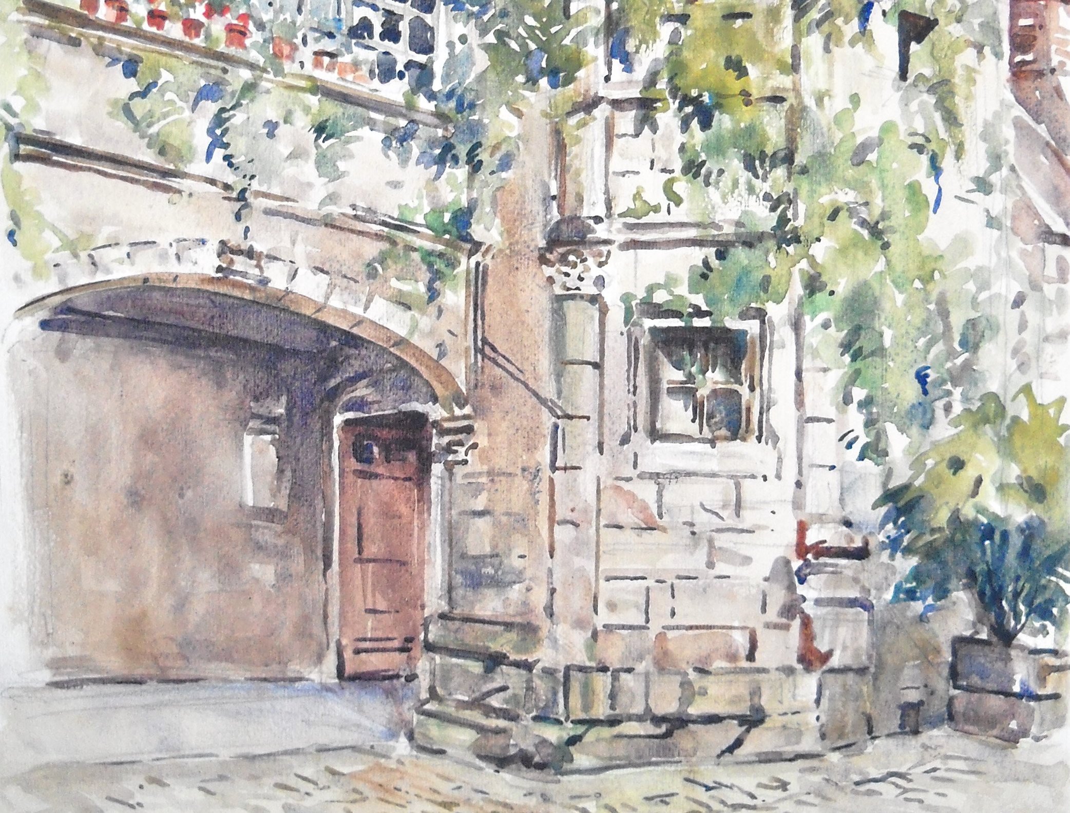 - Les degrés Saint Louis à Blois, 1959. Aquarelle, signée. Haut. 38, Larg. 20 cm.