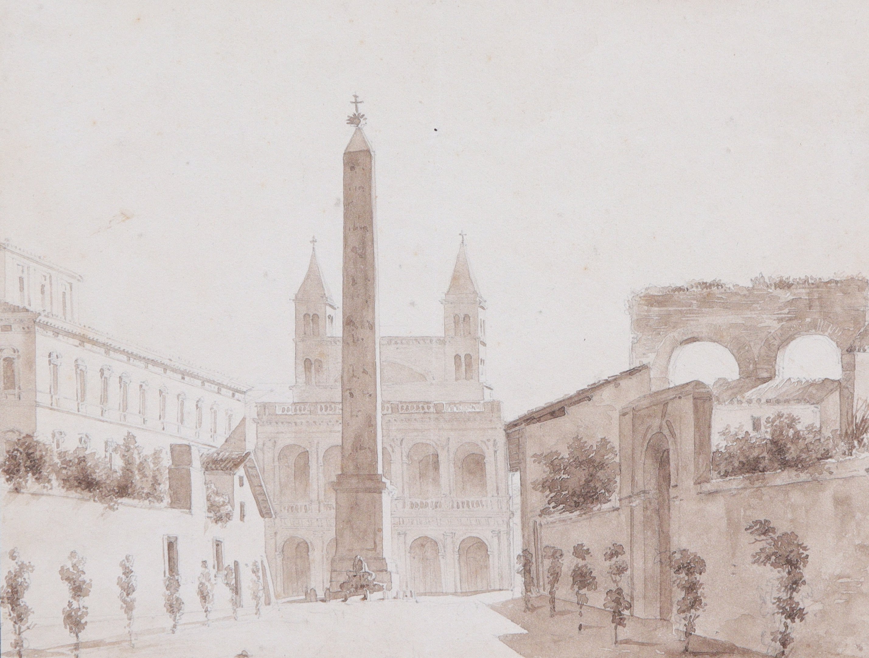 Inscription manuscrite au dos : "Jean-xXavier Bidauld (1758-1846), Saint Jean de Latran" ainsi qu'une signature manuscrite.