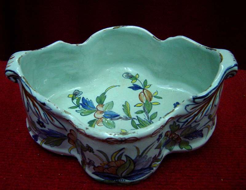 SINCENY. JARDINIERE polylobée en faïence de petit feu polychrome à décor floral. XVIIIème. Long. 18, Haut. 7 cm.
