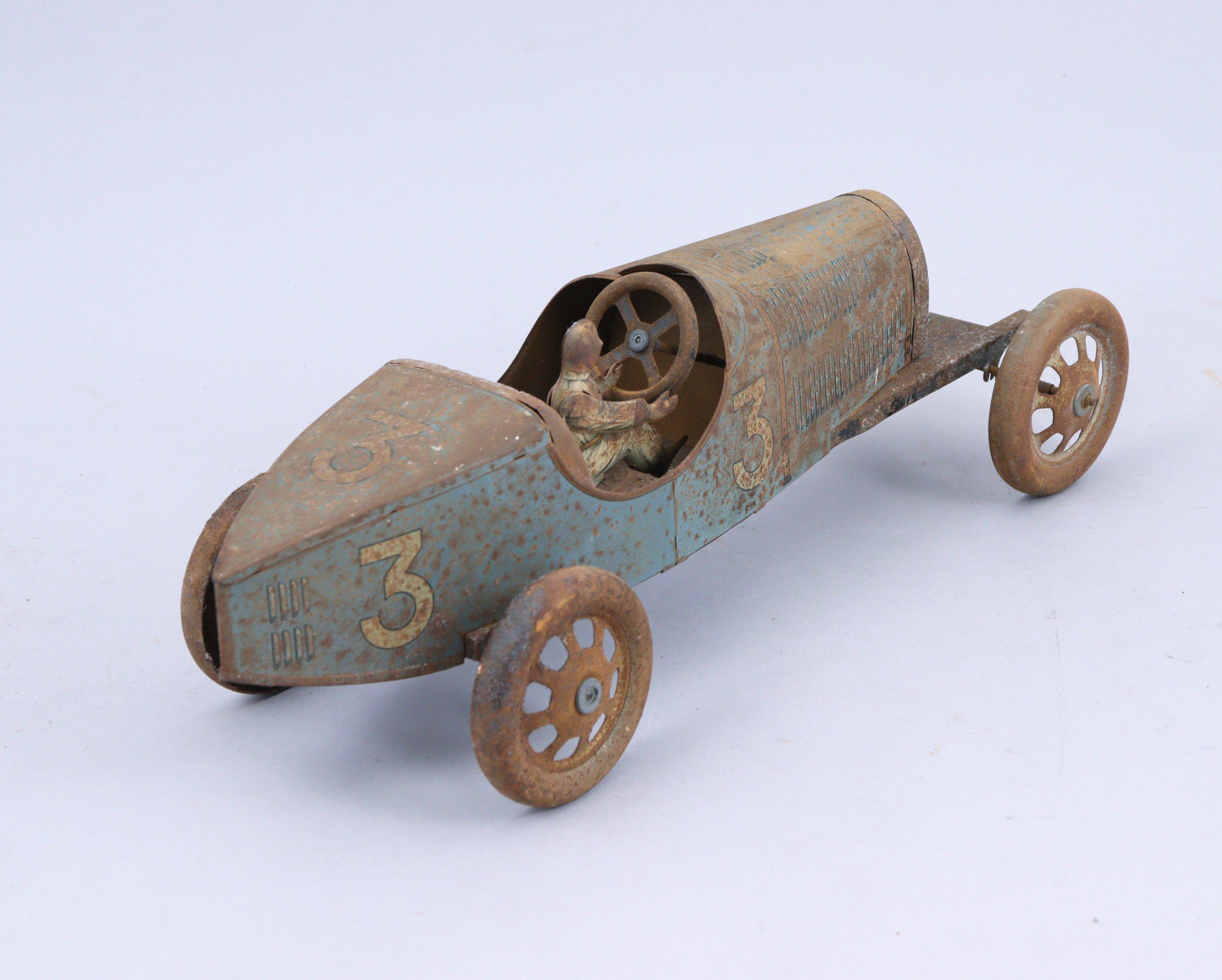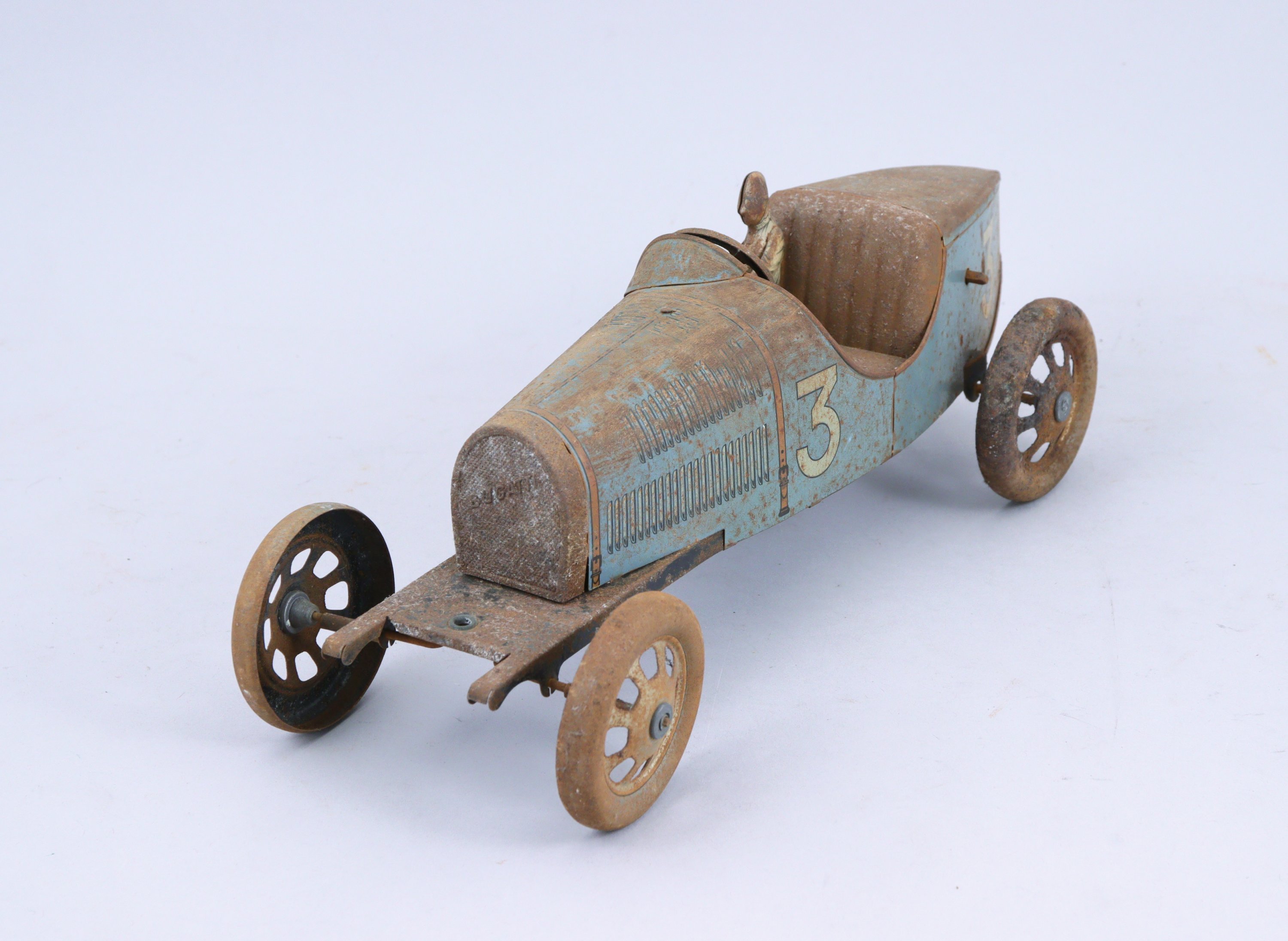 JEP Bugatti de course mécanique lithographiée, bleue, avec pilote numéro 3