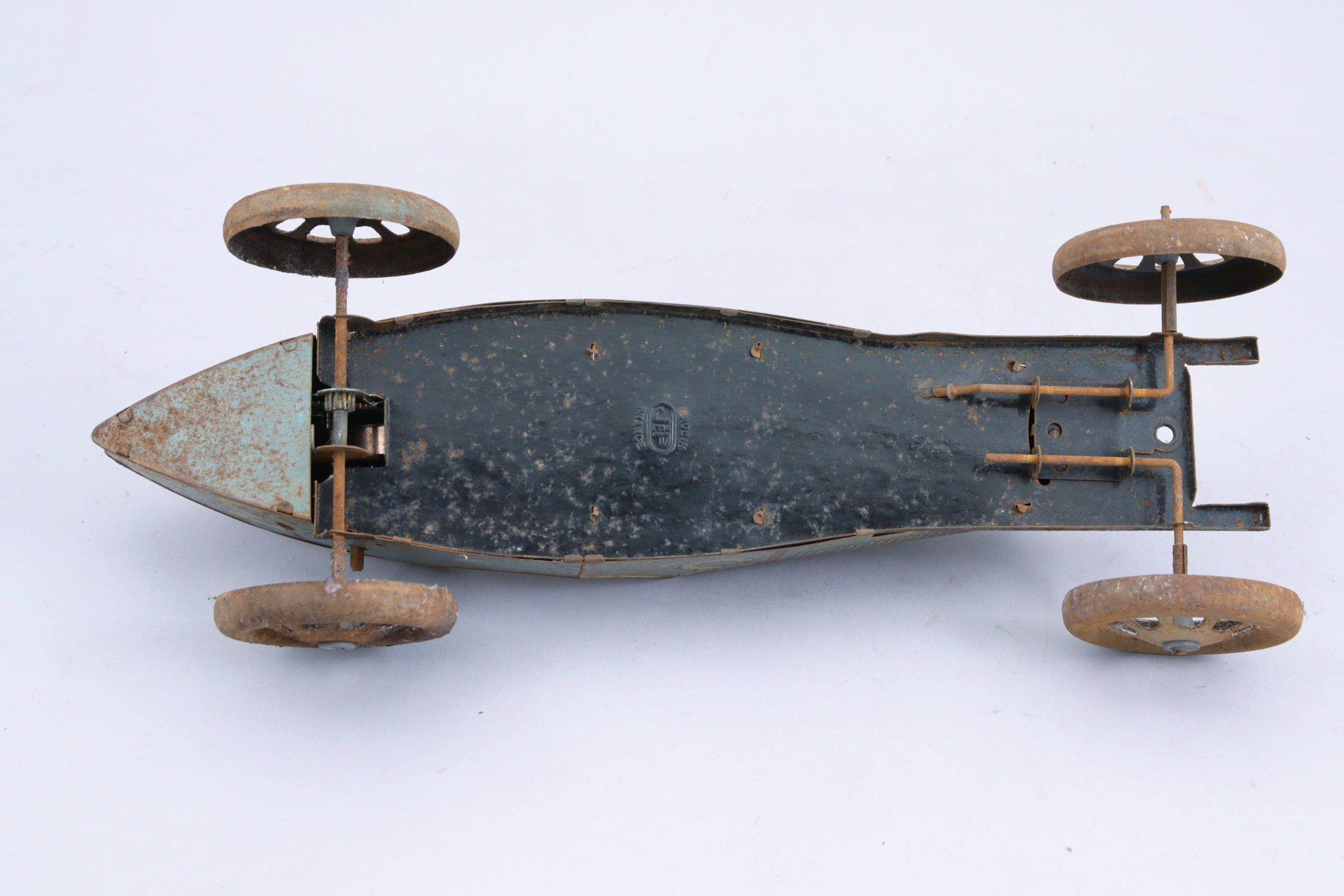JEP Bugatti de course mécanique lithographiée, bleue, avec pilote numéro...