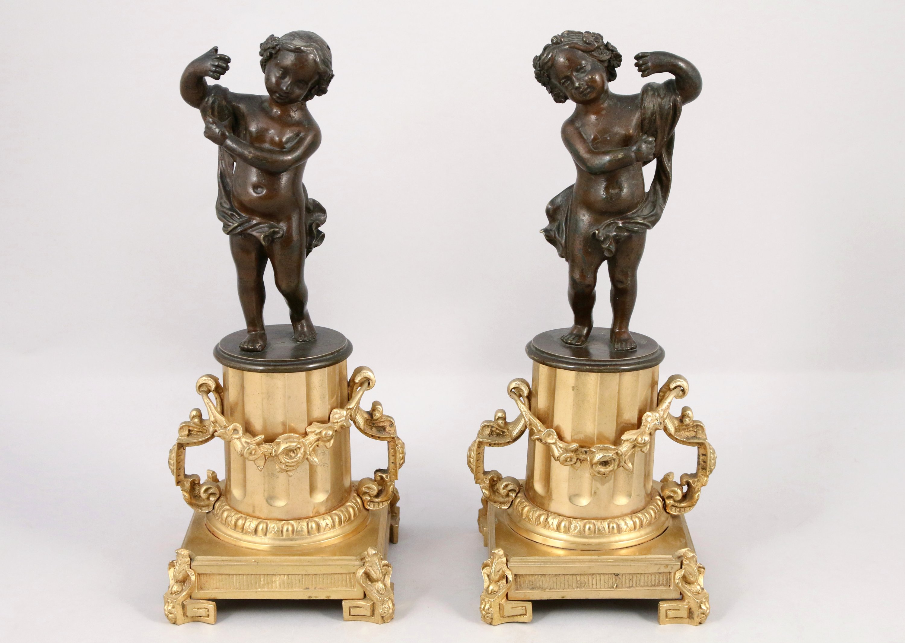 Sur un socle en bronze doré prenant la forme d'une colonne cannelée à décor de guirlande fleurie.