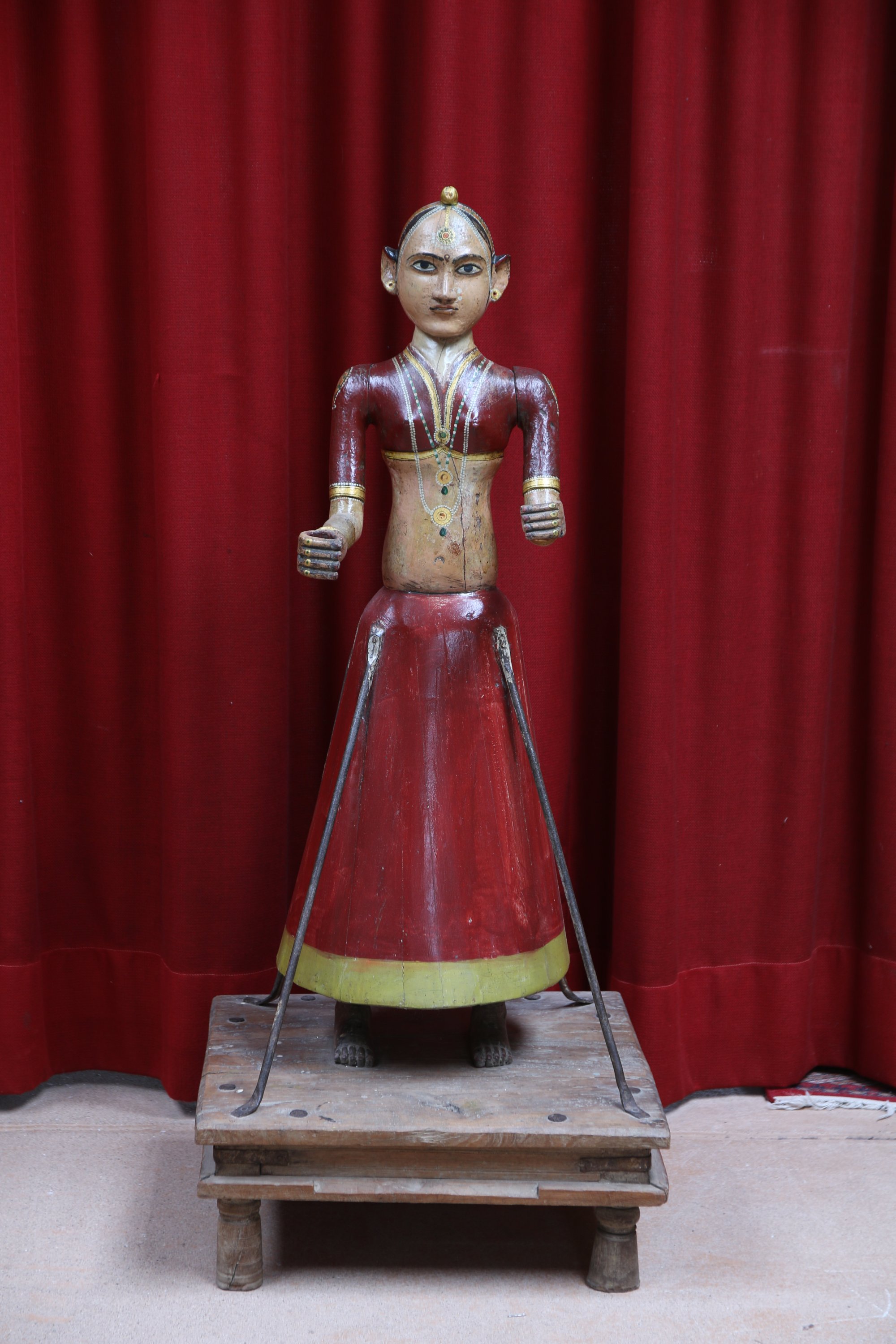 INDE DU NORD - XIXe s. STATUETTE DE PROCESSION en bois polychrome sculpté