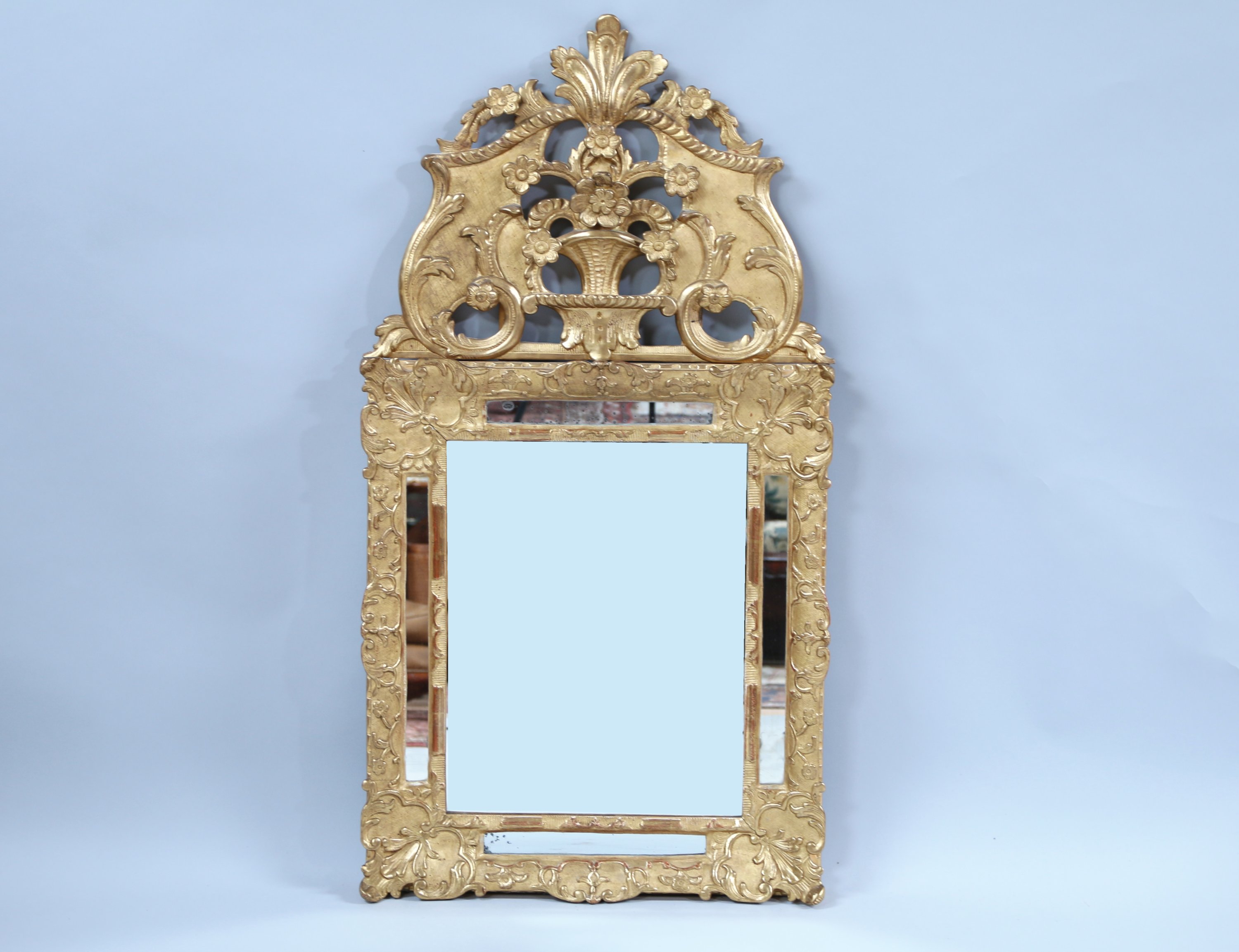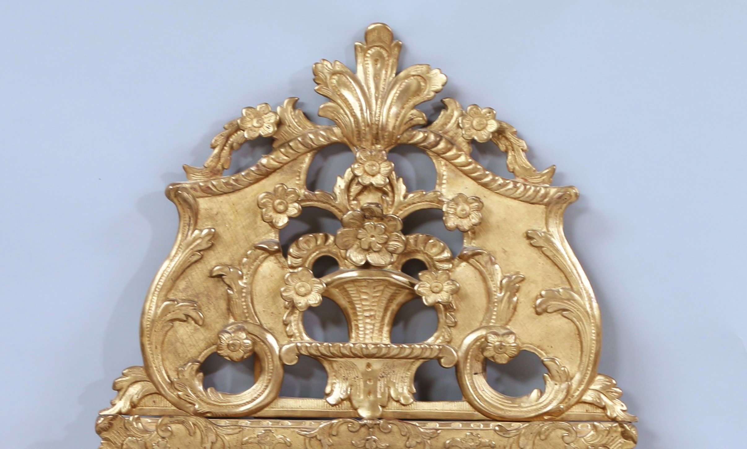 MIROIR à FRONTON et PARECLOSES en bois doré