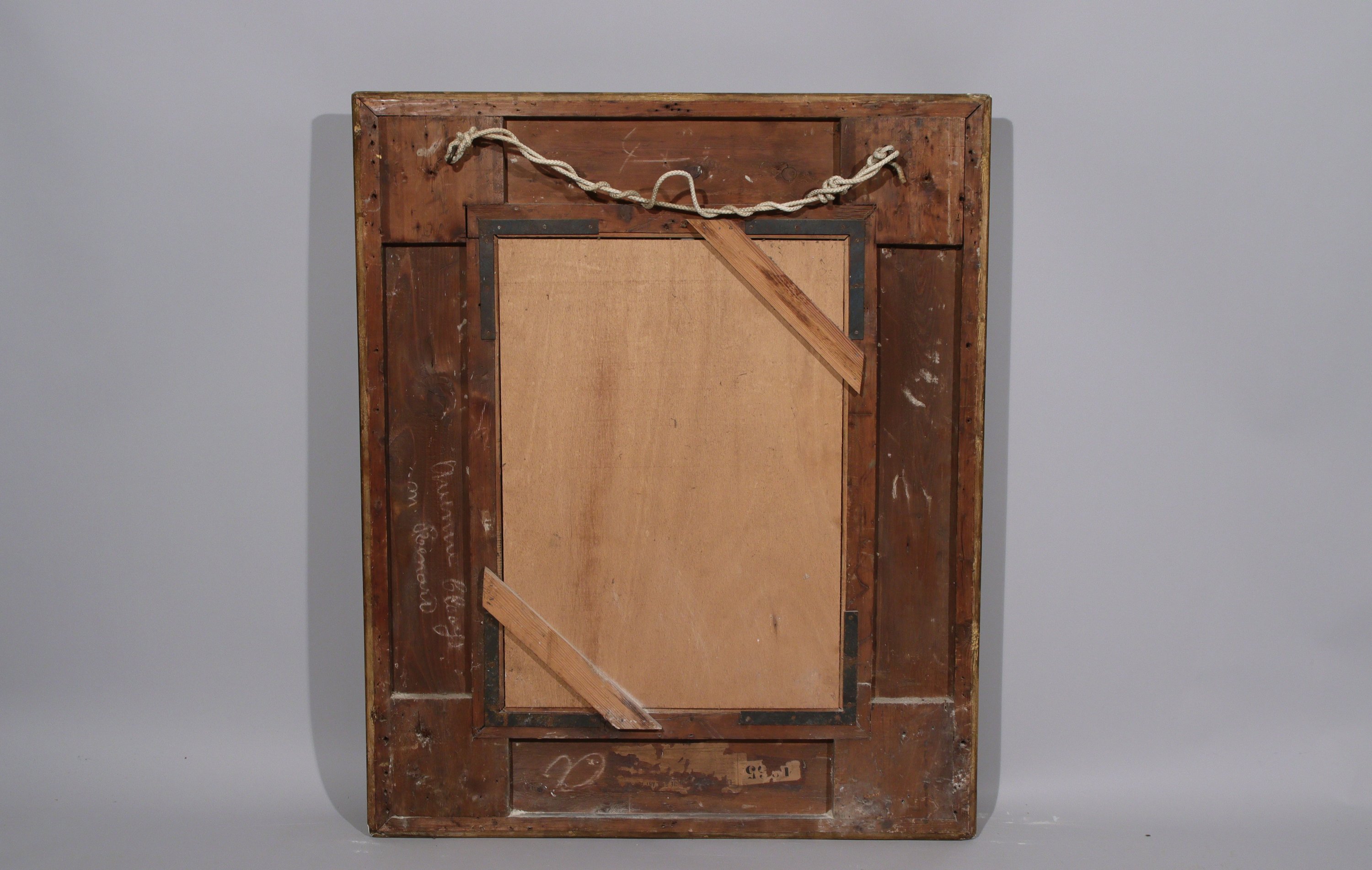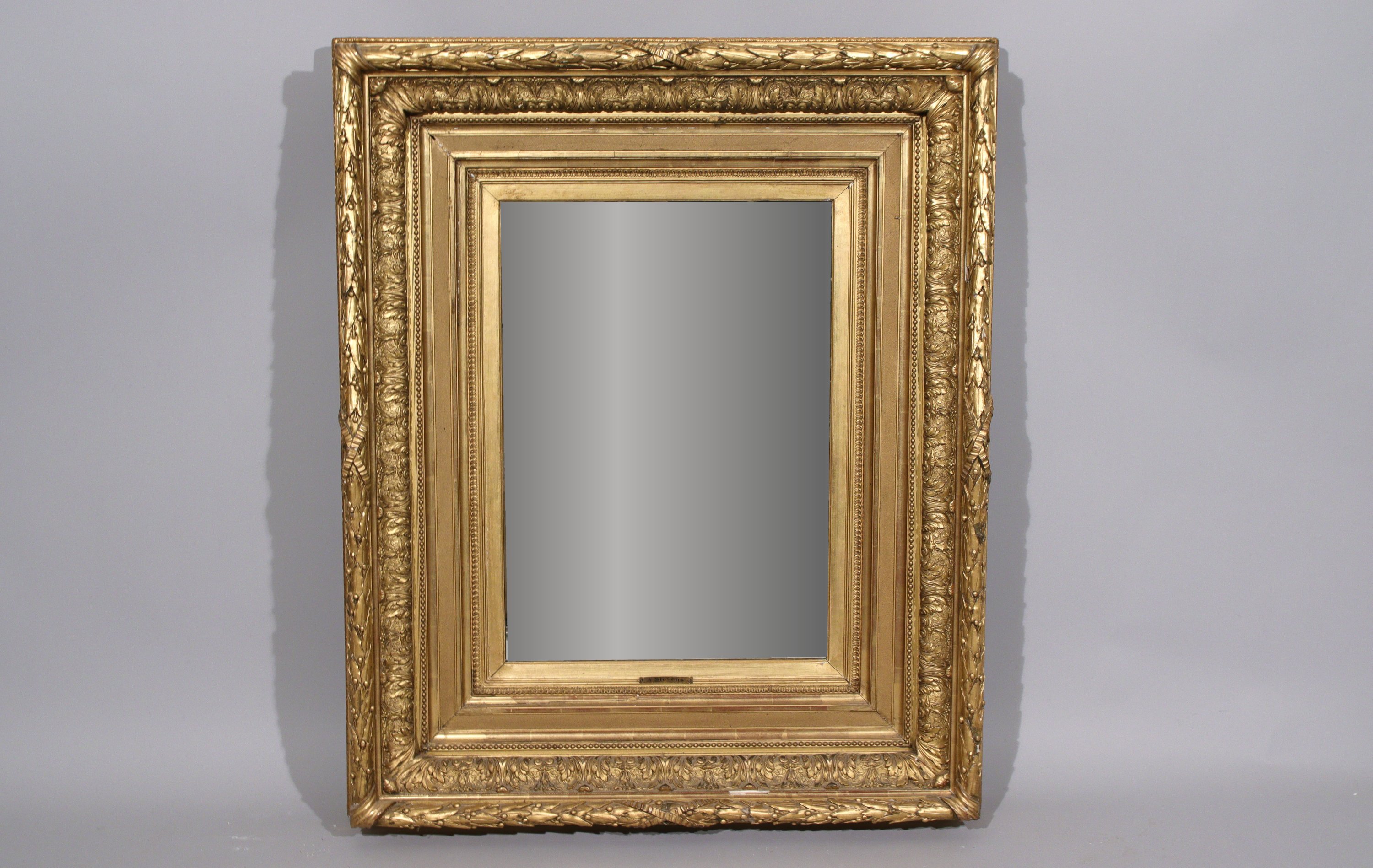 GLACE au MERCURE, à riche encadrement dans le goût du XVIIIe à motifs de couronnes et de laurier enrubanné et d'une frises de perles à la vue.