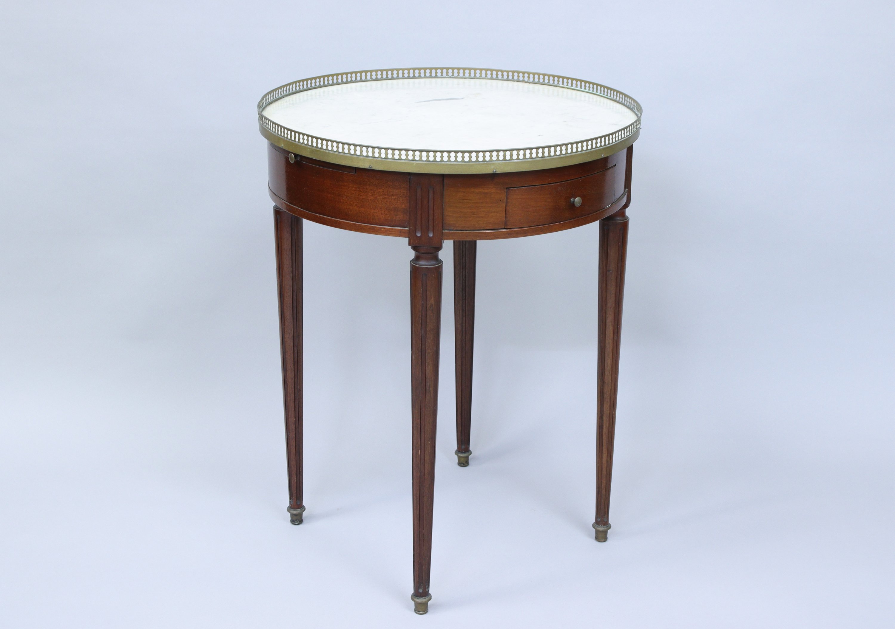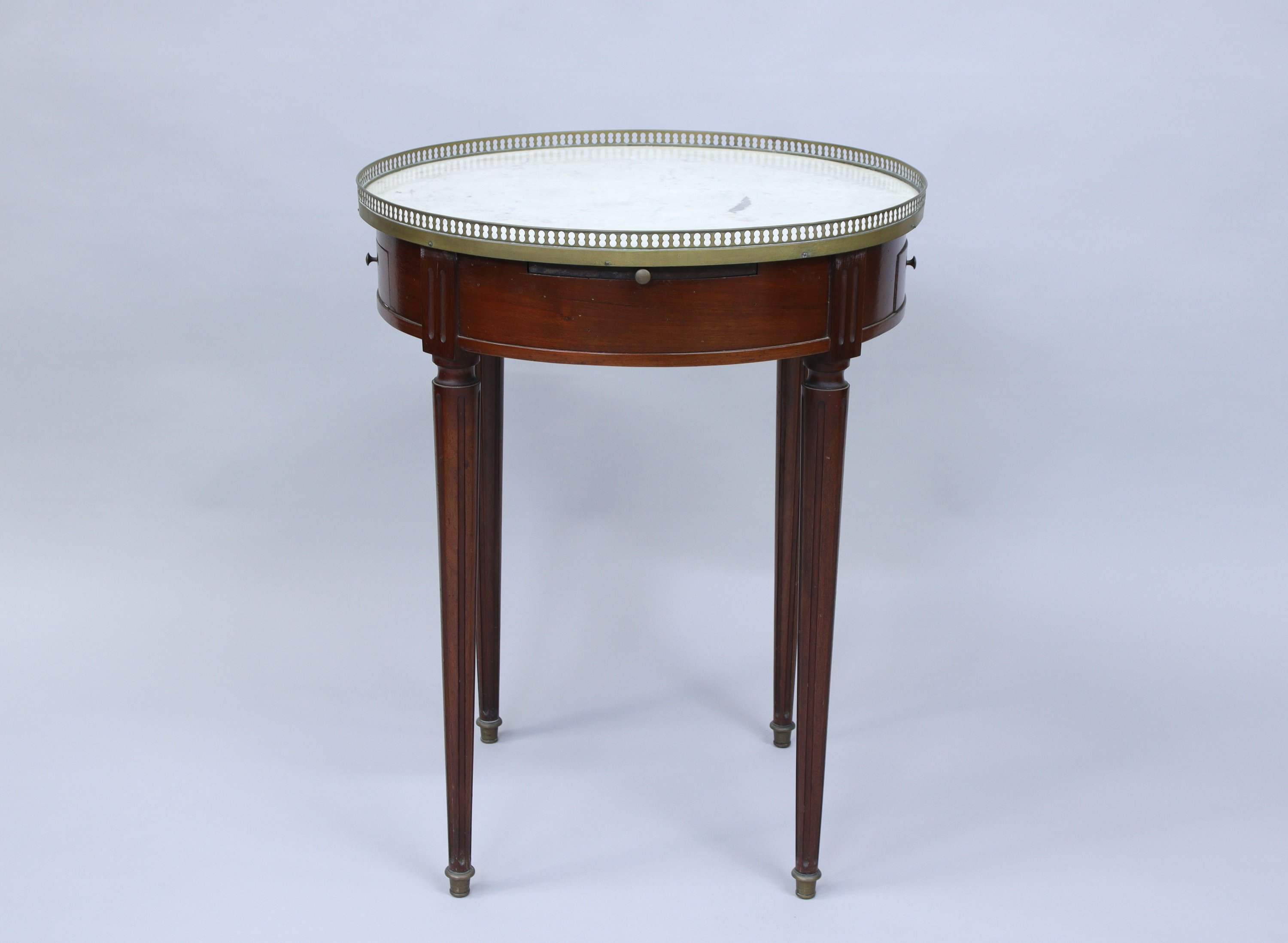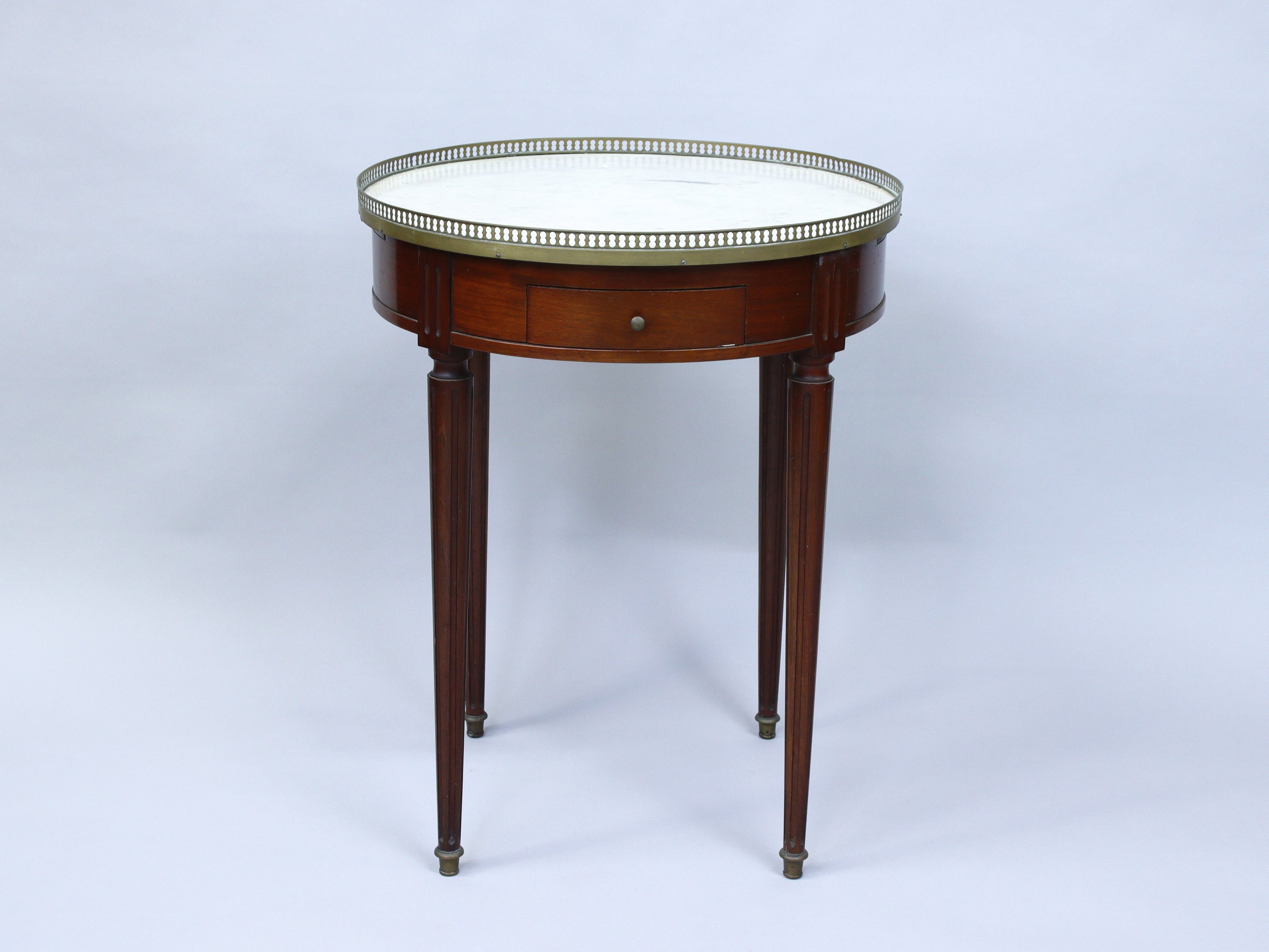 Plateau rond en marbre de Carrare ceint dune galerie en laiton.