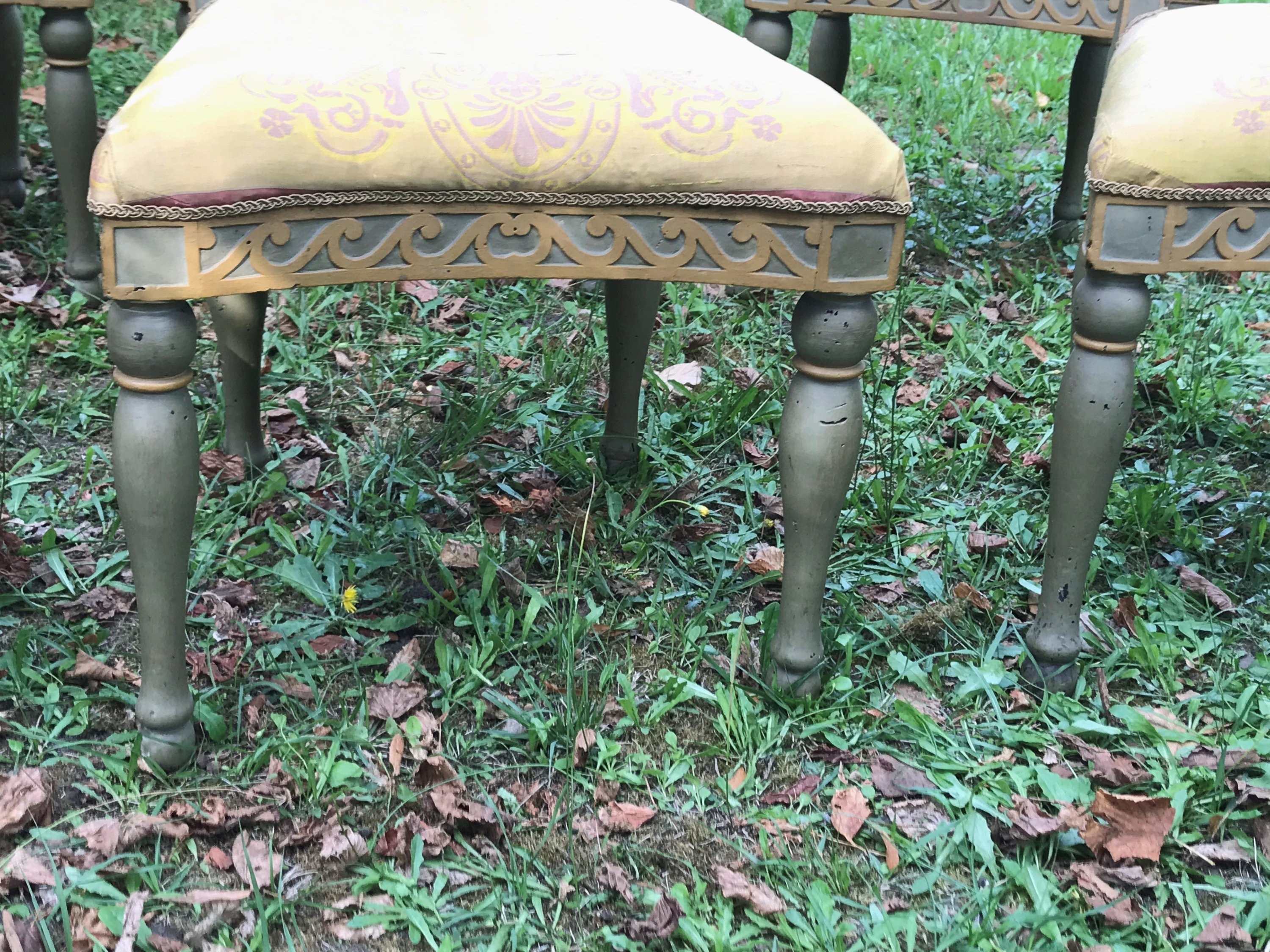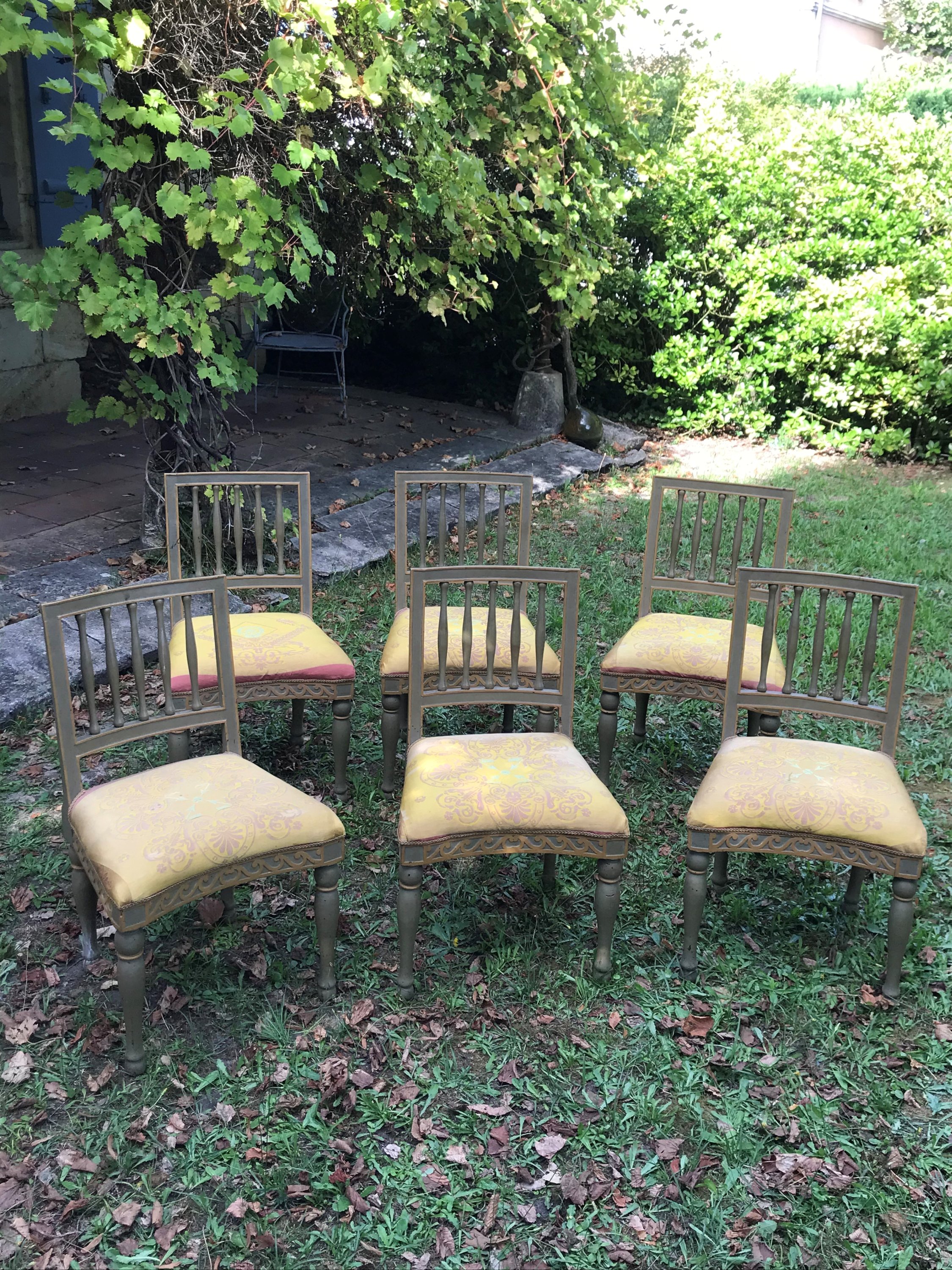 SUITE de SIX CHAISES en bois repeint vert et crème