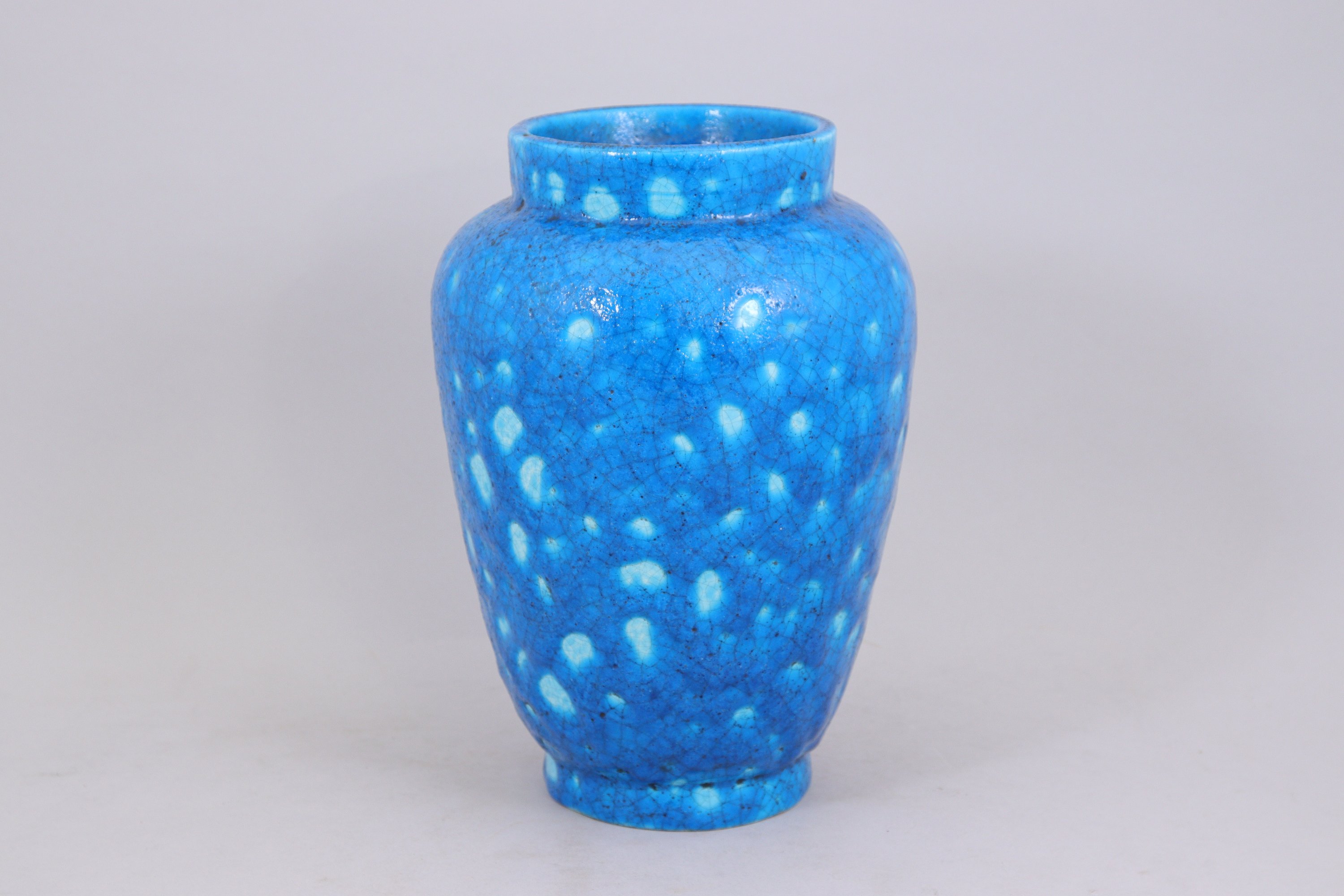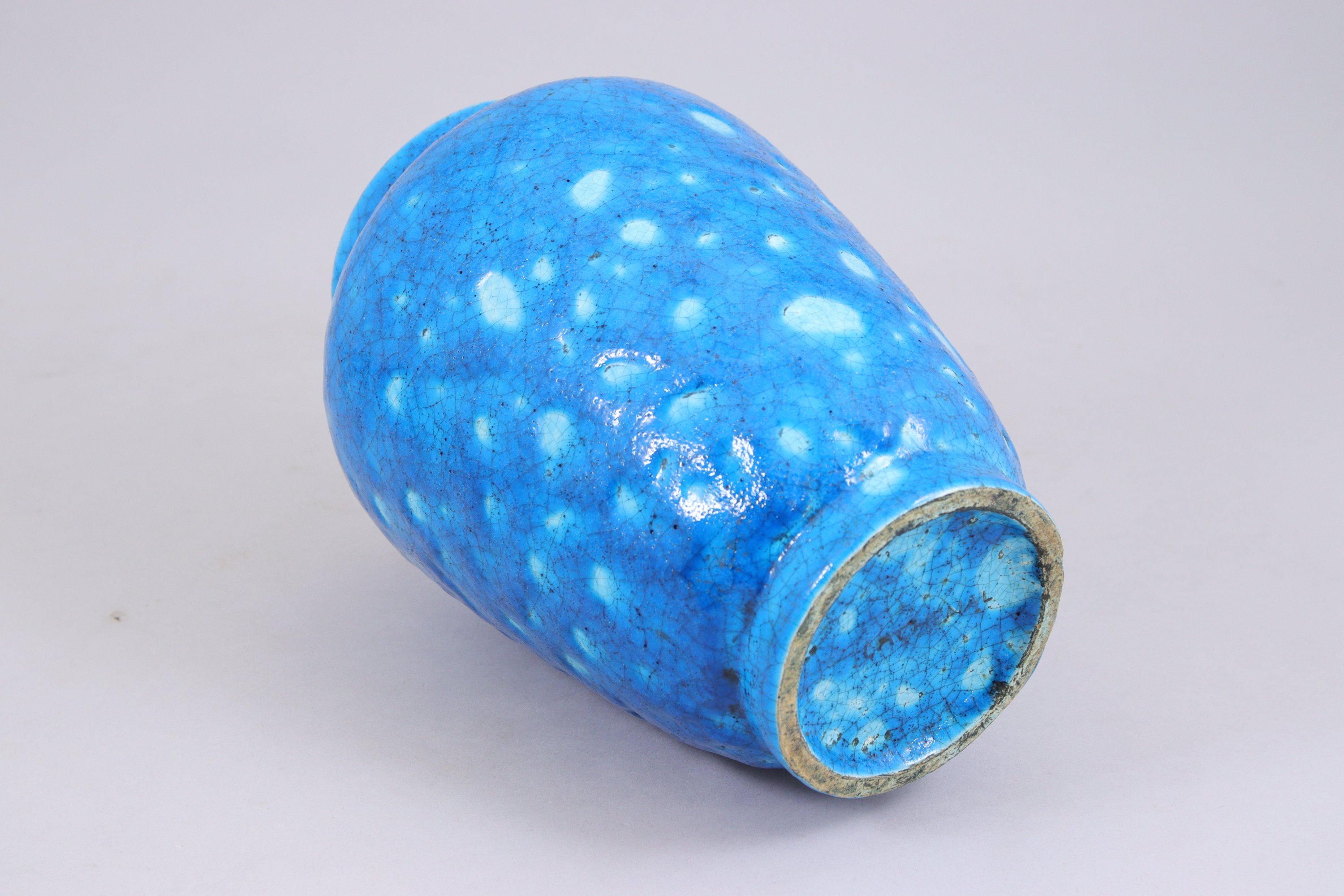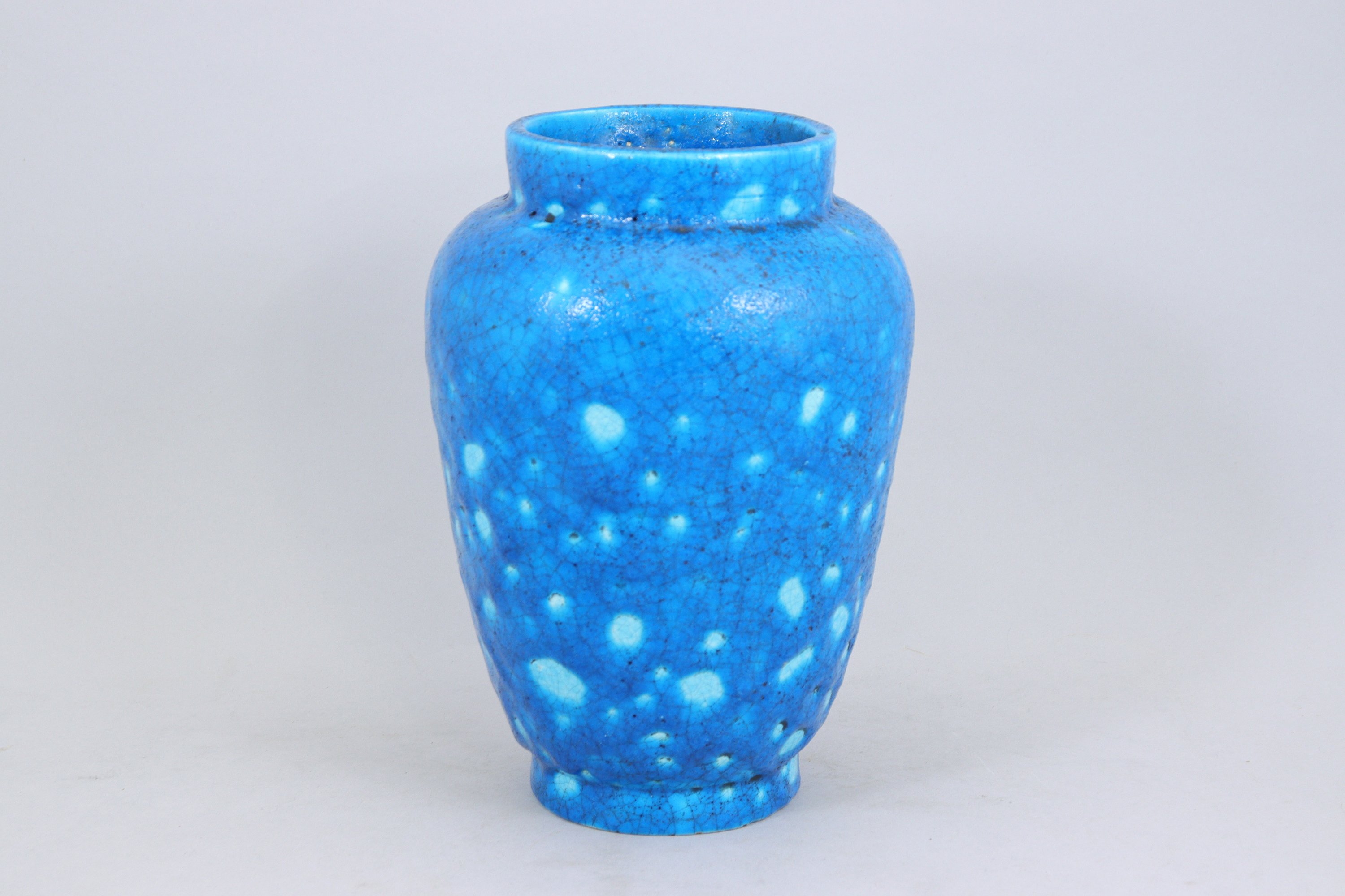 LACHENALVASE en céramique émaillée bleue de forme pansueSigné sur la...