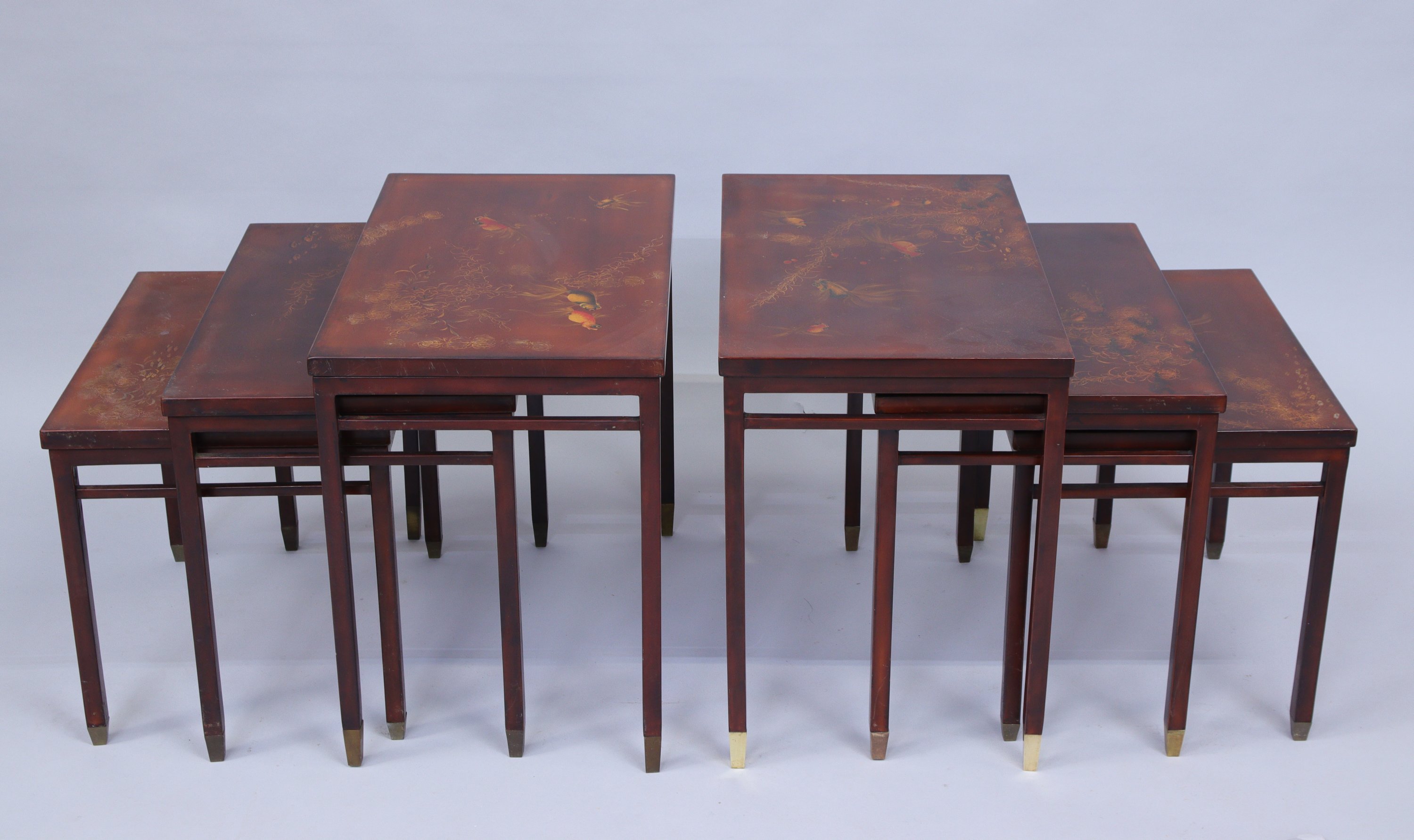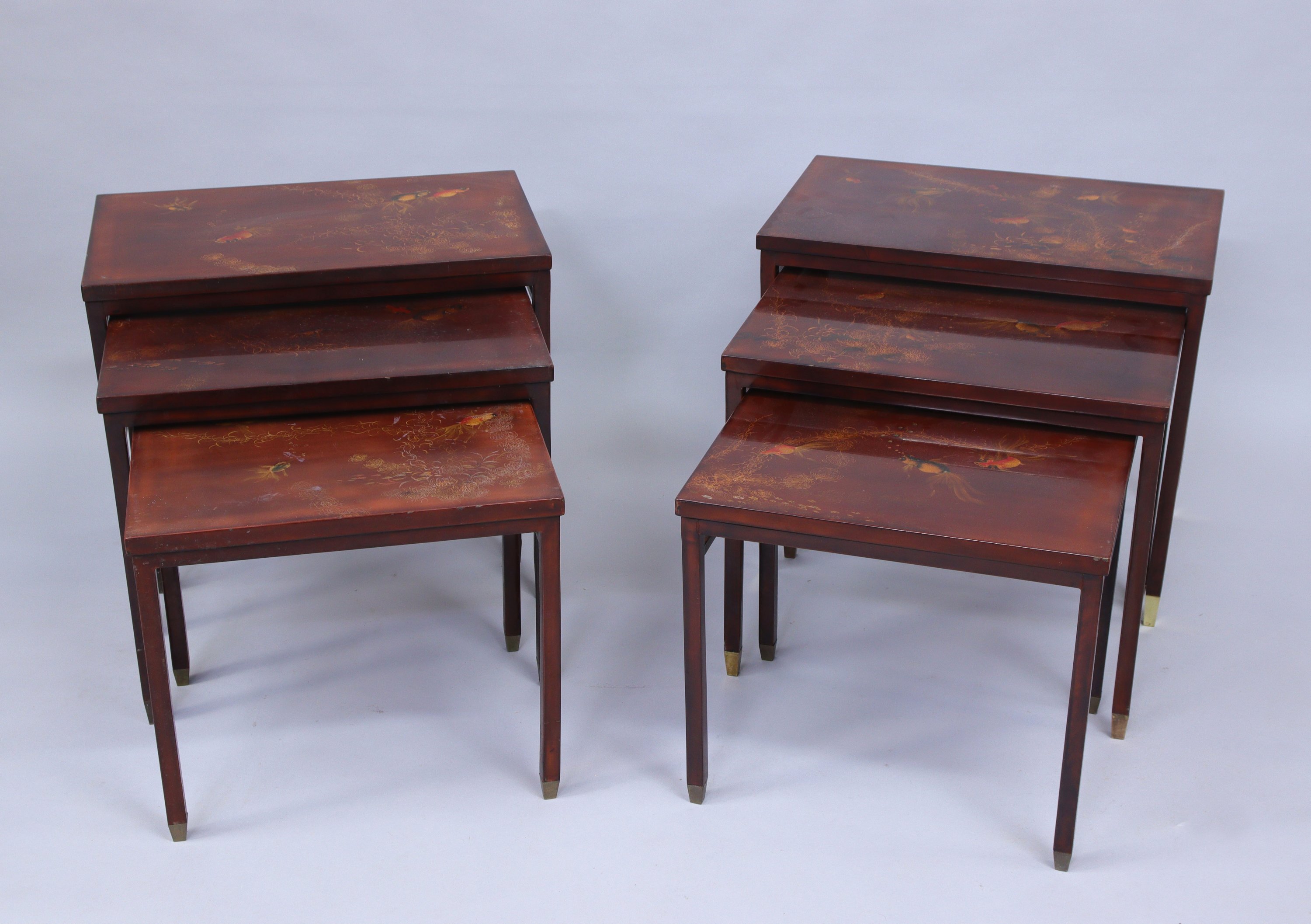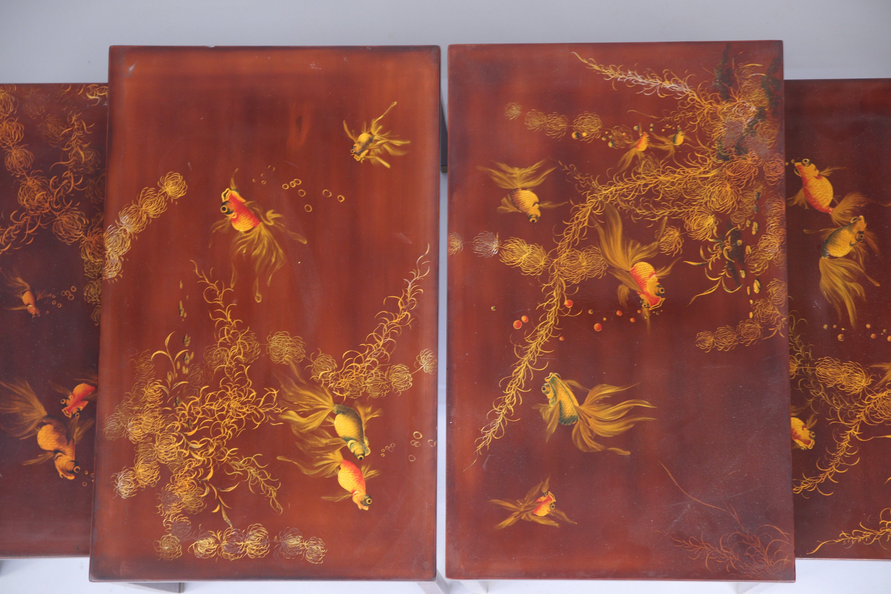 en laque à motifs de poissons télescopes et d'algues. Les pieds sont à sabot carré en laiton.