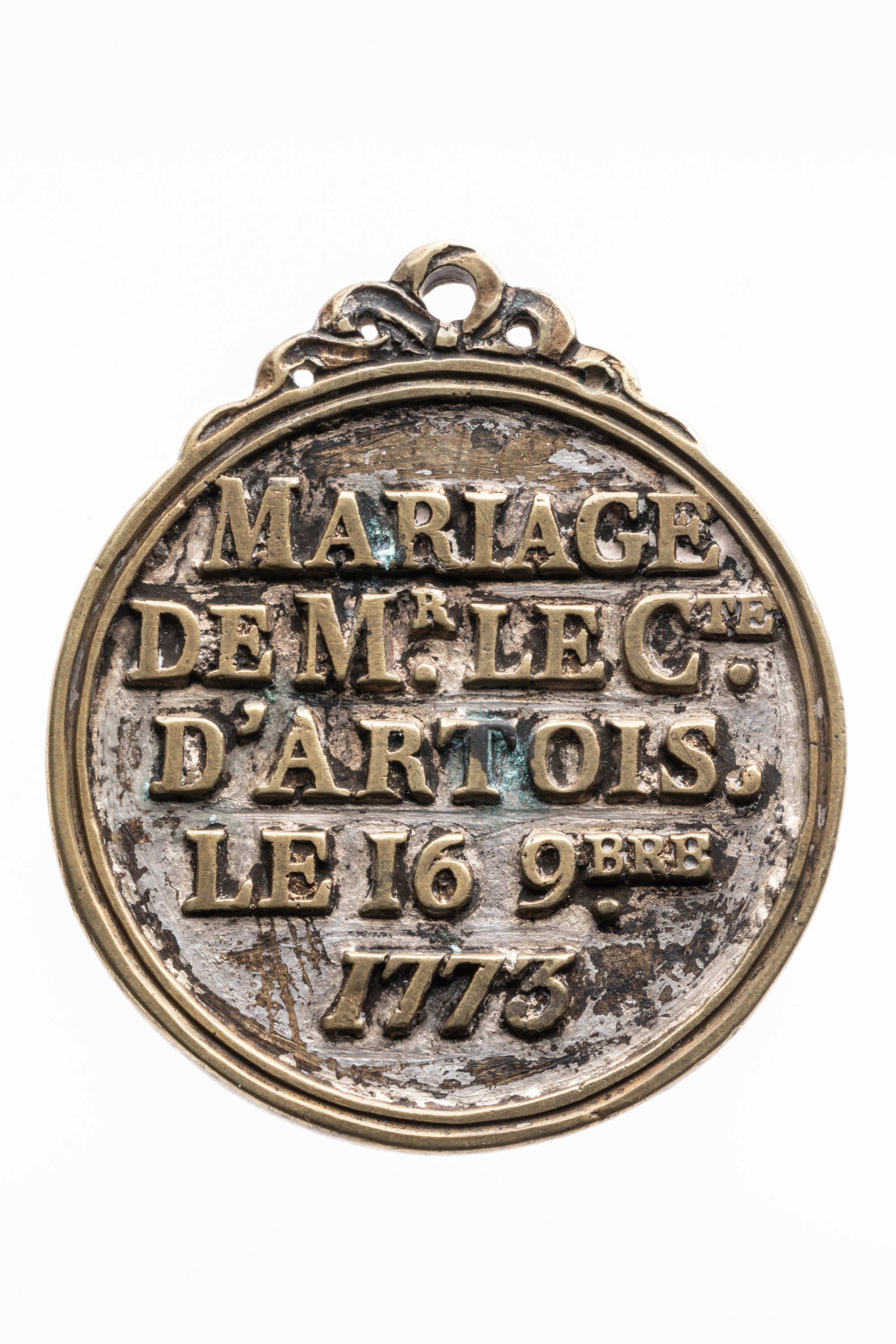 Avers : Inscription en cinq lignes MARIAGE/ DE Mr LE Cte/ D’ARTOIS/ LE 16 9 bre / 1773.