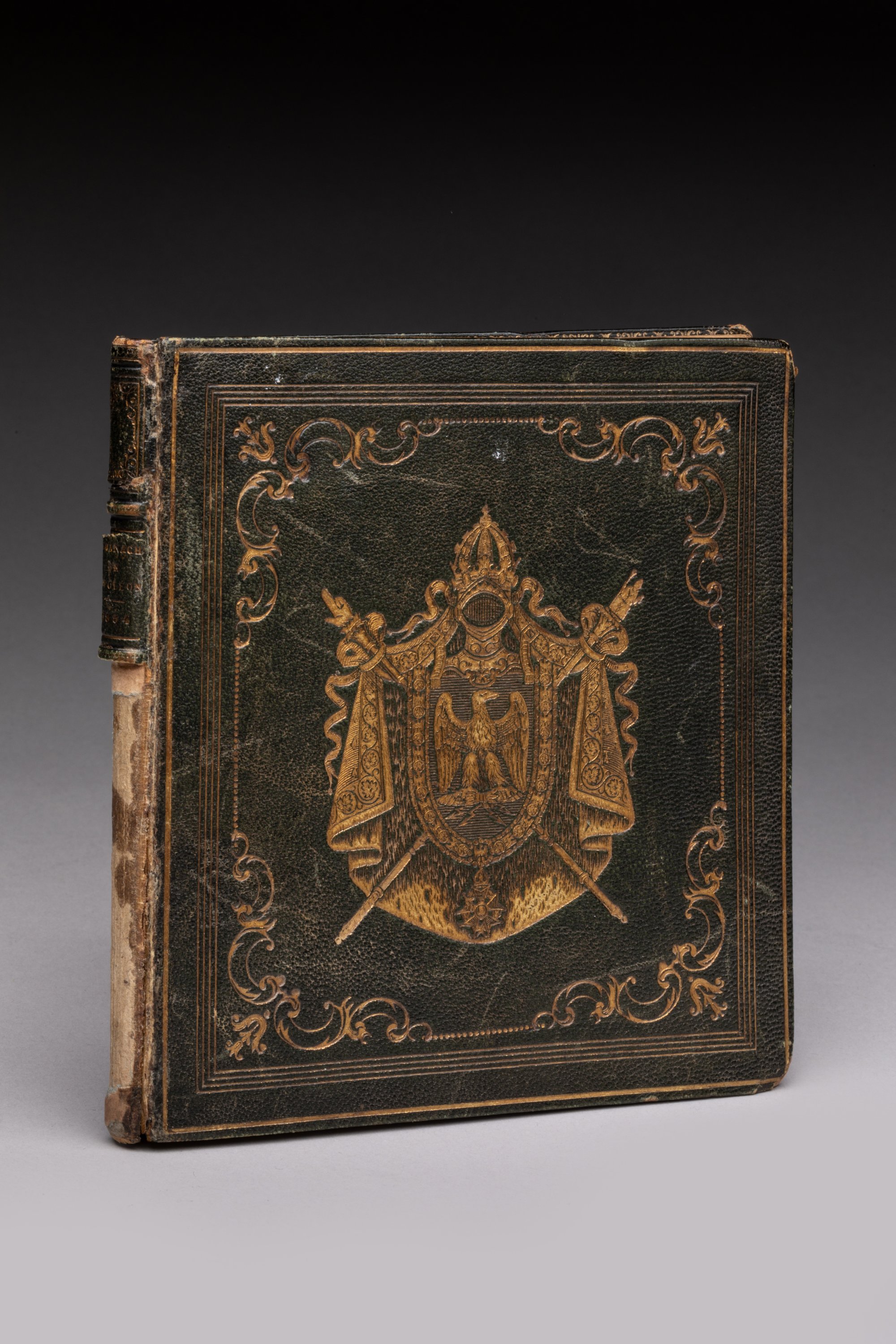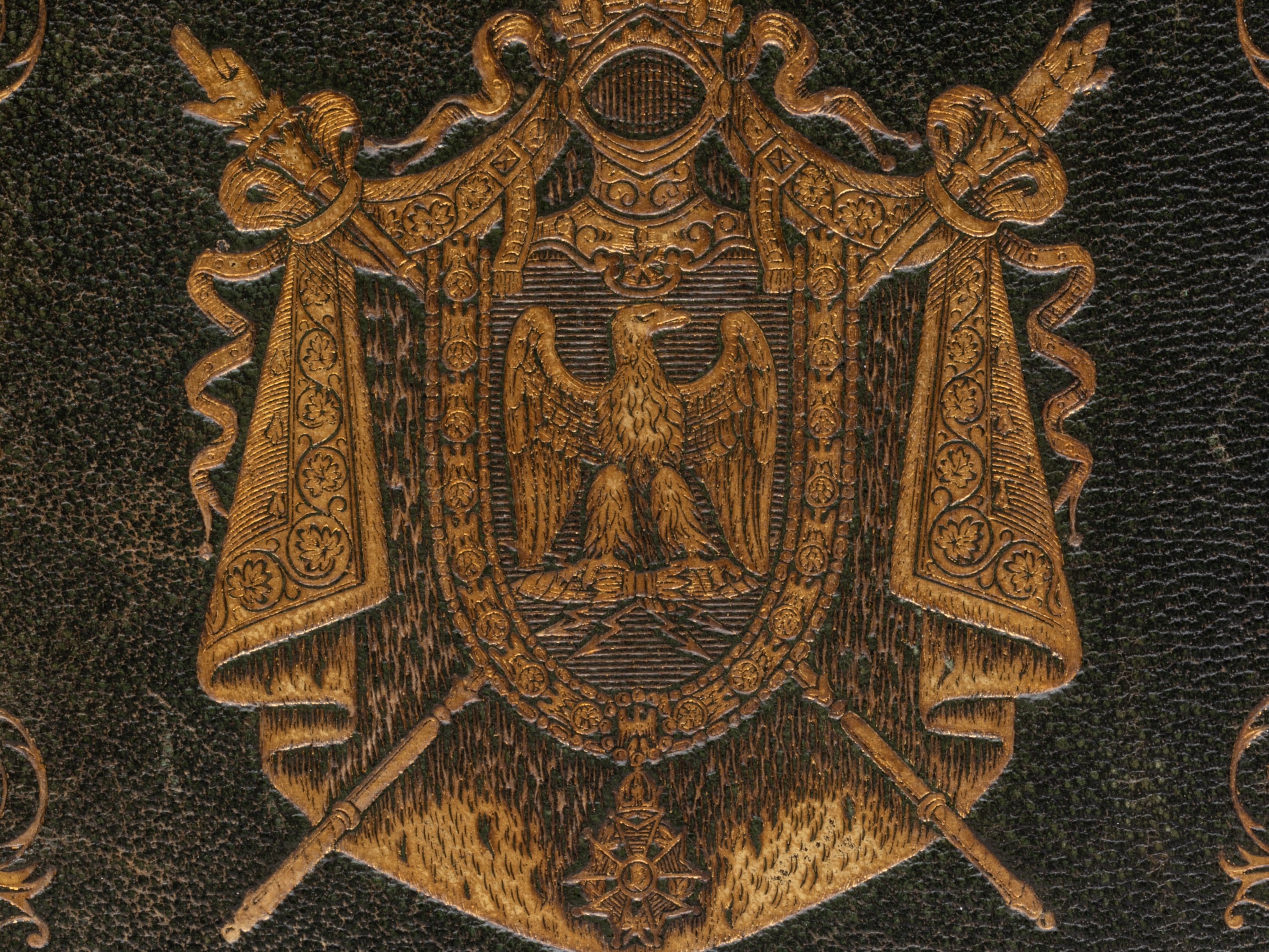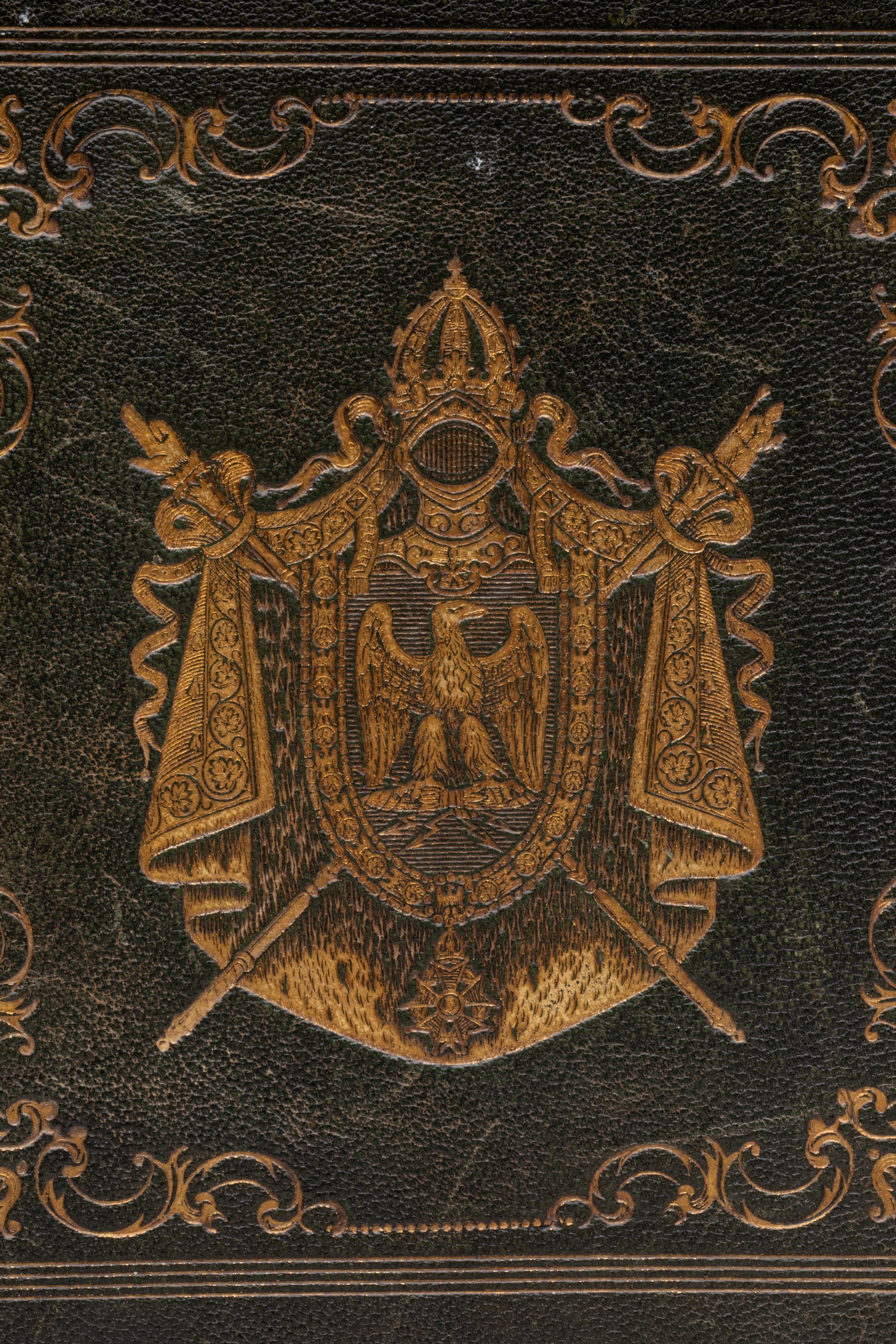 Reliure en maroquin vert, à décor aux petits fers des grandes armes de Napoléon III, avec encadrement.