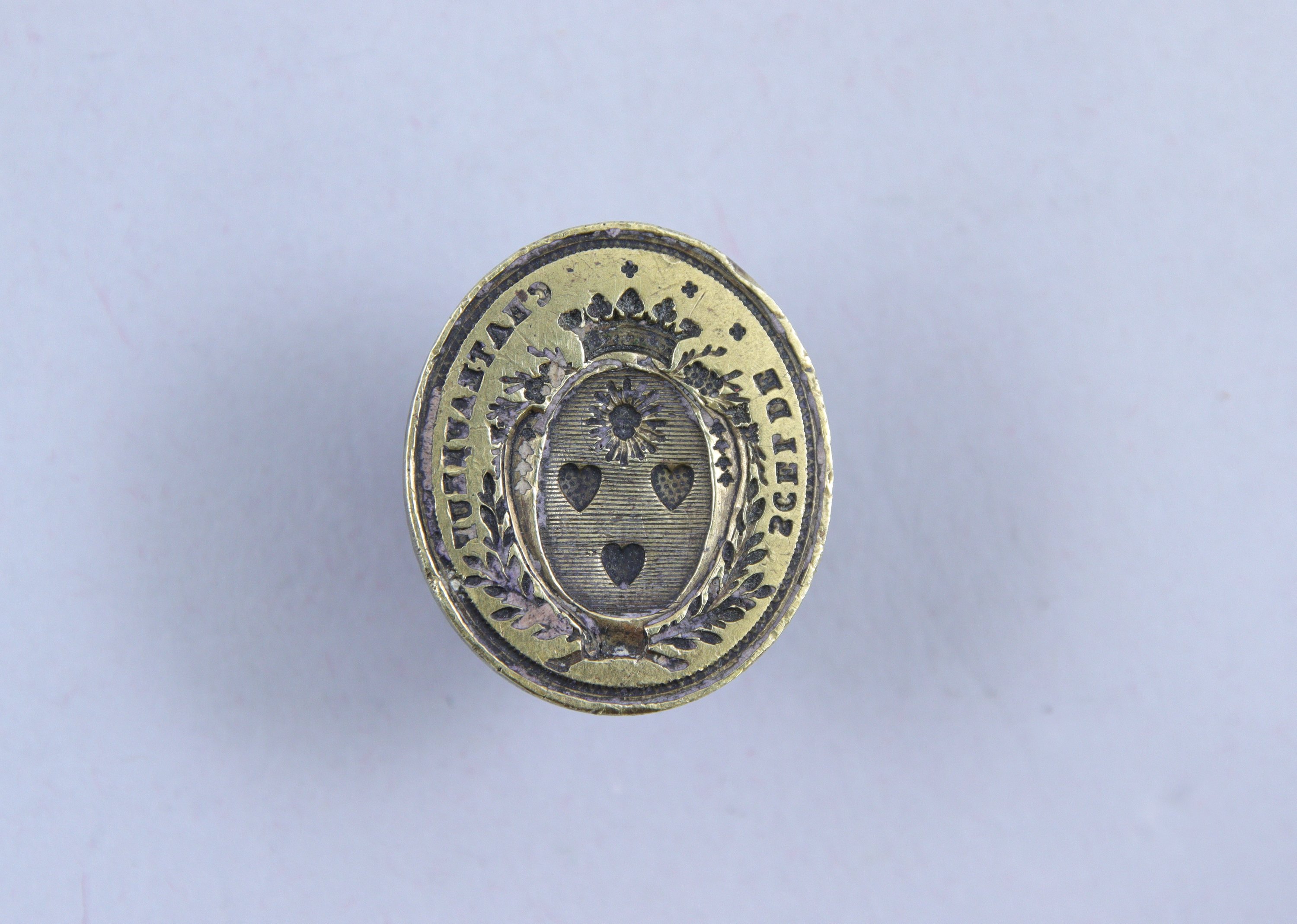 Métal gravé, de forme ovale marqué Château-Neuf et Sceau.