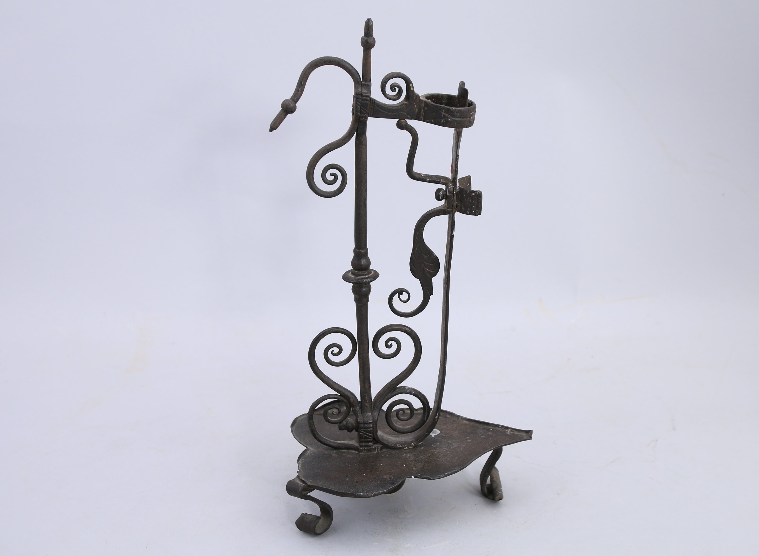 PINCE à CHANDELLE en fer forgé, avec plateau inférieur pour le pain de chandelle.