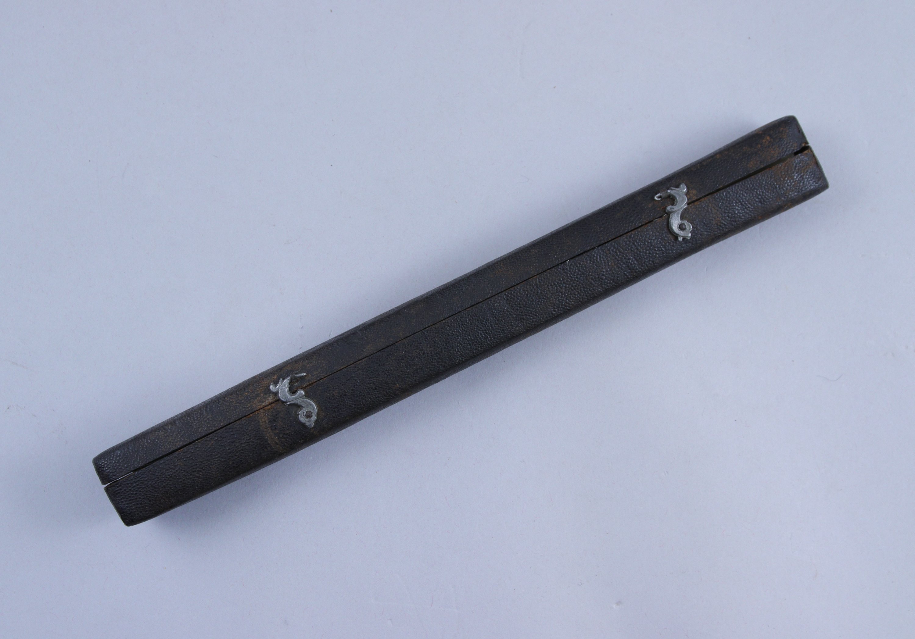 Monture en ivoire découpé, gravé et rehaussé en couleurs à décor de fleurs.