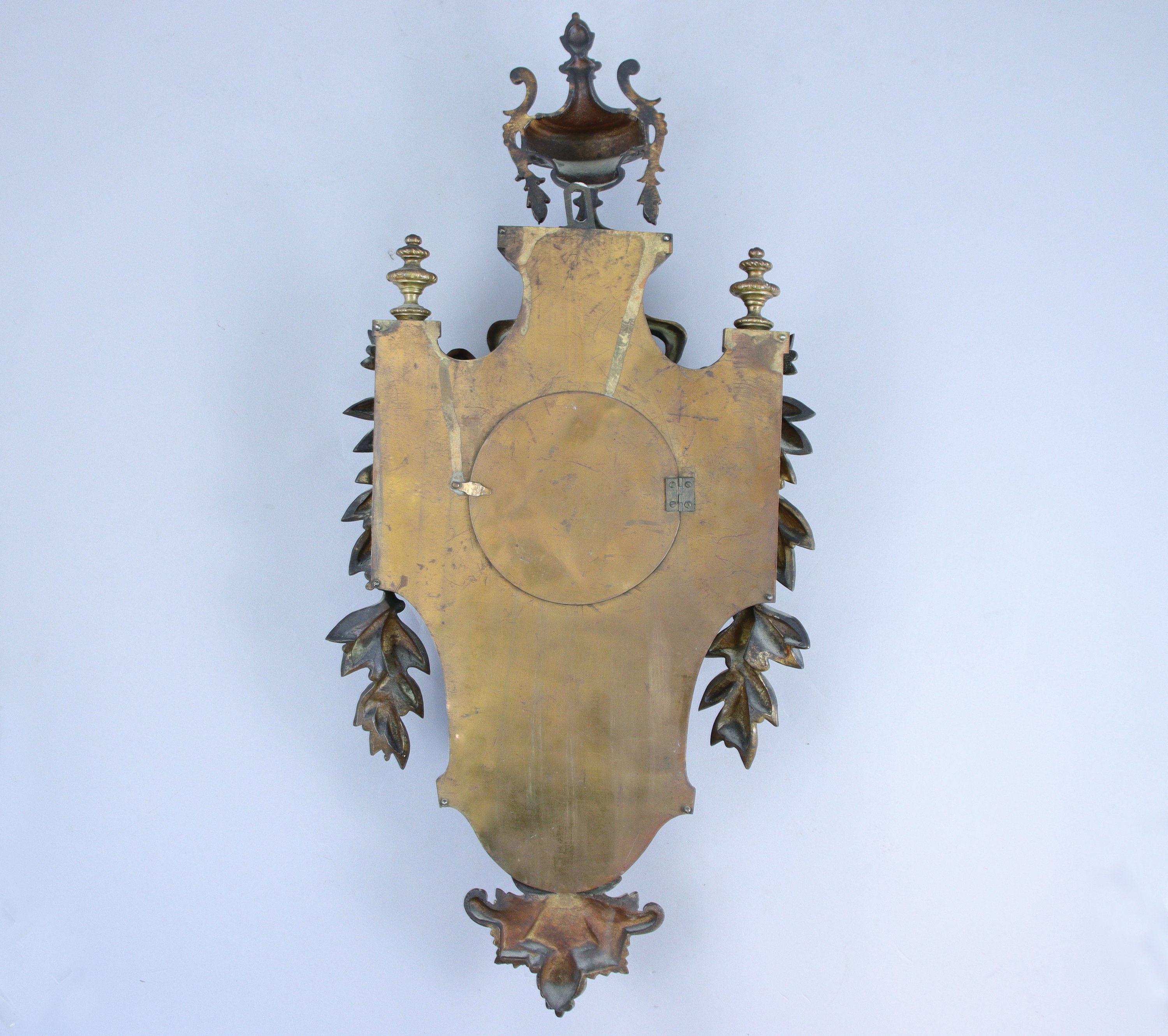 CARTEL D'APPLIQUE en bronze doré, le cadran émaillé avec chemin de fer, les heures en chiffres romains et chaque période de cinq minutes en chiffres arabes.