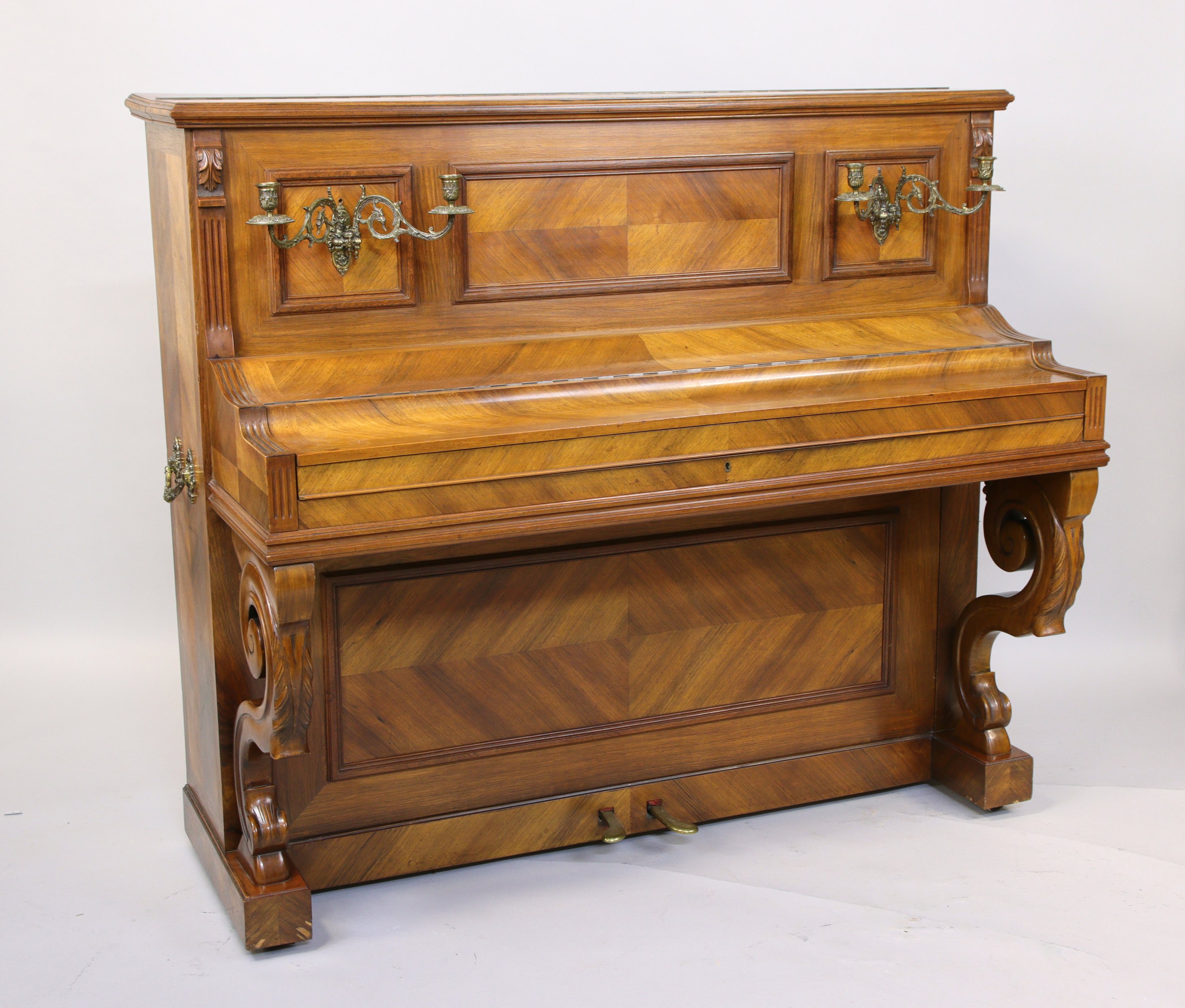 en merisier, avec chandeliers et poignées en laiton, clavier en ivoire.