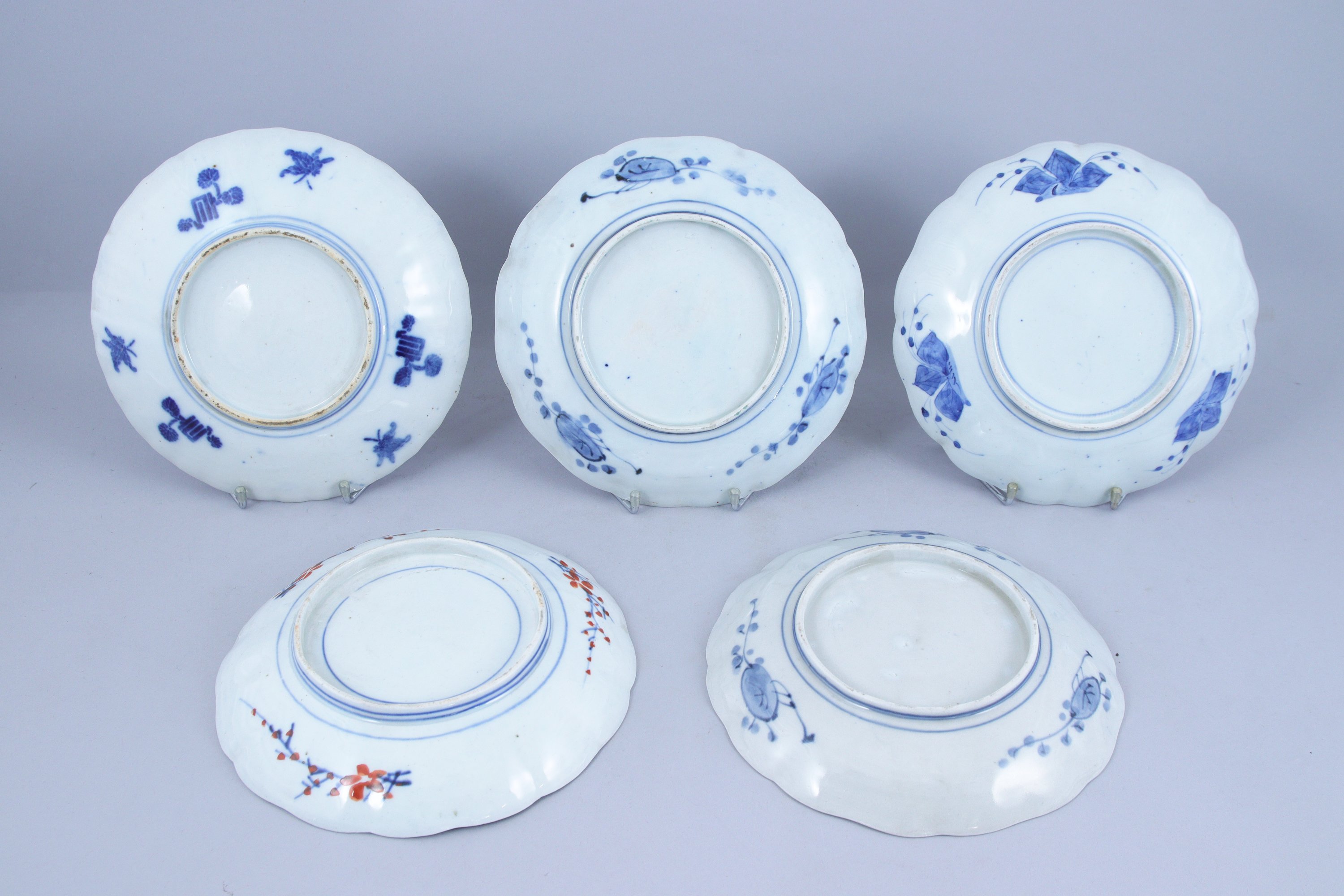 CINQ ASSIETTES en porcelaine à décor Imari.