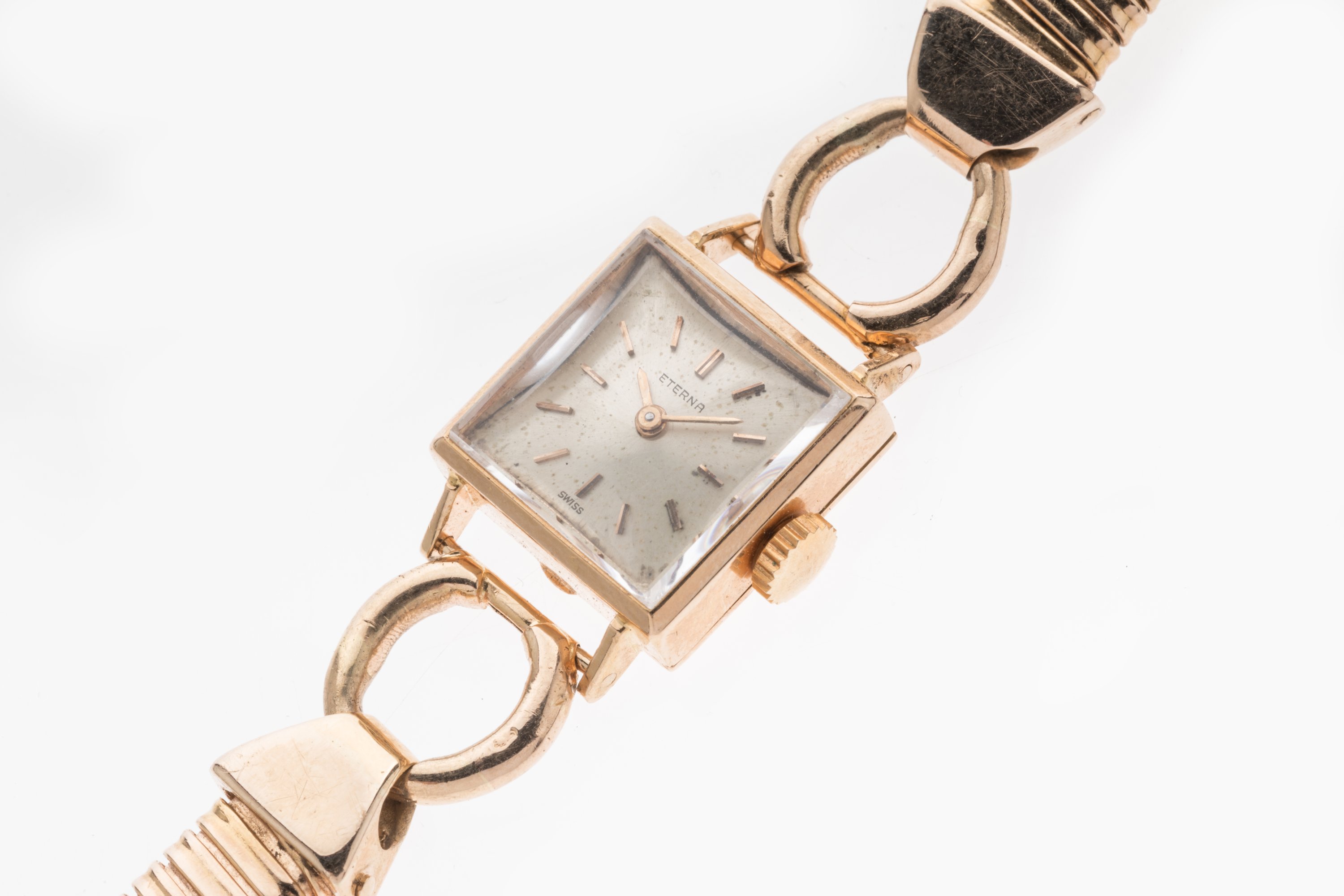 ETERNA. MONTRE BRACELET de dame en or jaune 750 millièmes. Le boîtier carré, signé ETERNA Suisse, n° 1460659.