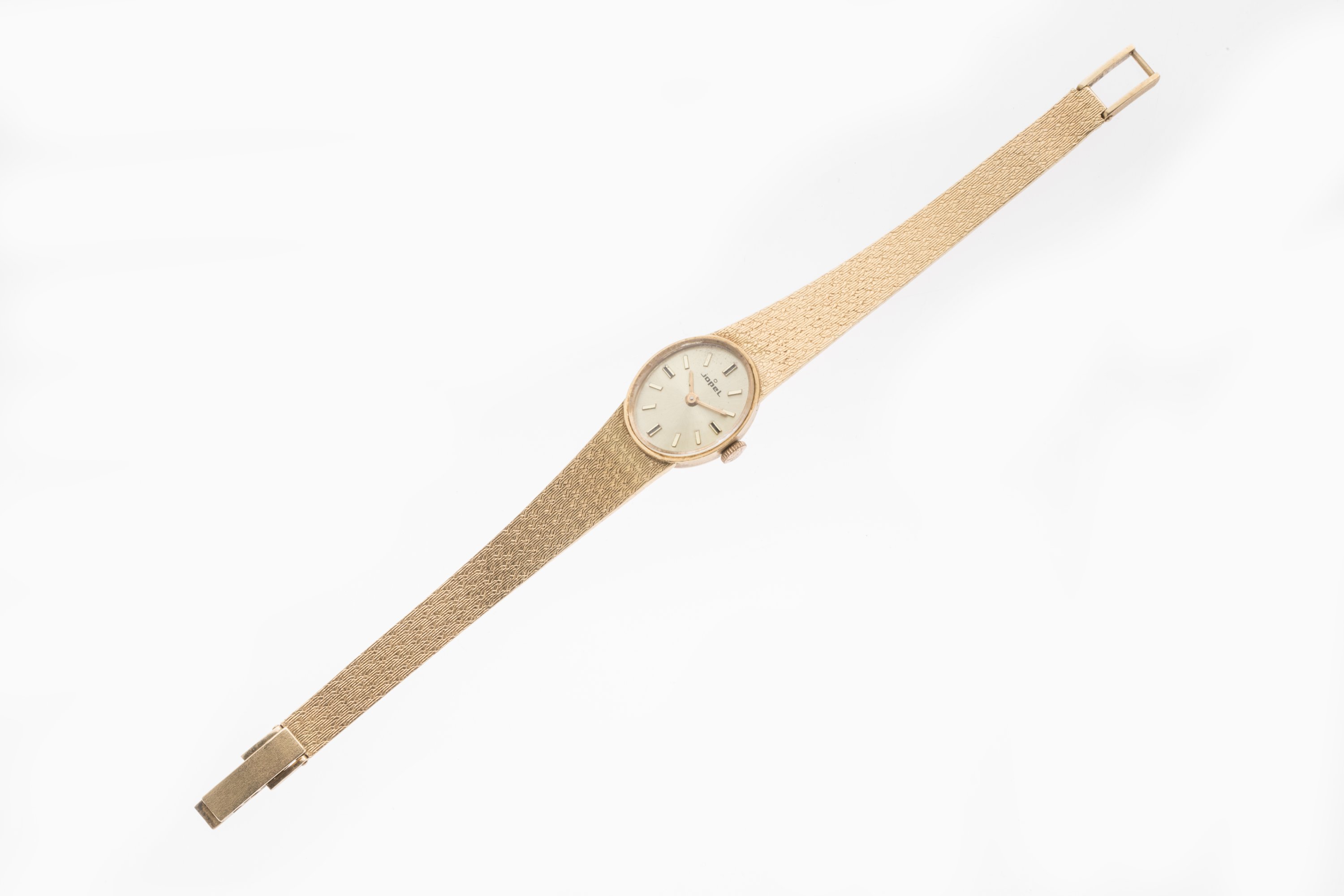 JOINT : MONTRE de DAME RIX, le boîtier en or, le bracelet en métal doré.