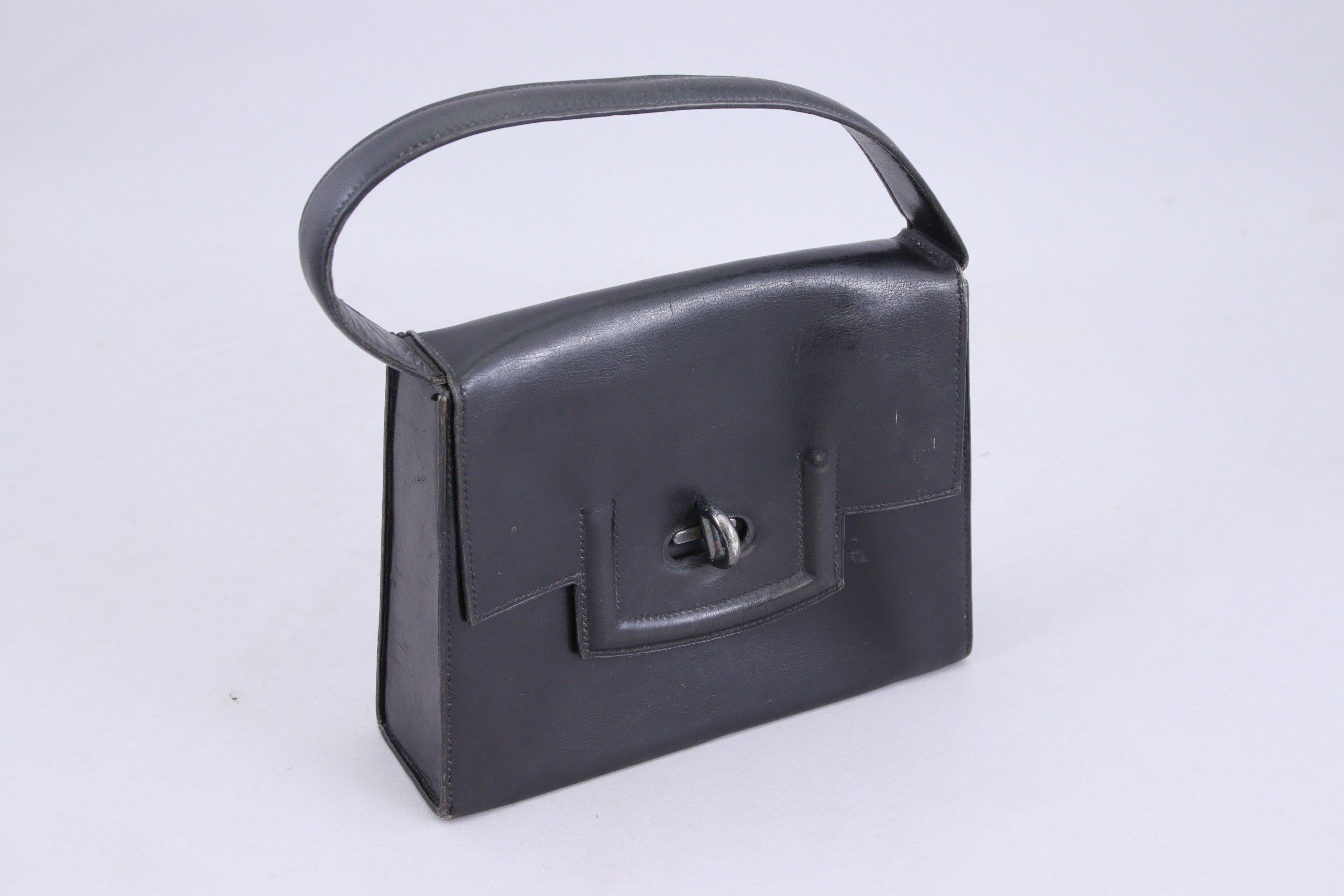 HERMÈS Paris 24 faubourg Saint Honoré. SAC à MAIN en cuir, le fermoir argenté.