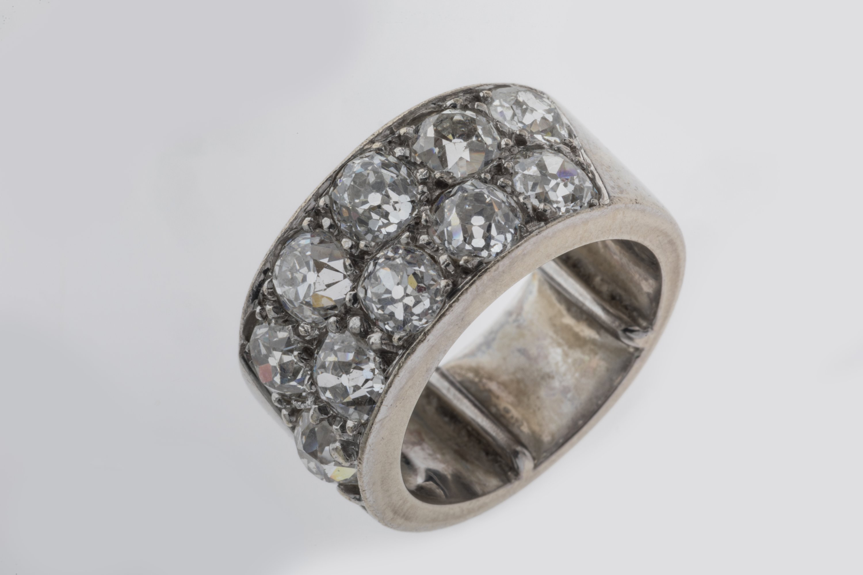 BAGUE en or blanc 750 millièmes ornée de 10 DIAMANTS de taille ancienne d'environ 0,3 ct chacun.