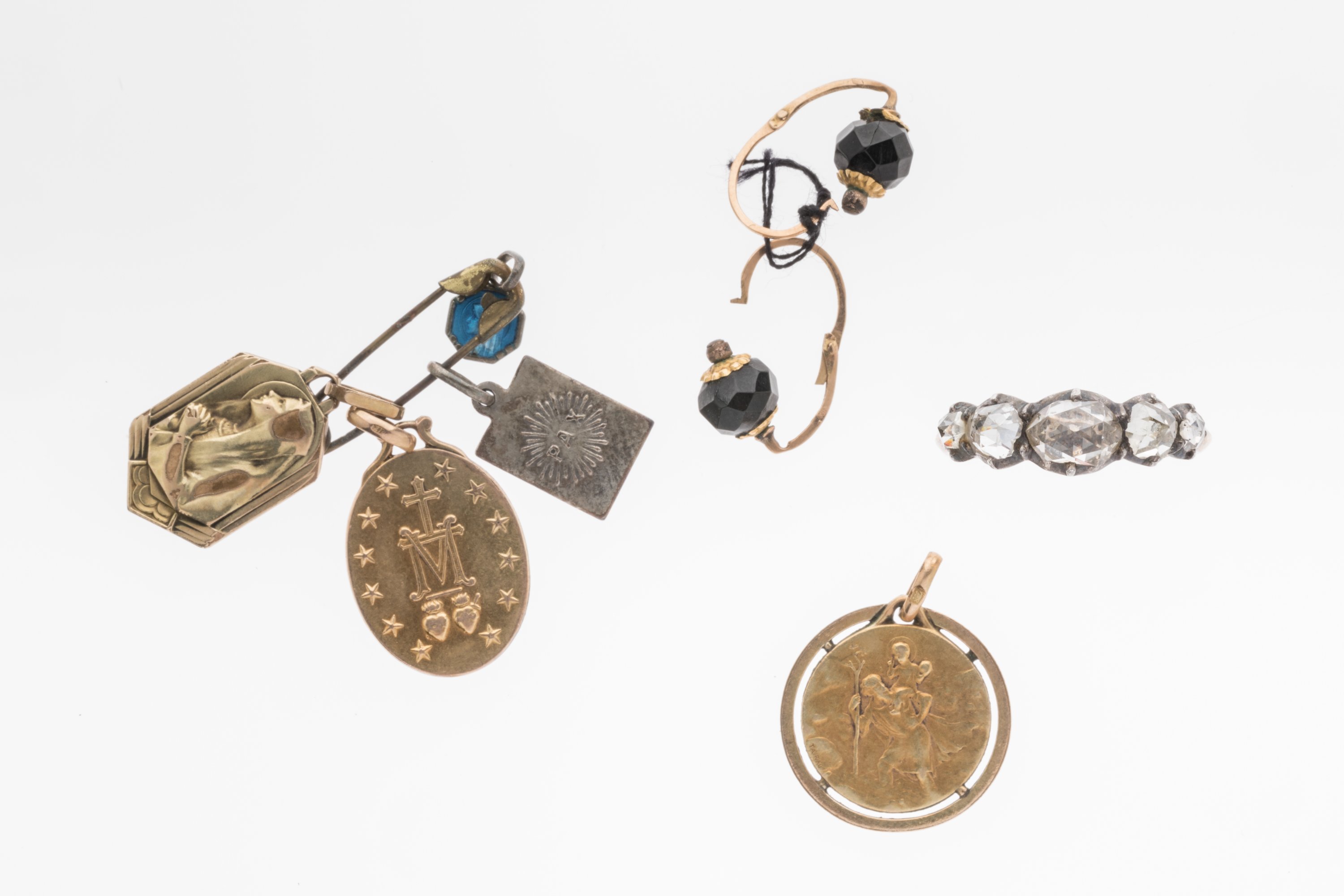- TROIS MÉDAILLES (Vierge Marie et l'enfant Jésus) en métal et métal doré. Poids net 1,9 g.