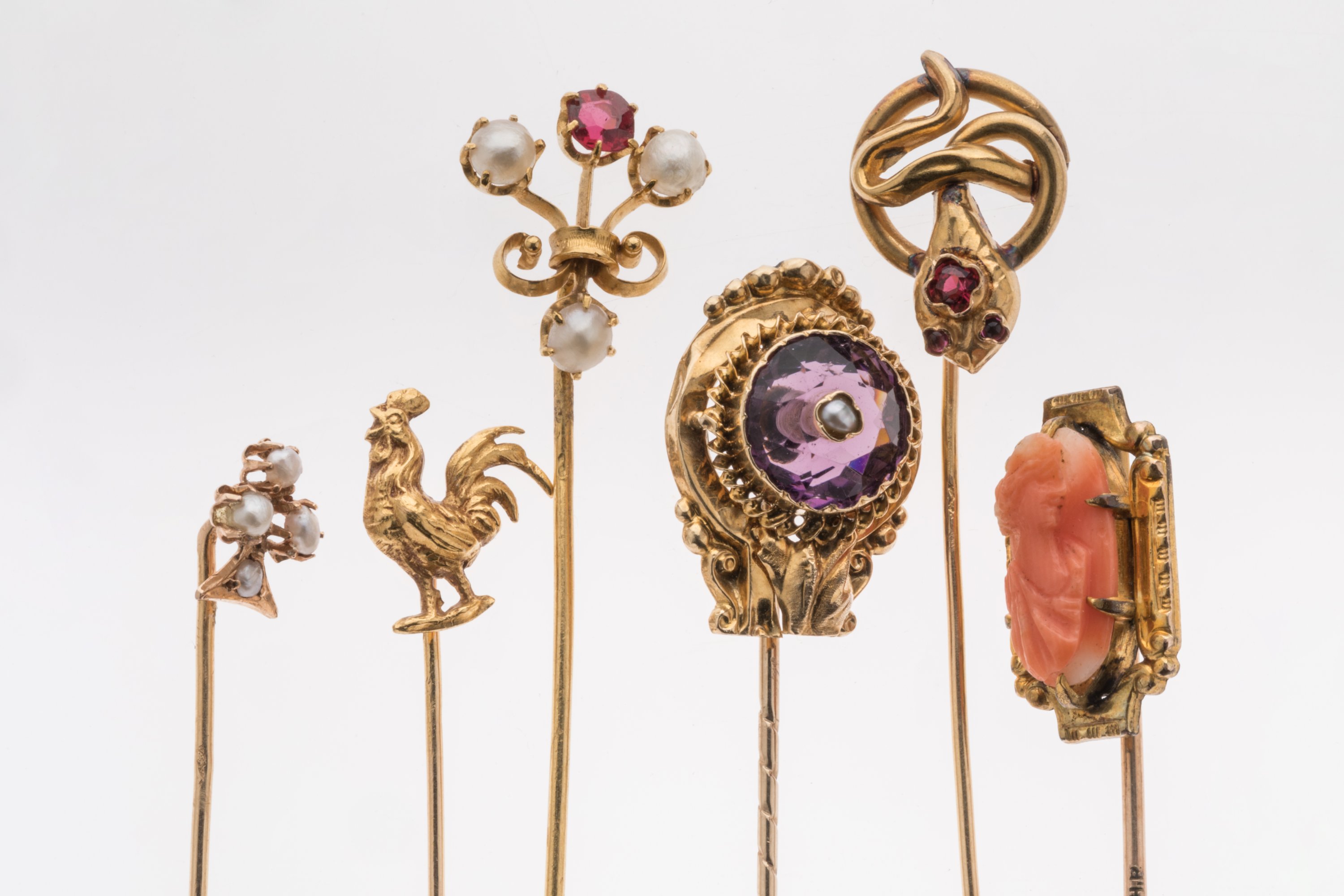 SIX ÉPINGLES DE CRAVATES en or jaune 750 millièmes :