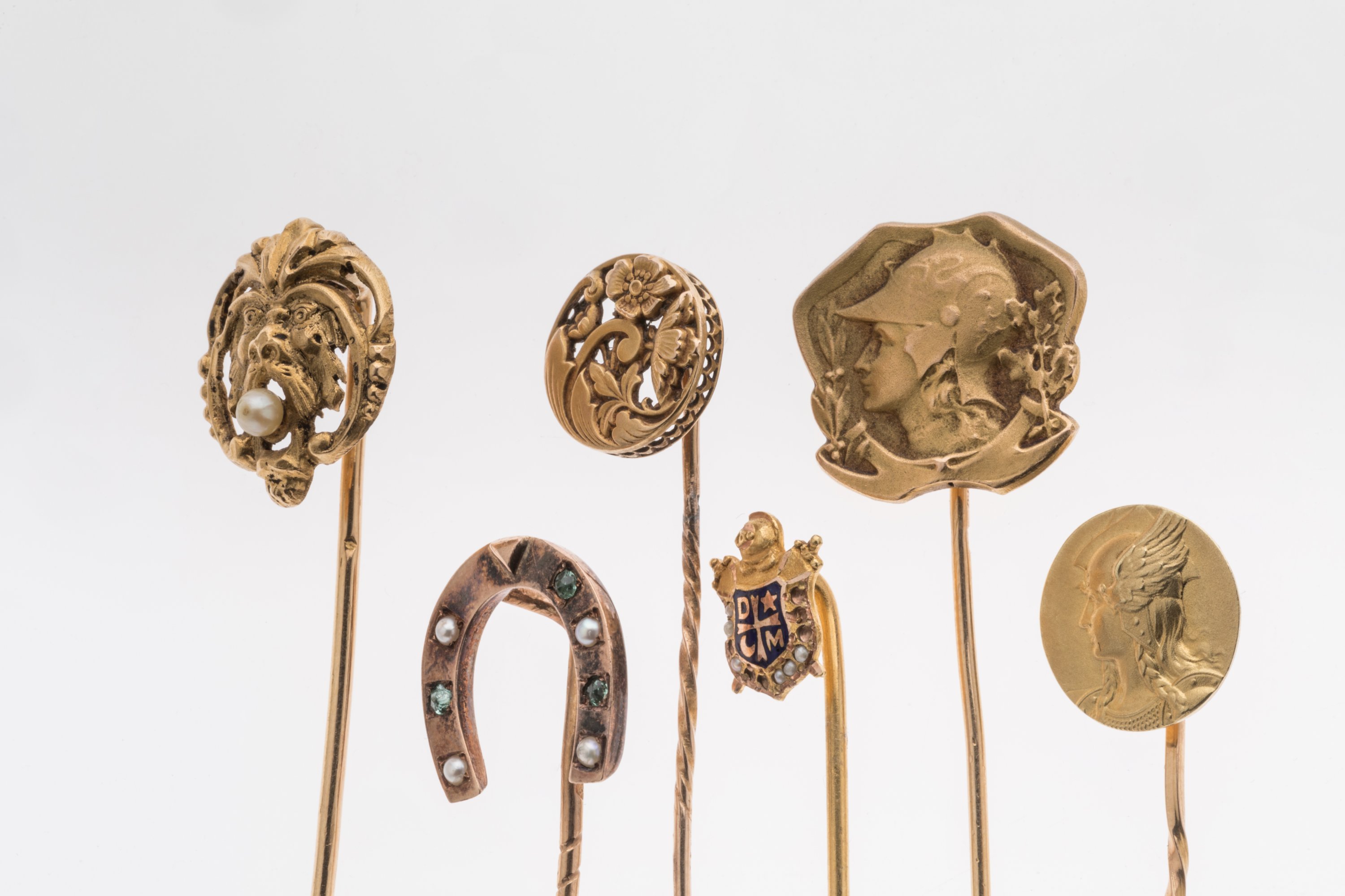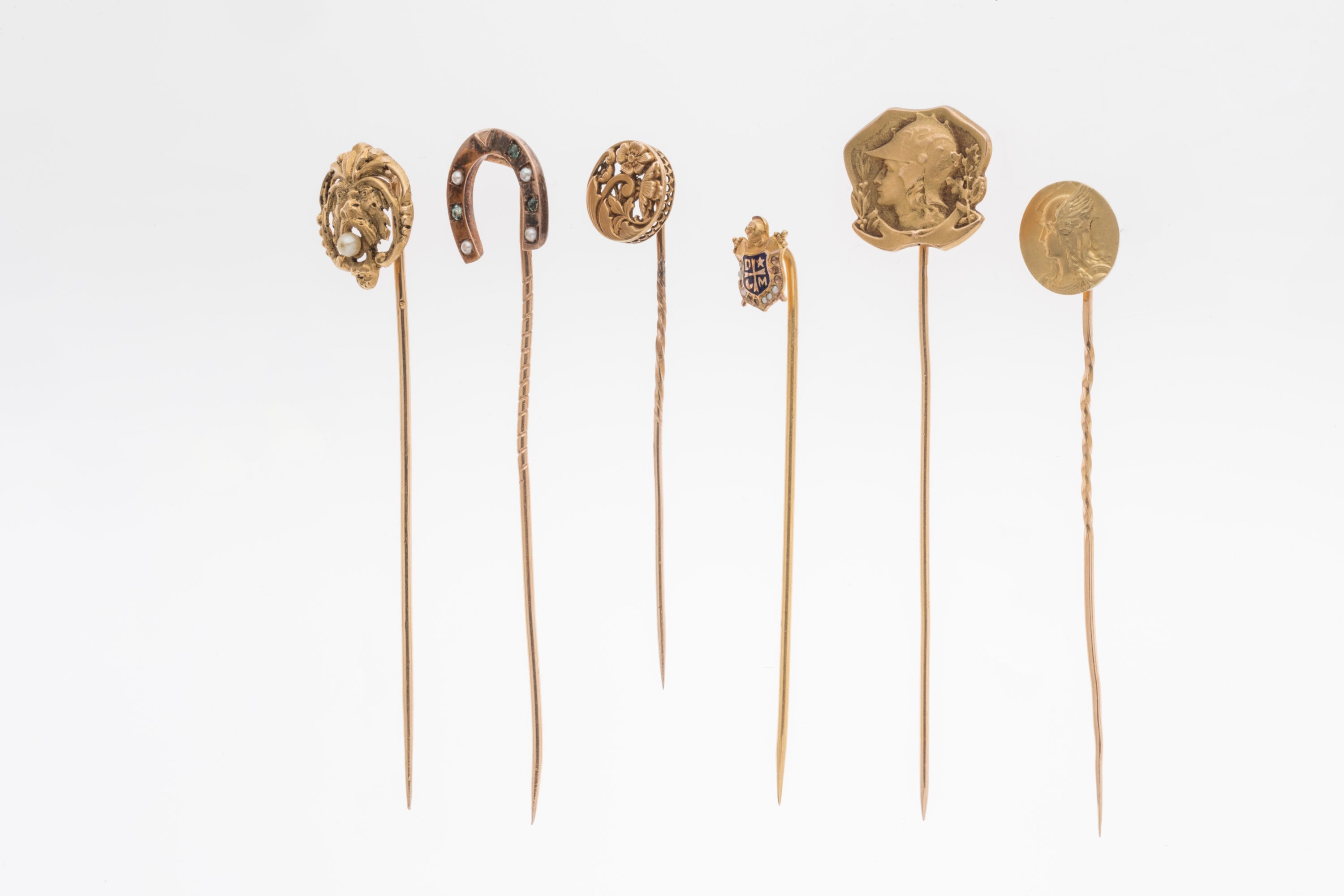 SIX ÉPINGLES de CRAVATES en or jaune 750 millièmes :