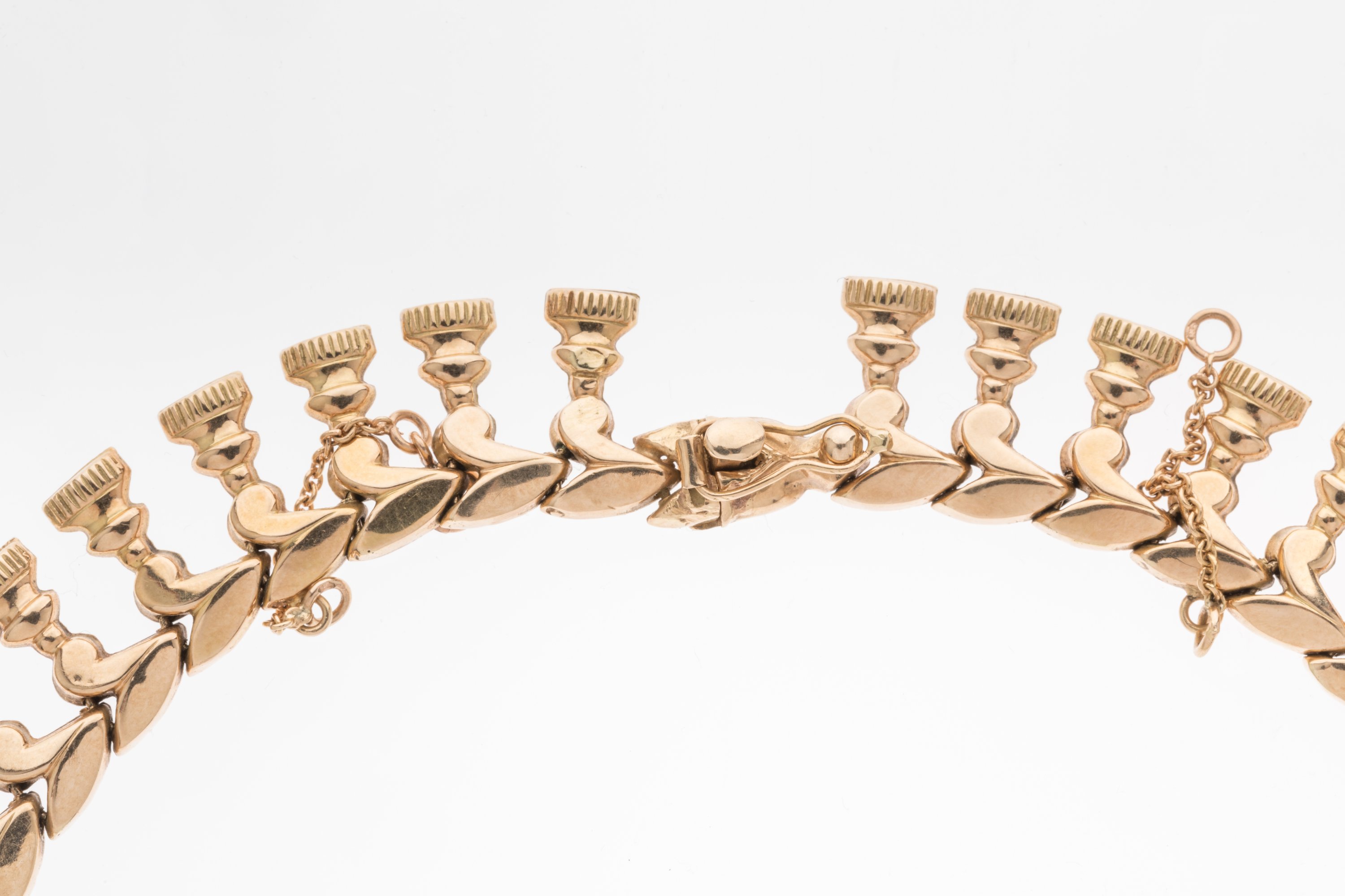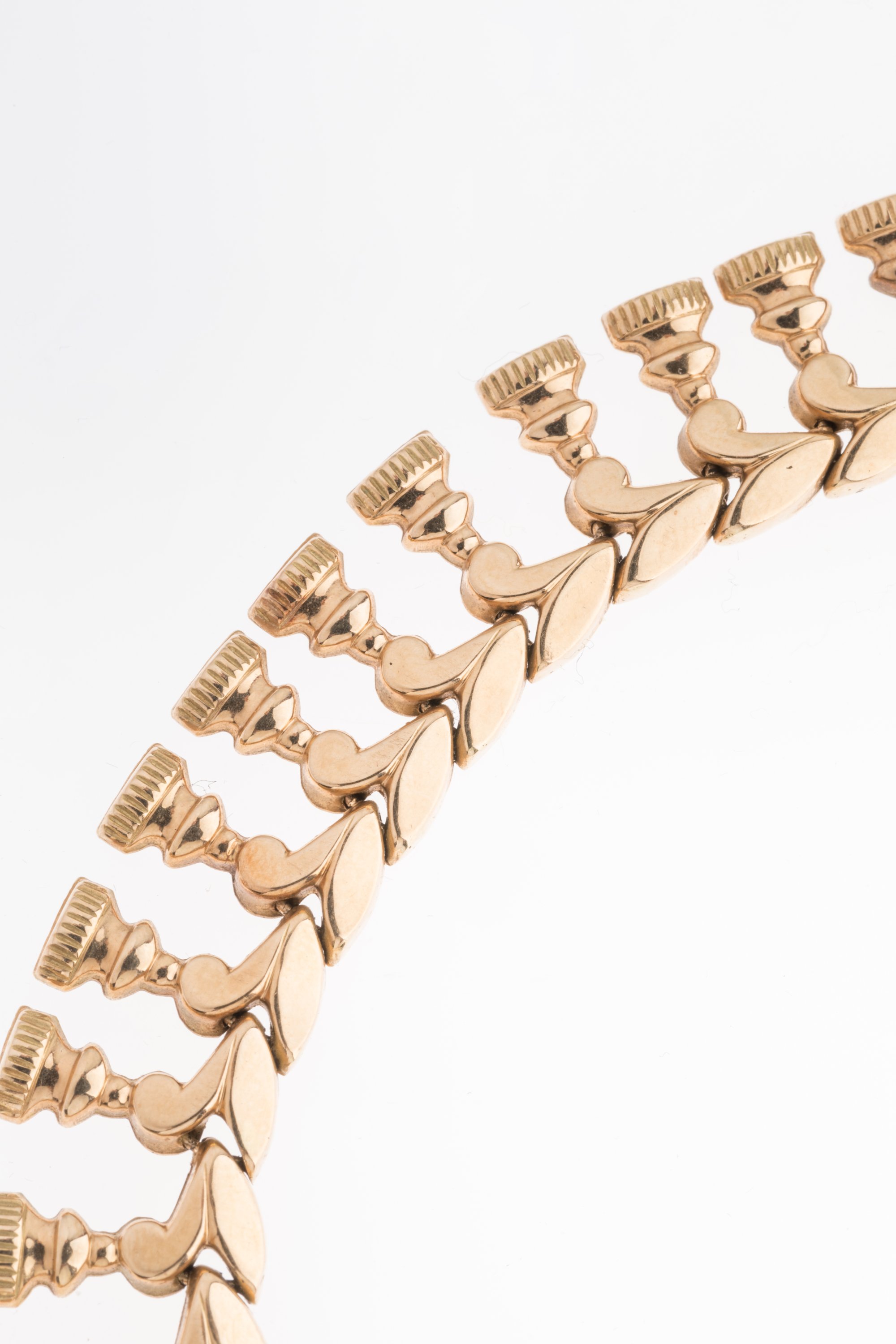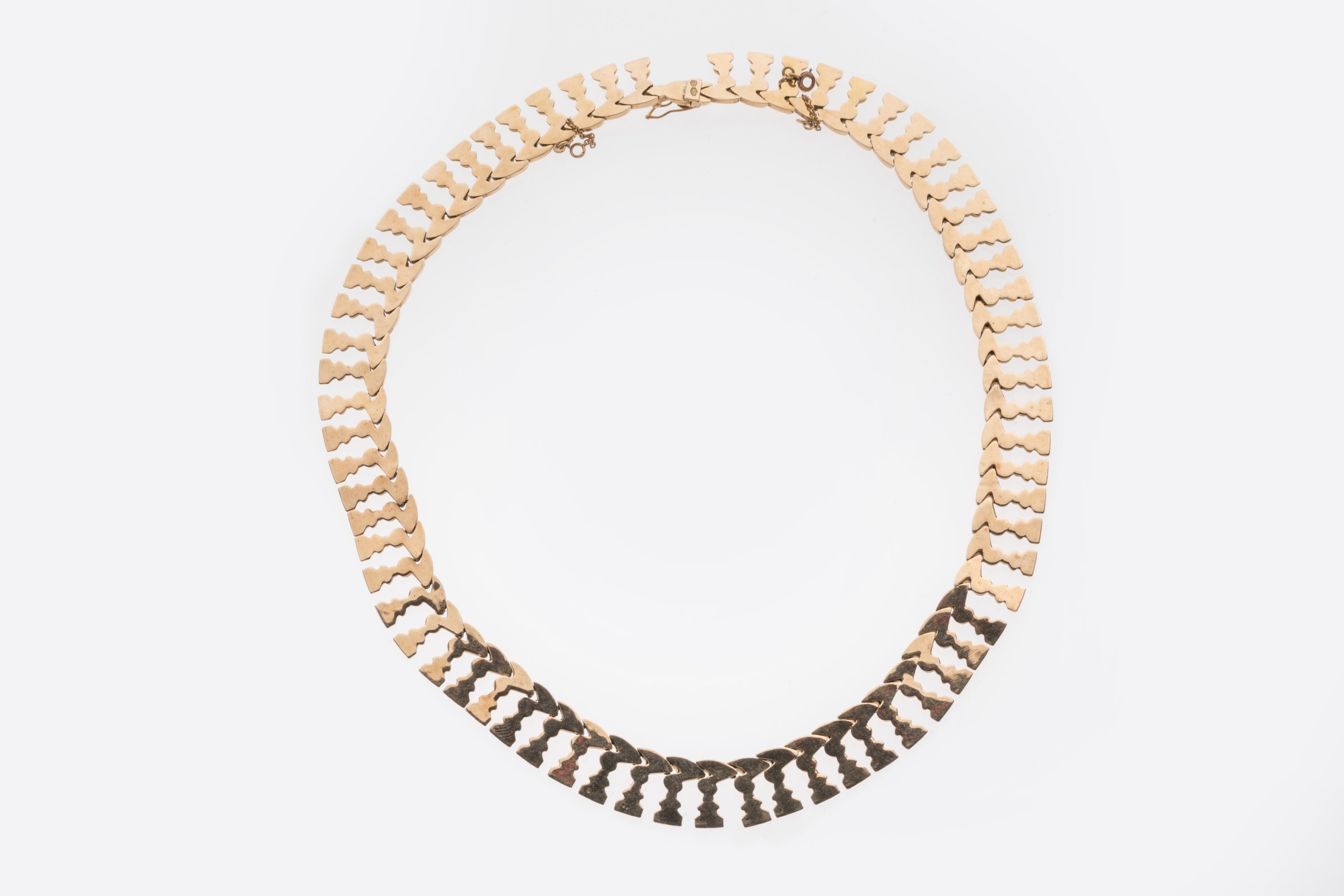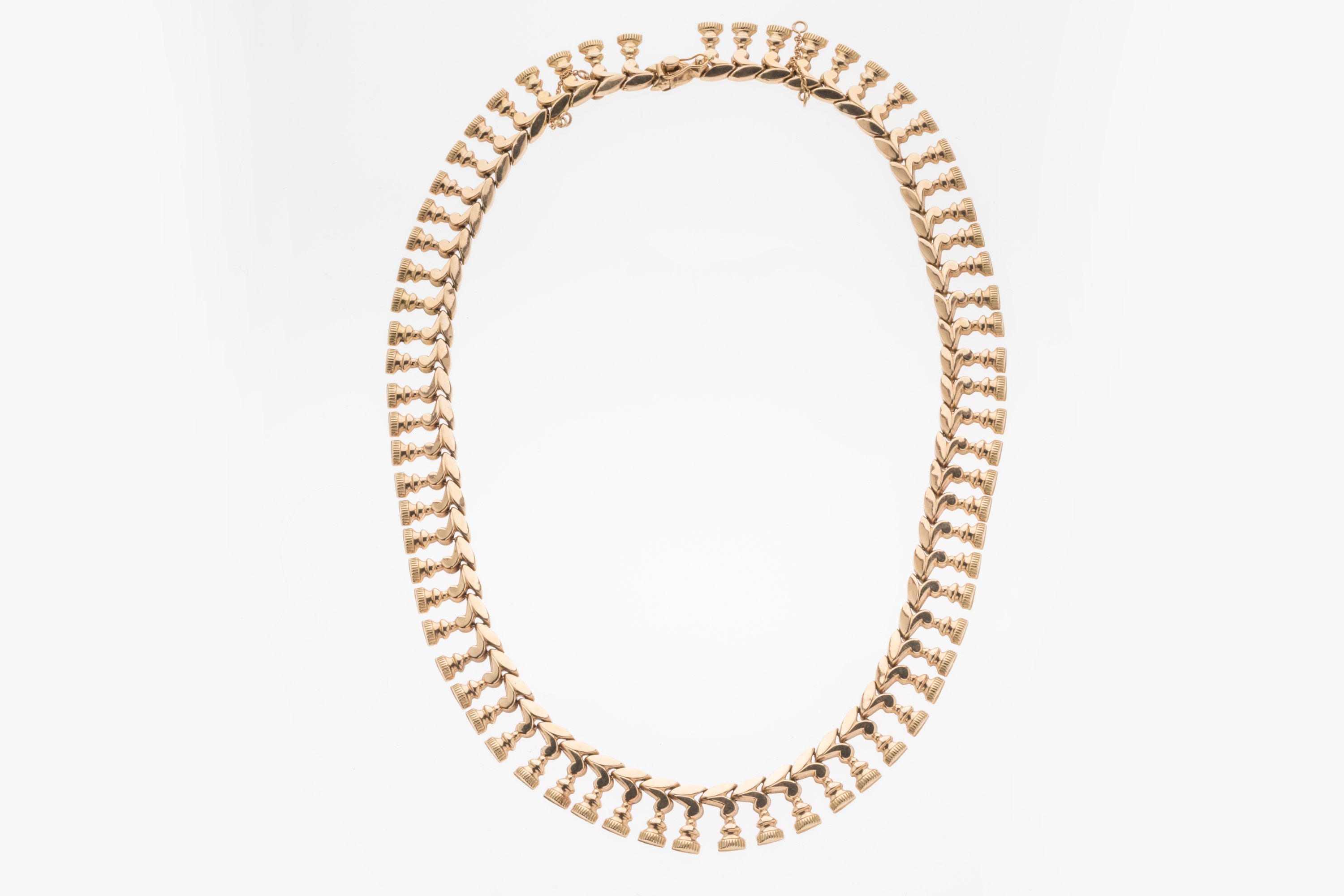 COLLIER or jaune 750 millièmes à mailles de clochettes stylisées.