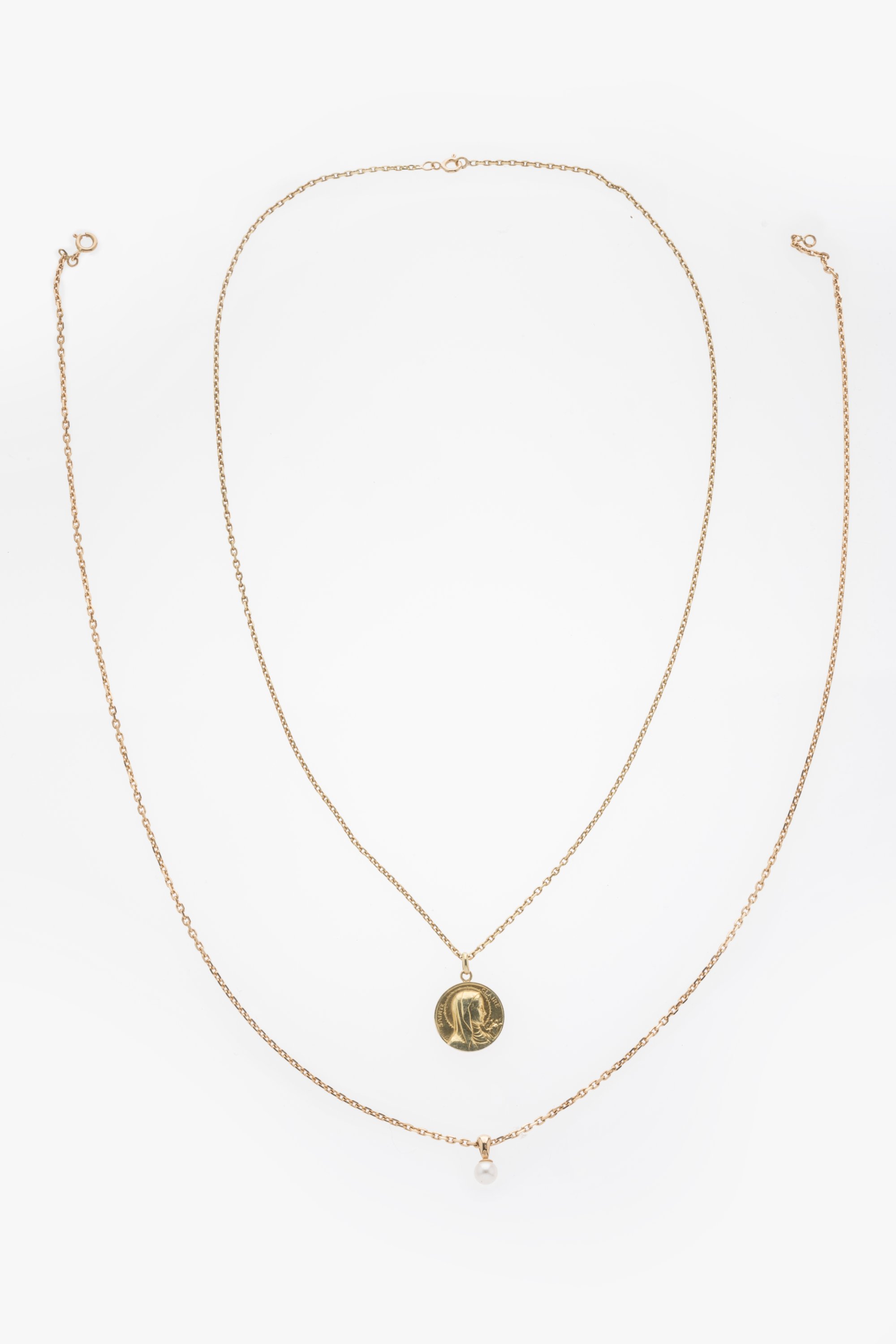 CHAÎNE, MÉDAILLE et PENDENTIF en or jaune 750 millièmes. Le...
