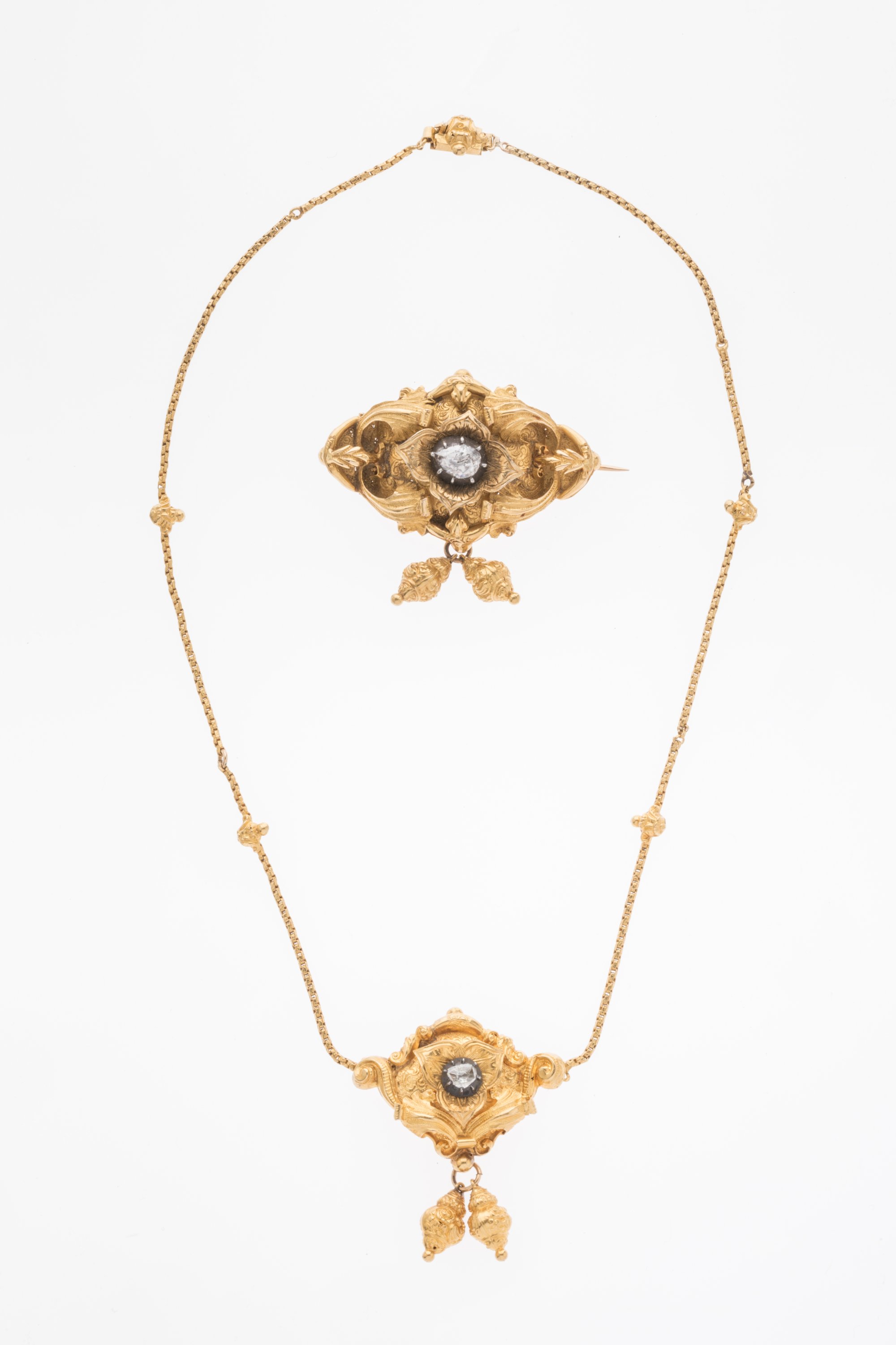 BROCHE et PENDENTIF en or jaune 750 millièmes.