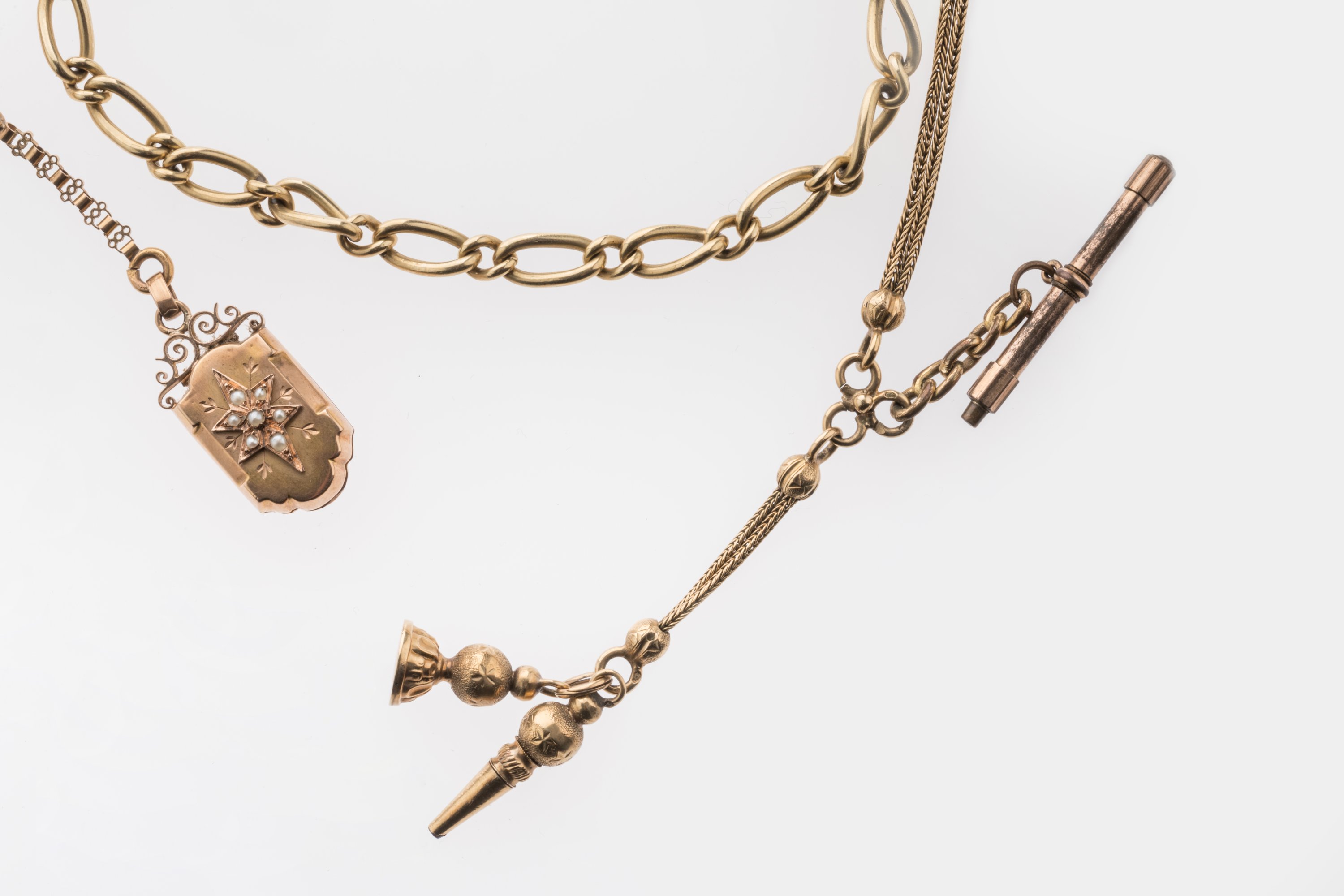 Trois CHAÎNES en or jaune 750 millièmes dont deux CHAÎNES GILETIÈRES.