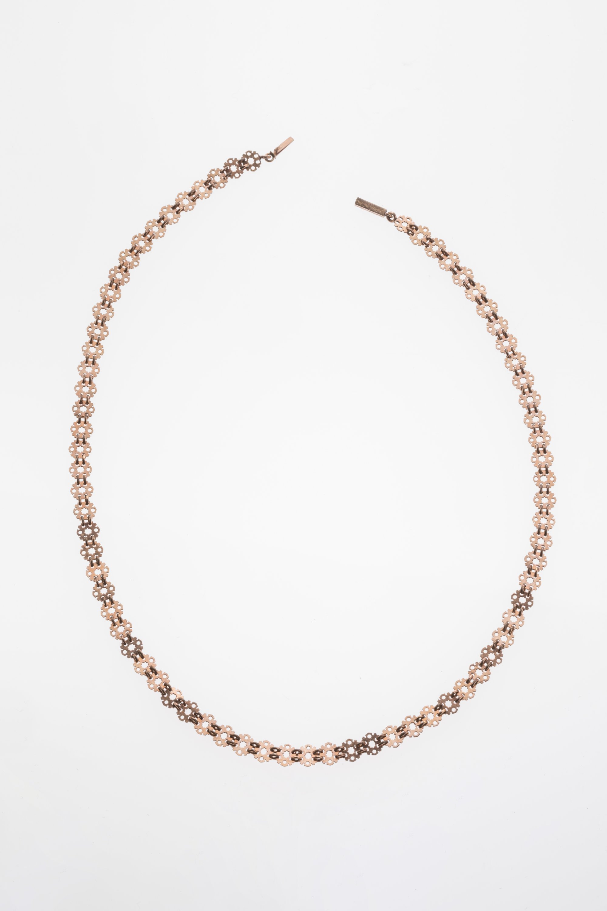 La deuxième en maille vénitienne terminée par une barrette et un pendentif orné de perles, le pendentif s'ouvrant pour accueillir une mèche de cheveux.