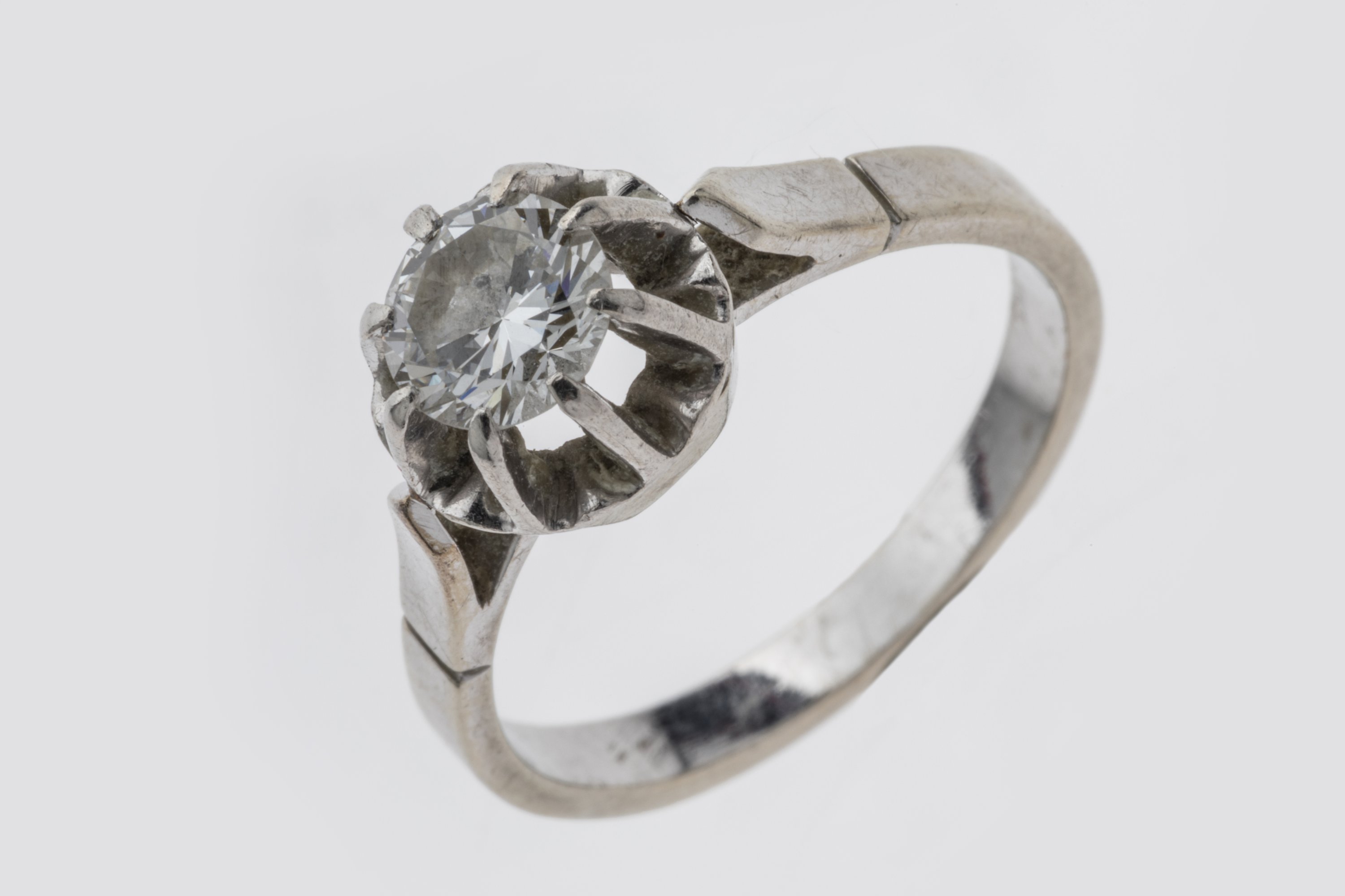 BAGUE sur or blanc et platine enchâssant un DIAMANT taille brillant monté en solitaire.