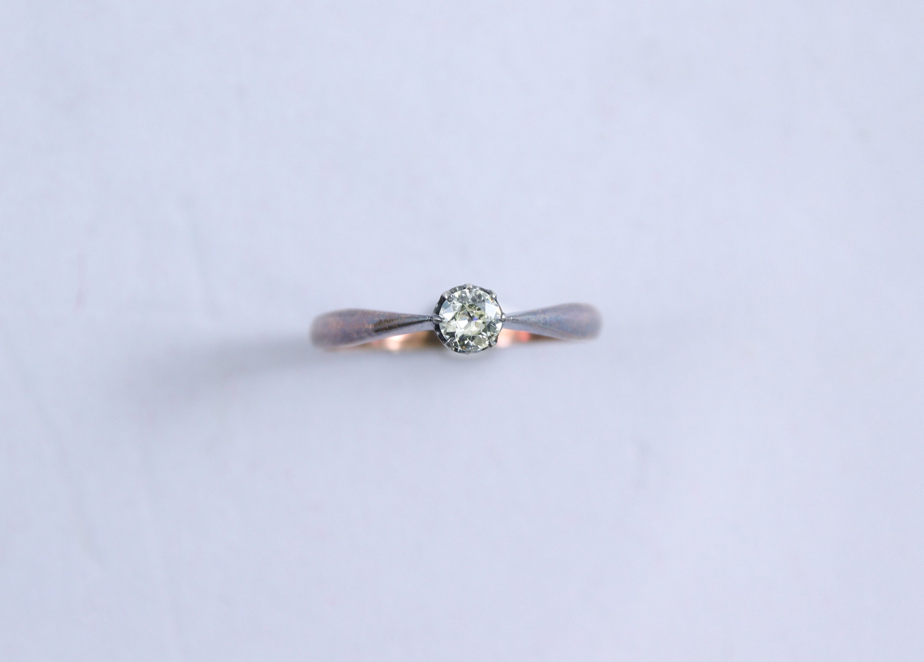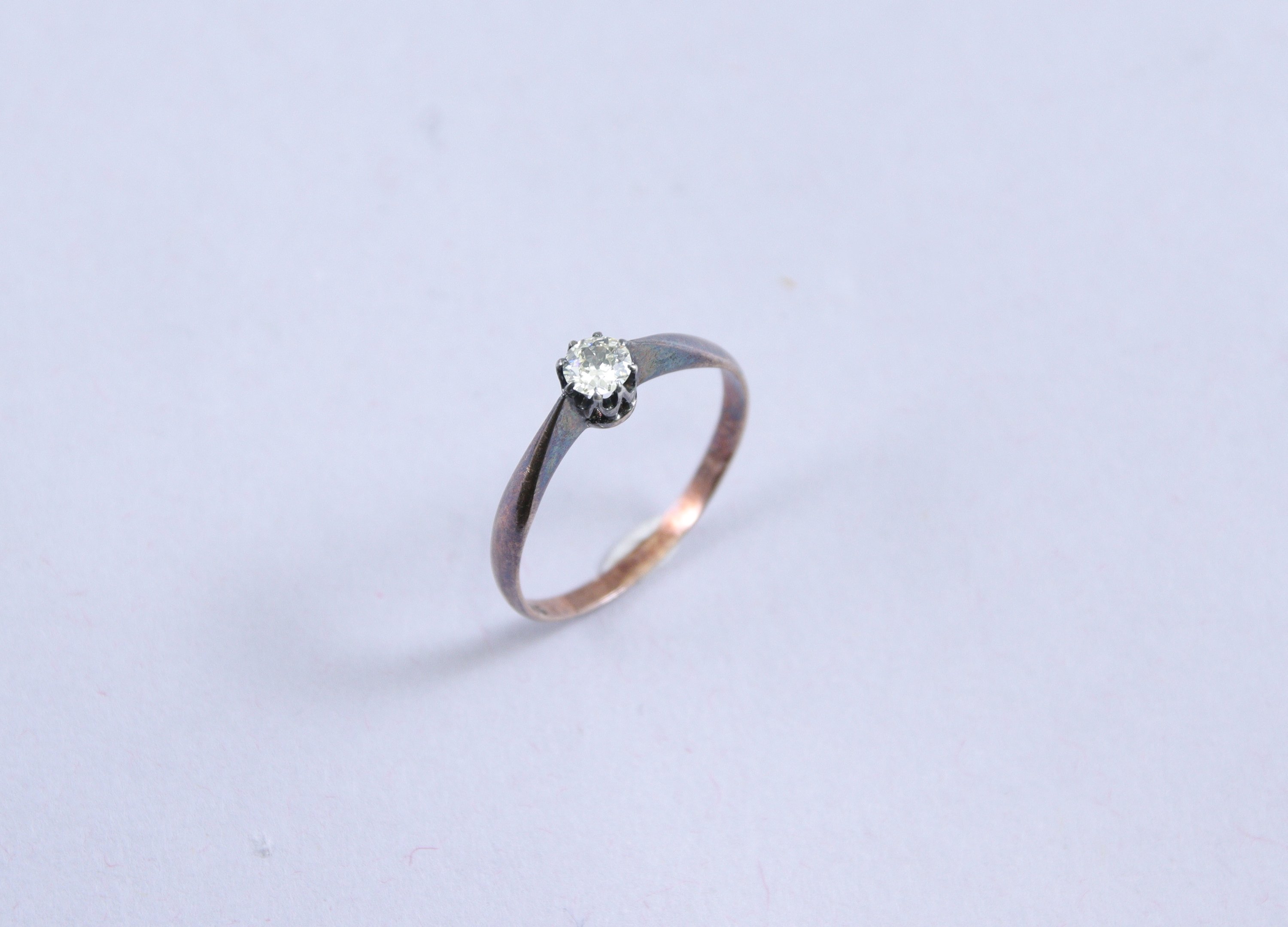 BAGUE SOLITAIRE en argent ornée d'un DIAMANT de taille ancienne (environ 0,1 ct).