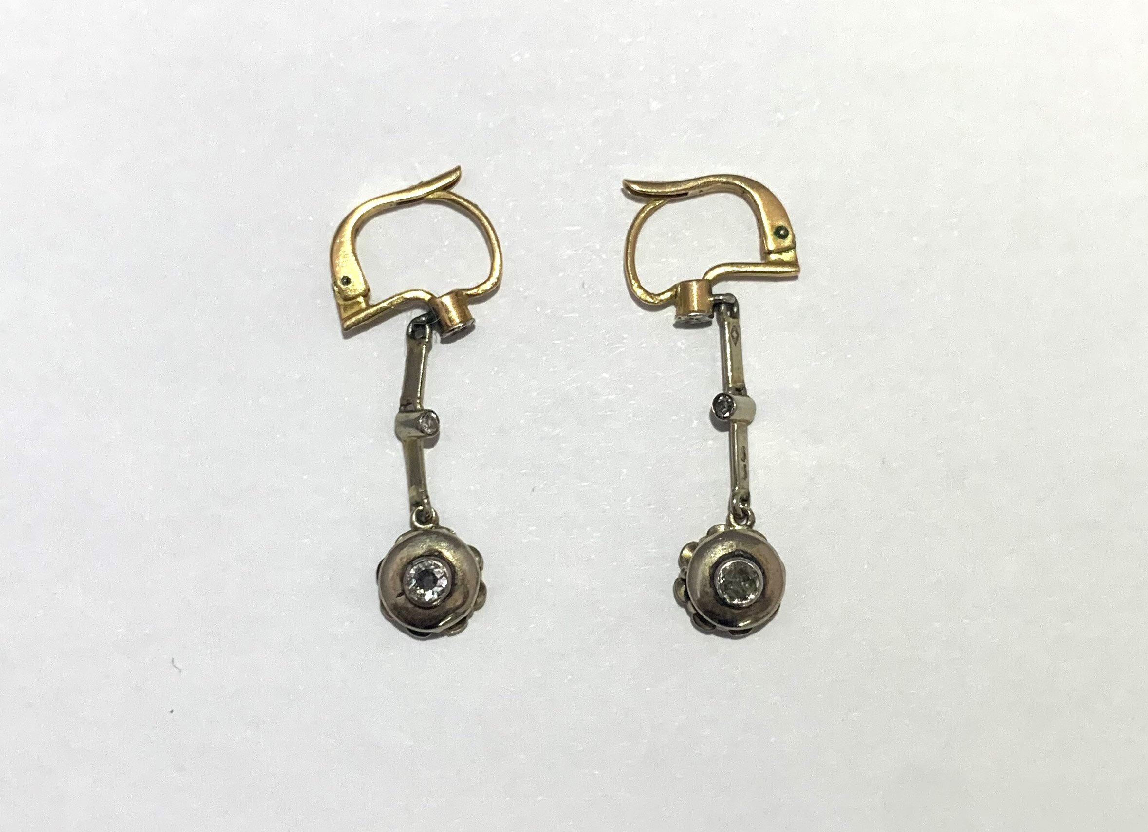 PAIRE de BOUCLES d'OREILLES en OR de deux tons enchassant un tout petit diamant.