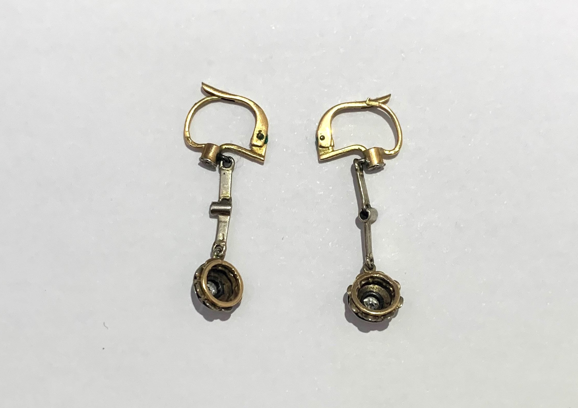 PAIRE de BOUCLES d'OREILLES en OR de deux tons enchassant...